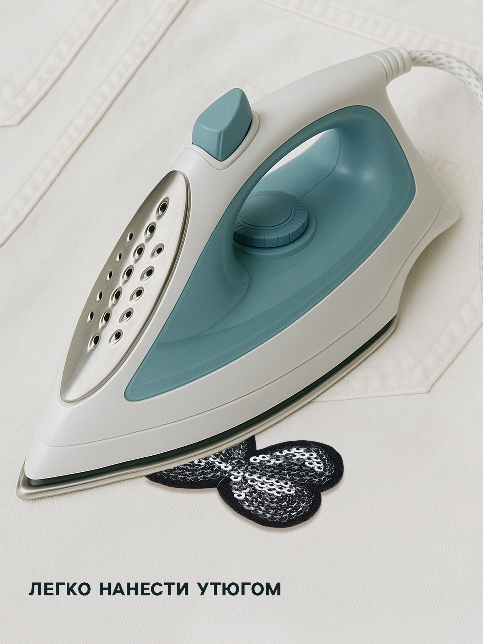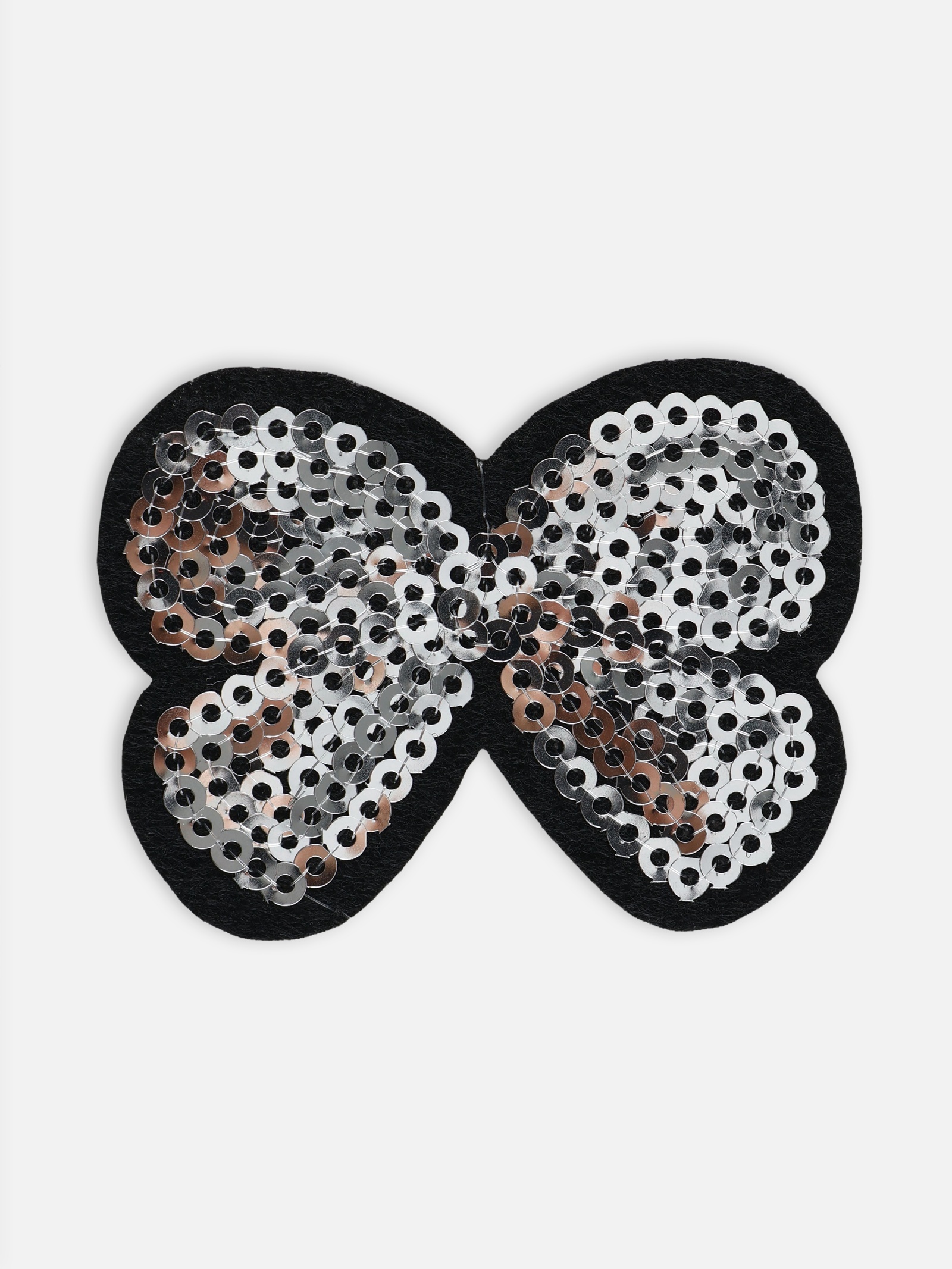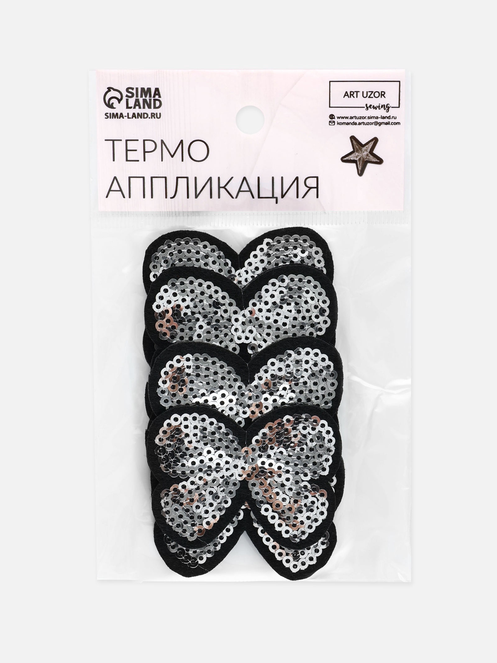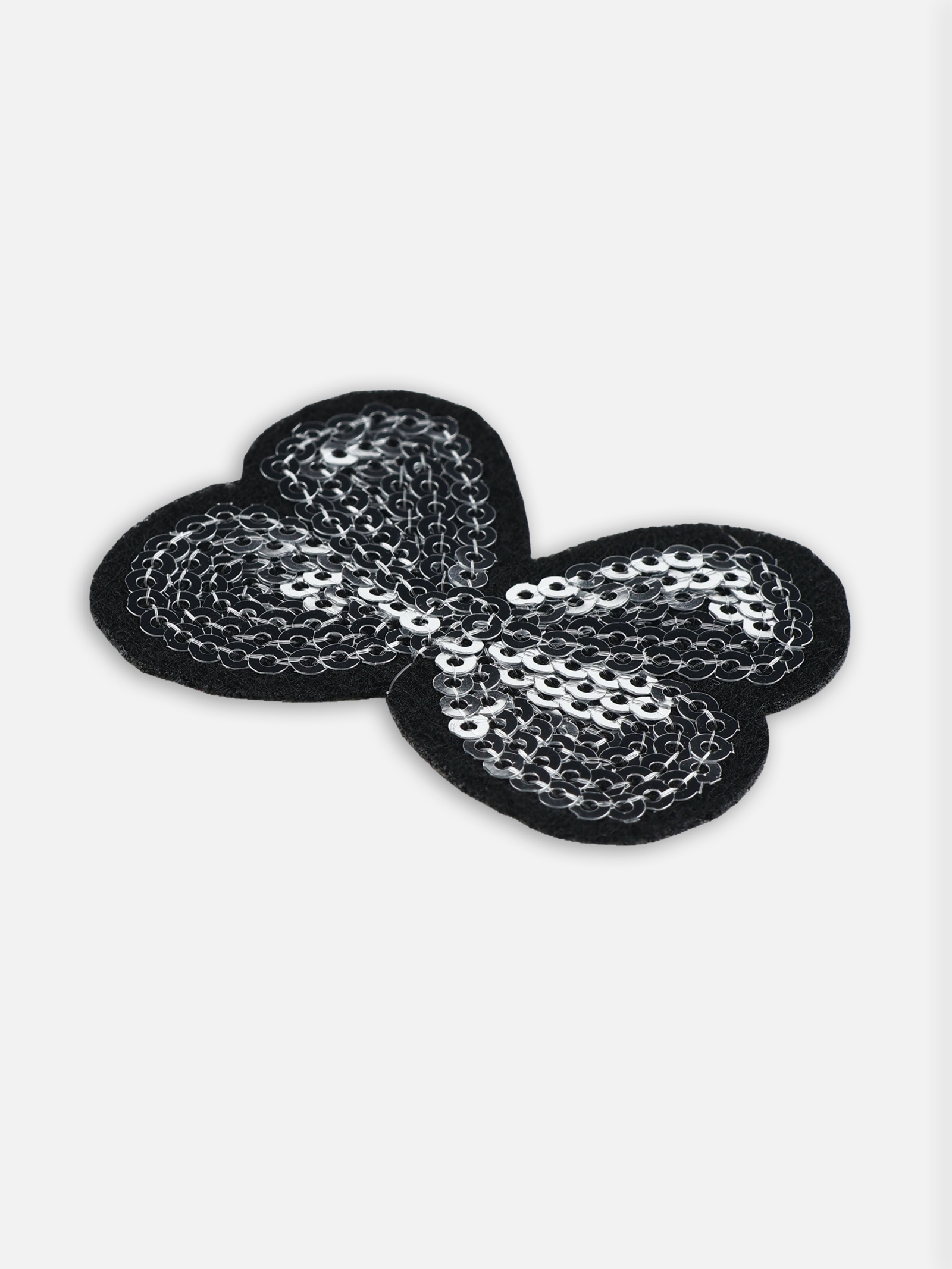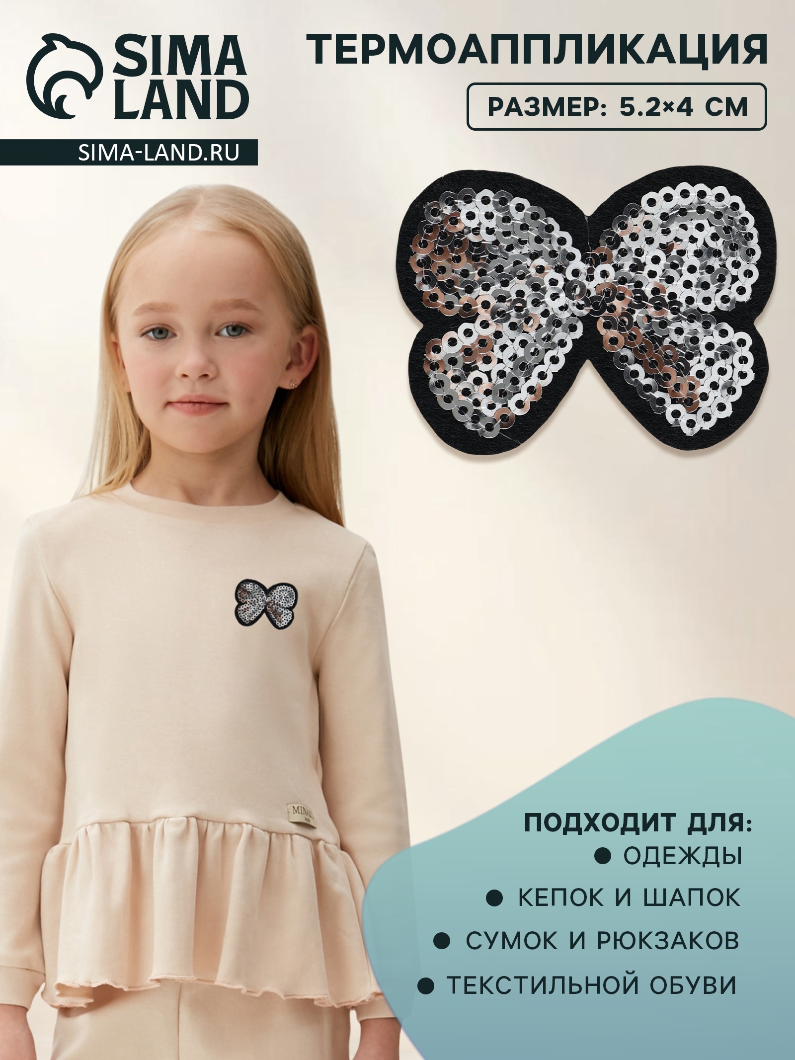 Термоаппликация «бантик», с пайетками, 5.2 4 см, цвет серебряный