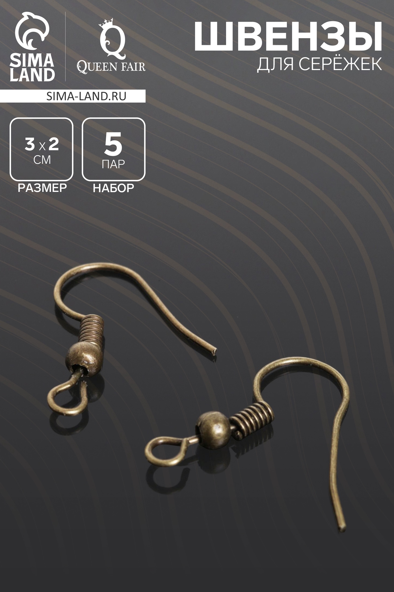 Швензы для сережек-крючки с бусиной (набор 5 пар), бронз