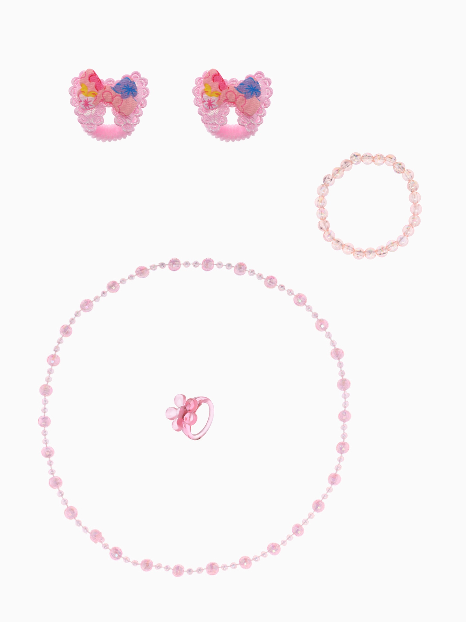 Набор детских украшений выбражулька «бантики», 5 предметов: 2 резинки, бусы, браслет, кольцо, микс