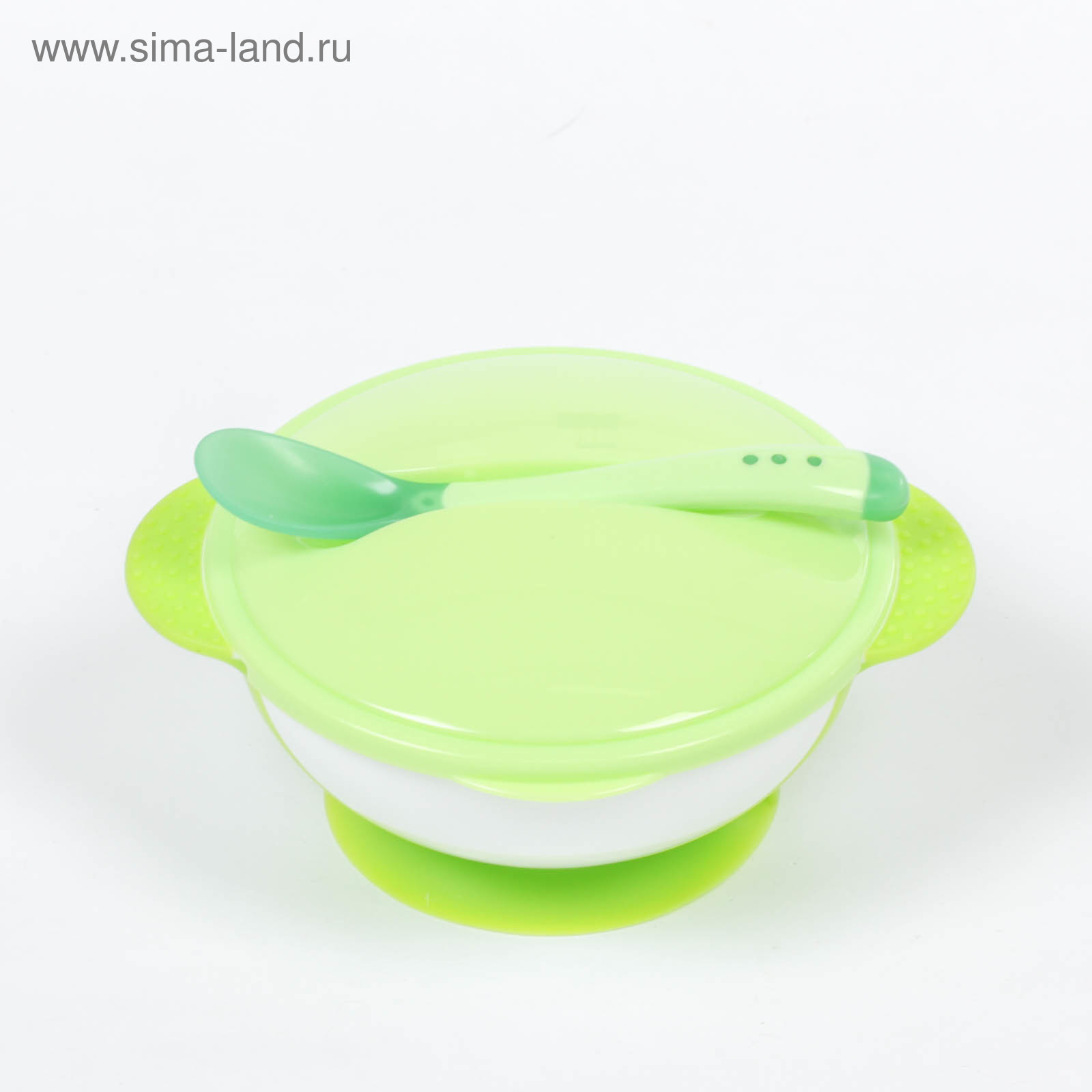 Набор для кормления, 3 предмета: миска 350 мл на присоске, крышка, ложка, цвет зелёный