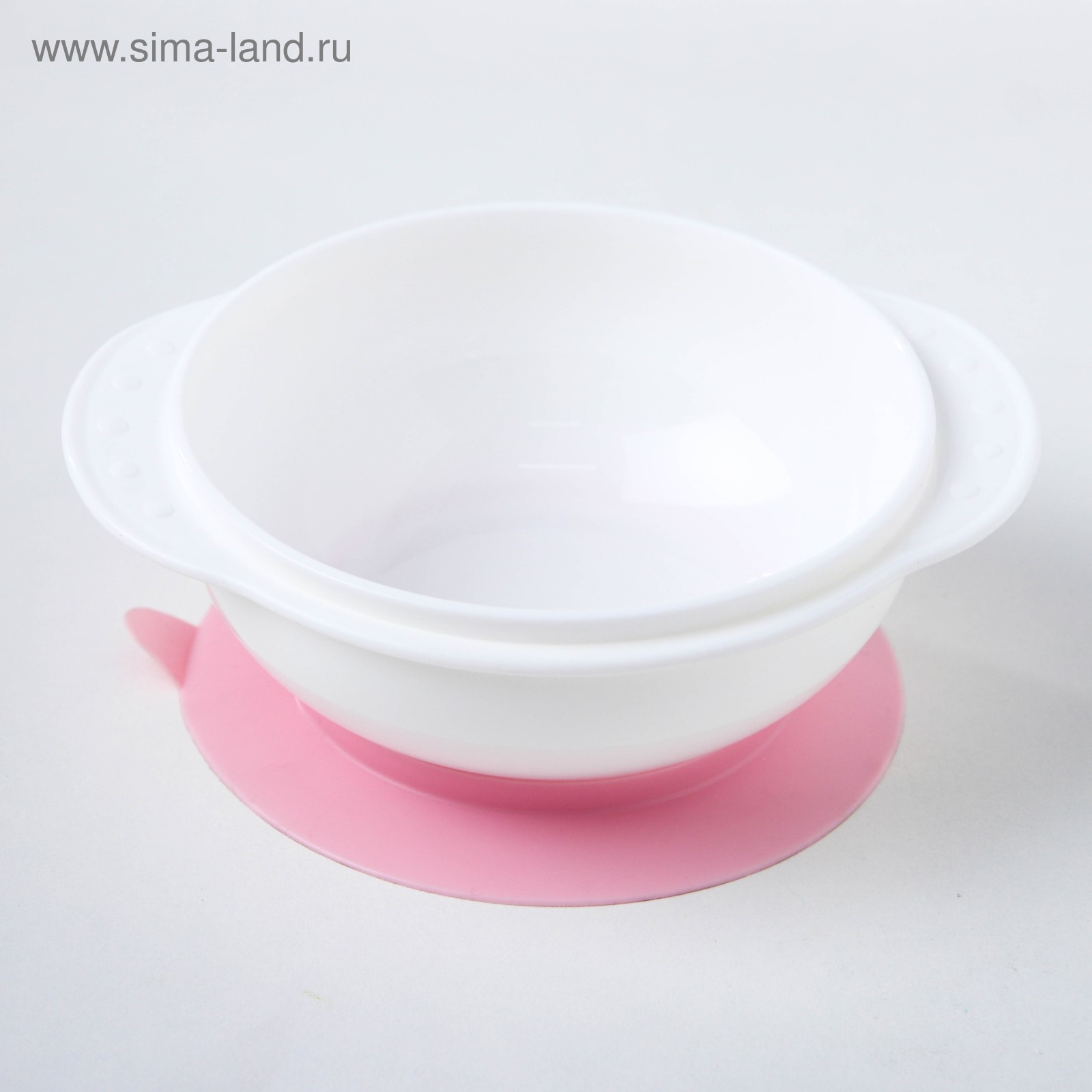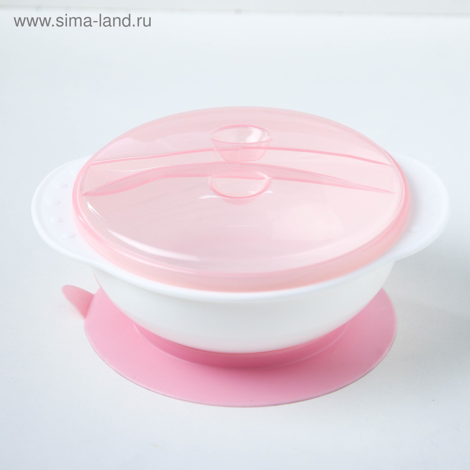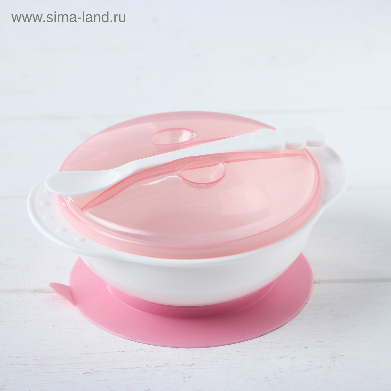 Набор для кормления, 3 предмета: миска на присоске 400 мл, крышка, ложка, цвет присоски розовый, цвет крышки микс