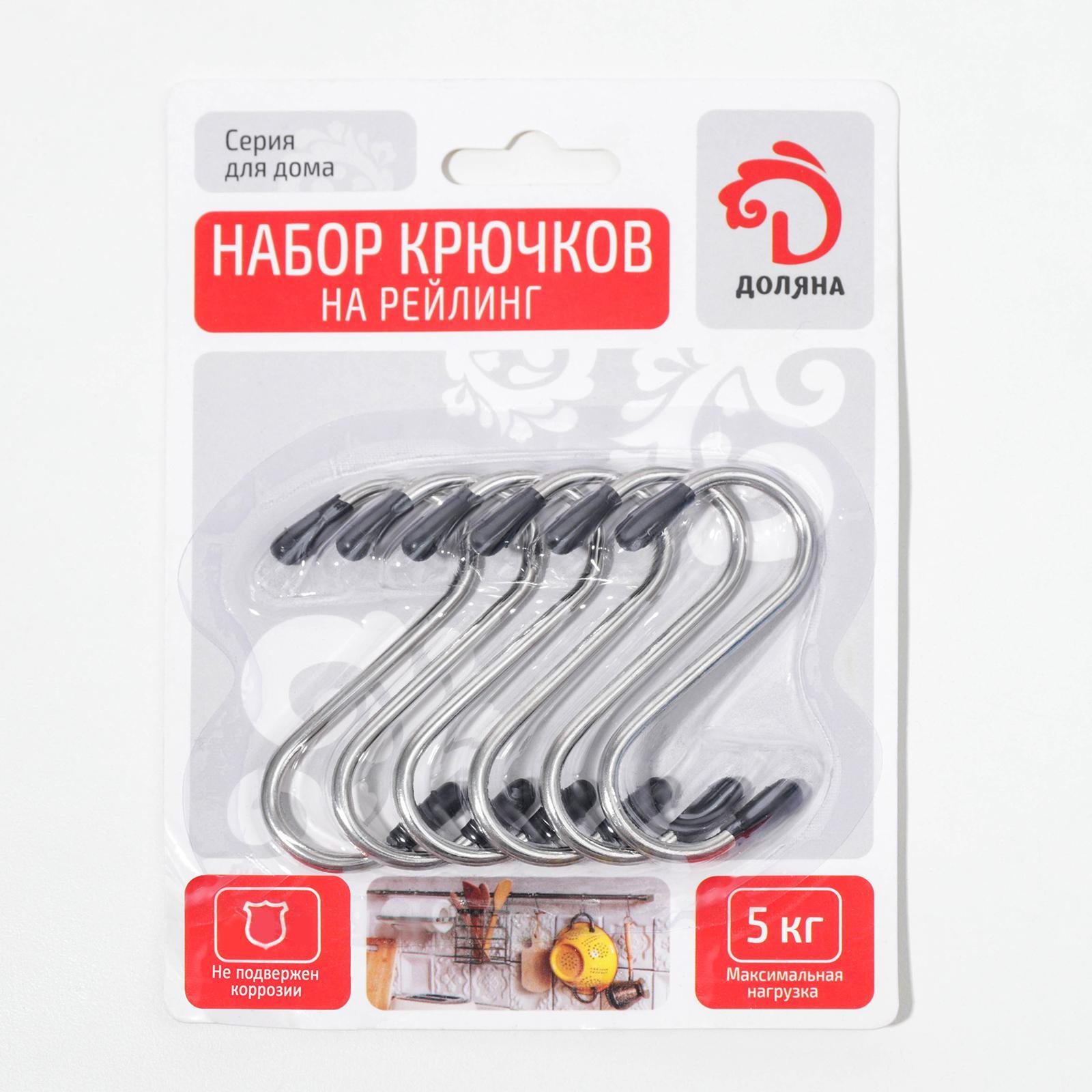 Набор крючков для рейлинга доляна, D=1.5 см, 6 см, 6 шт., хром