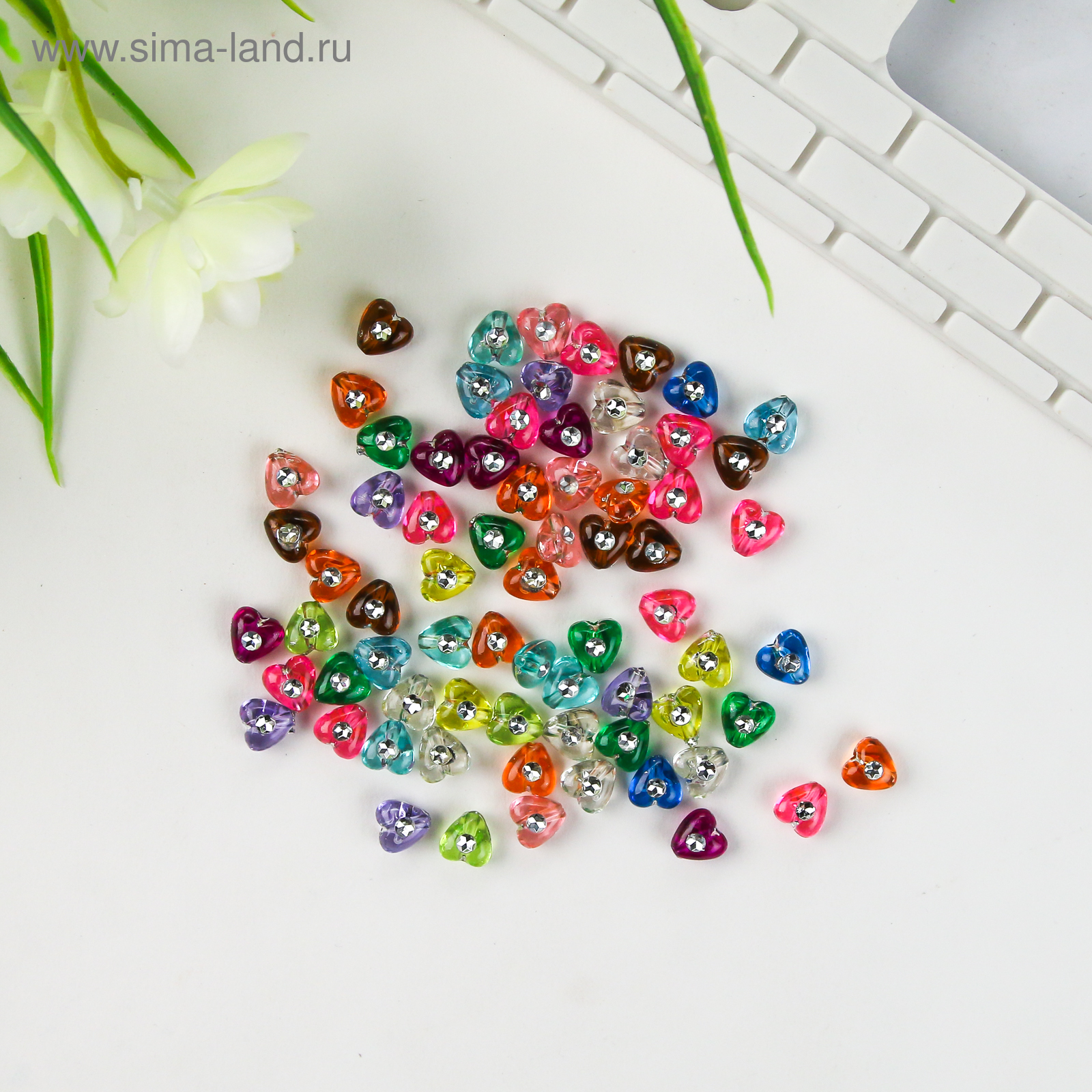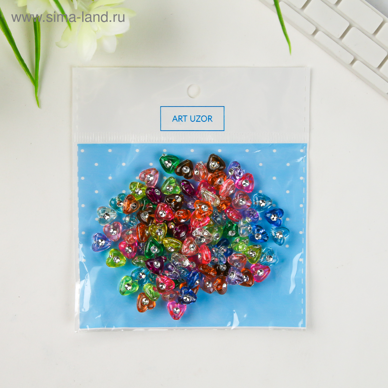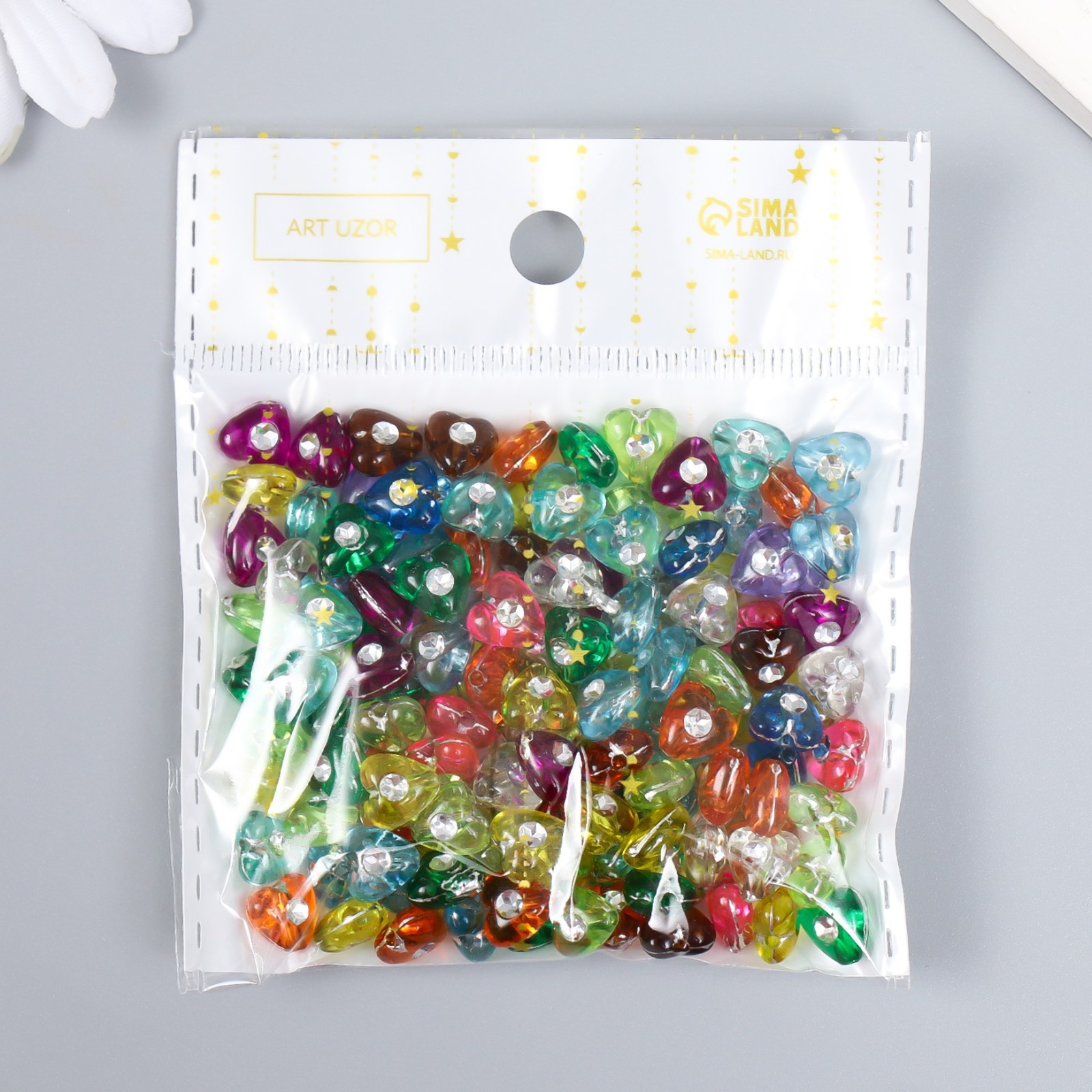 Набор бусин для рукоделия и плетения «арт узор. сердечки со стразиками», 20 г, пластик, 0.7 0.7 см