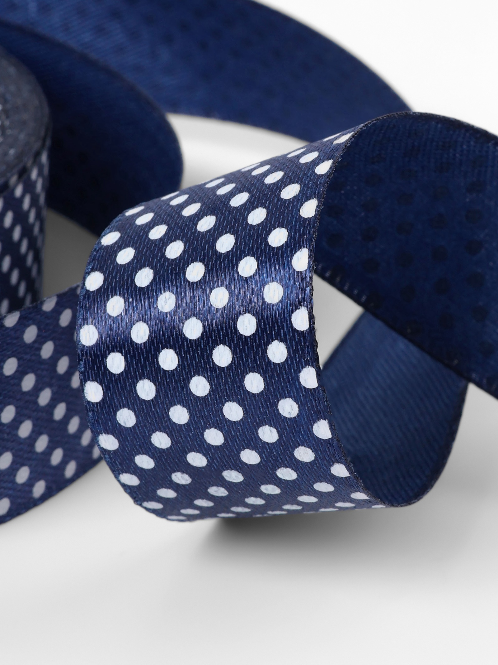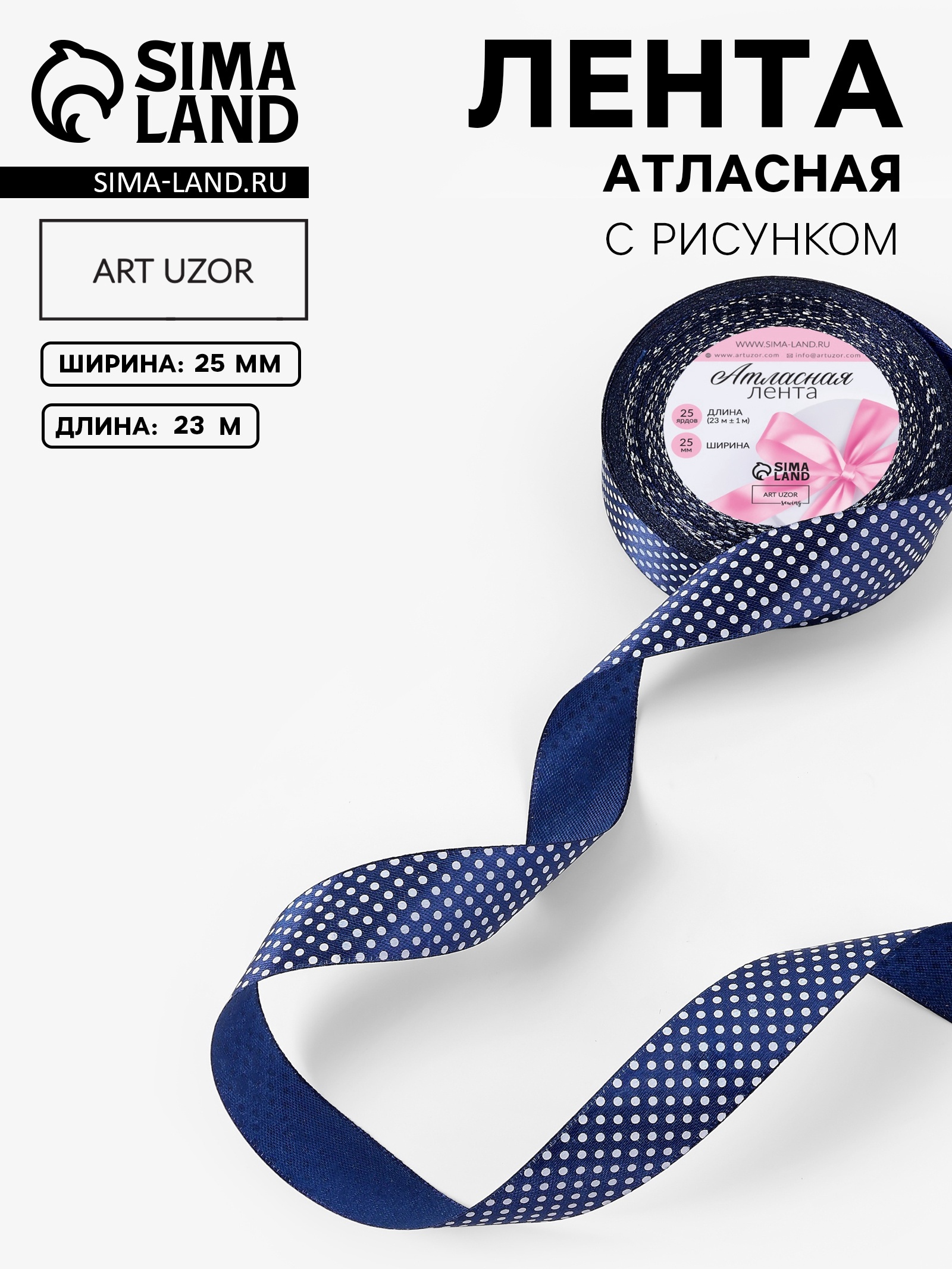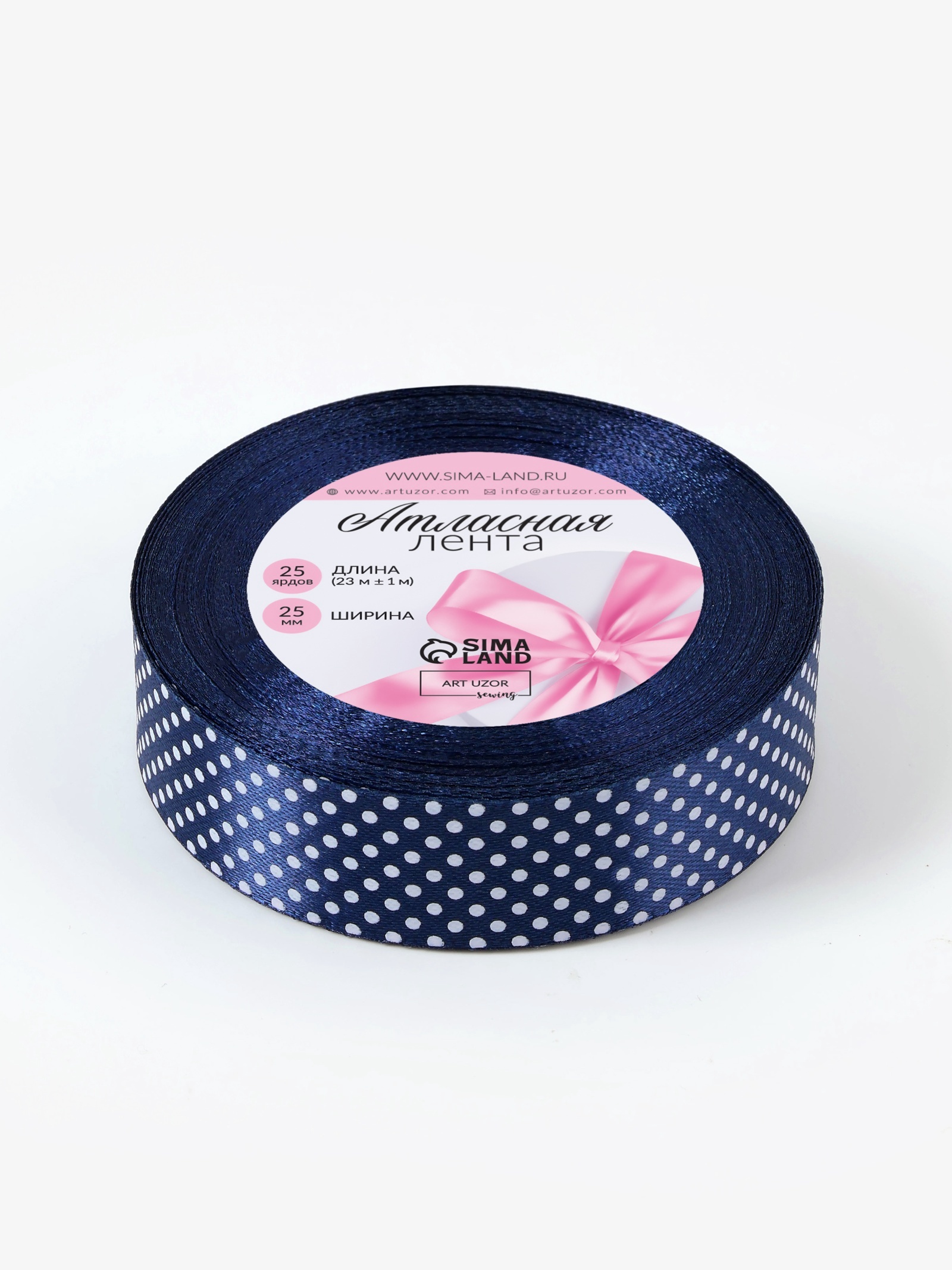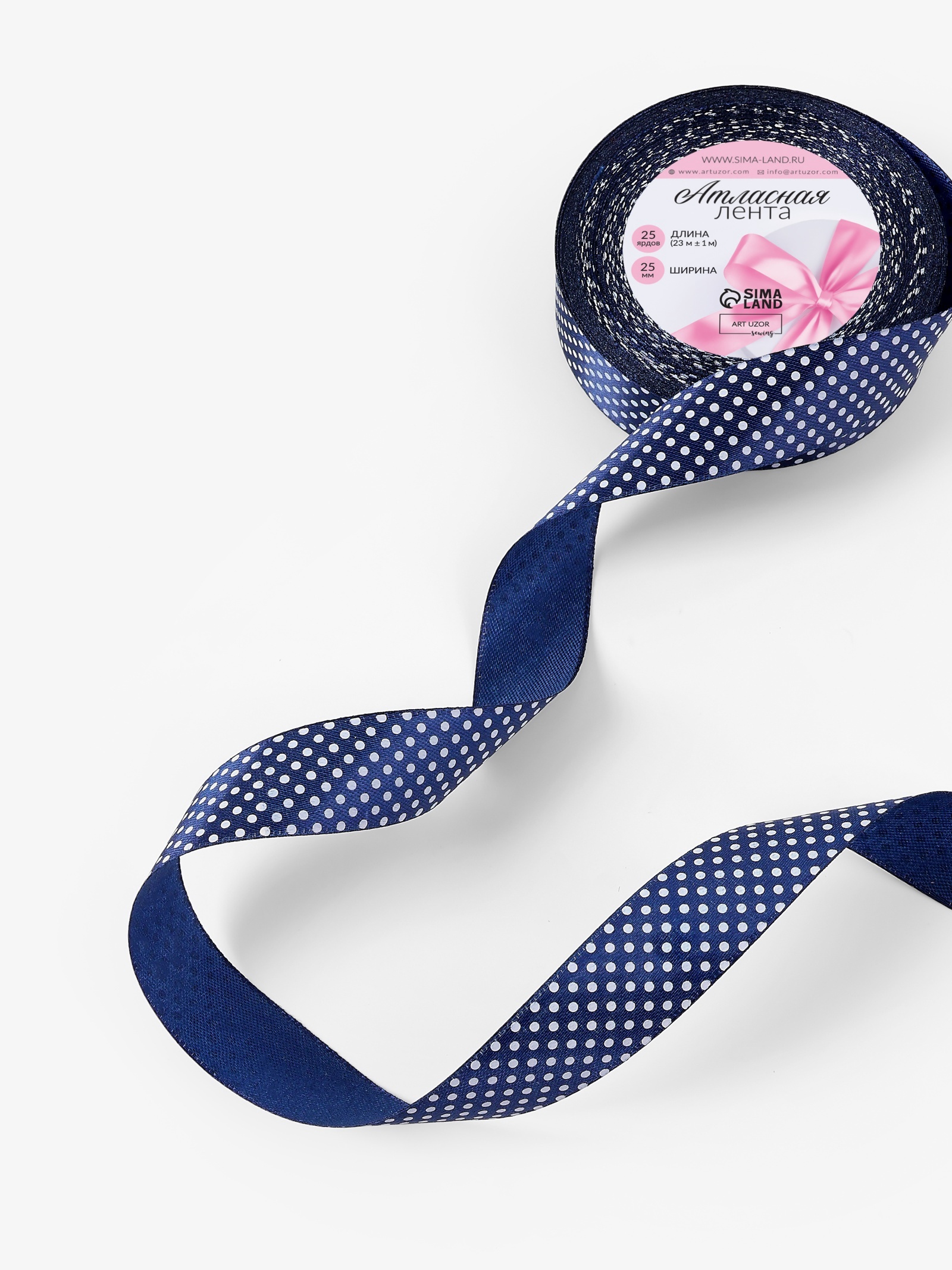 Лента атласная «горошек», 25 мм, 23±1 м, синяя №138