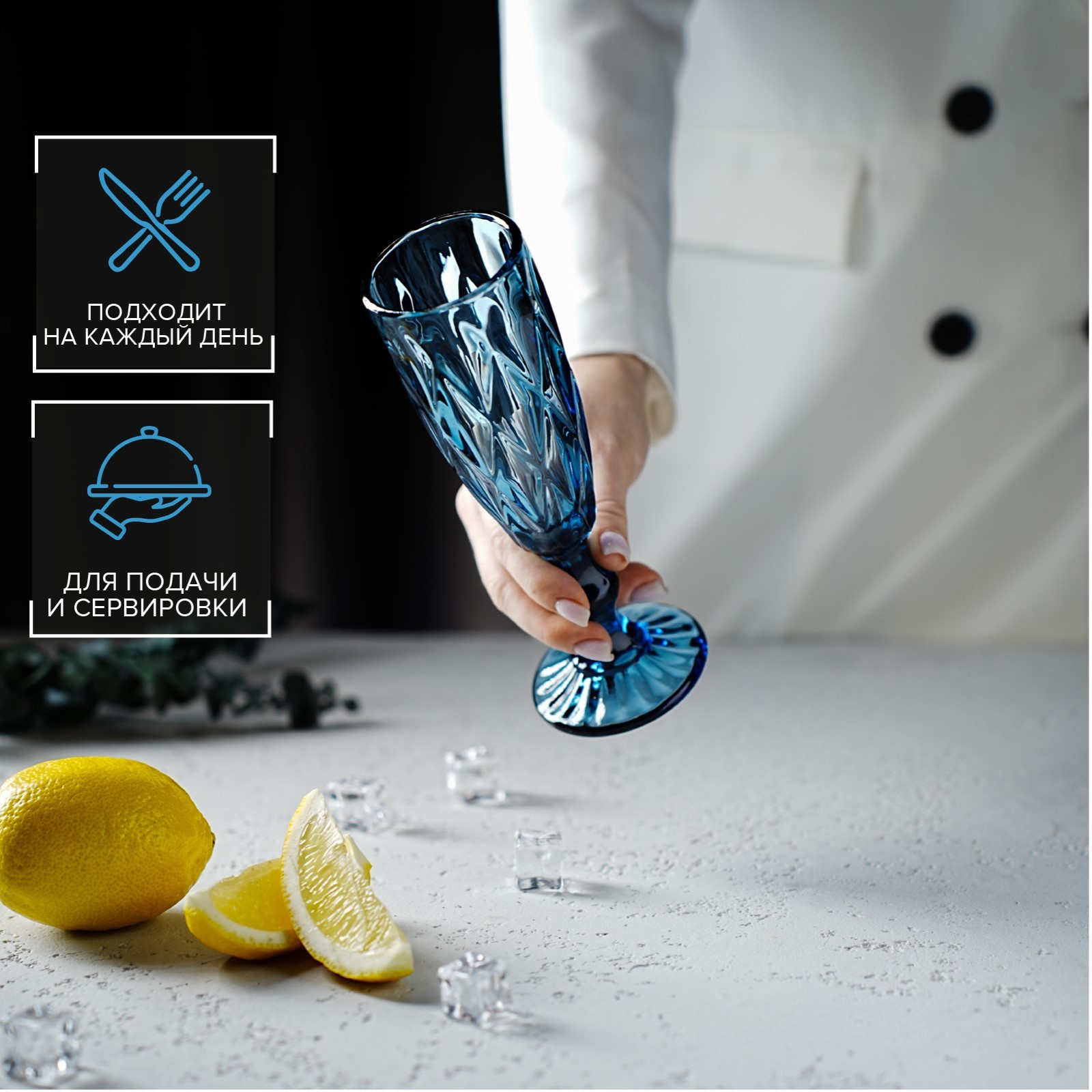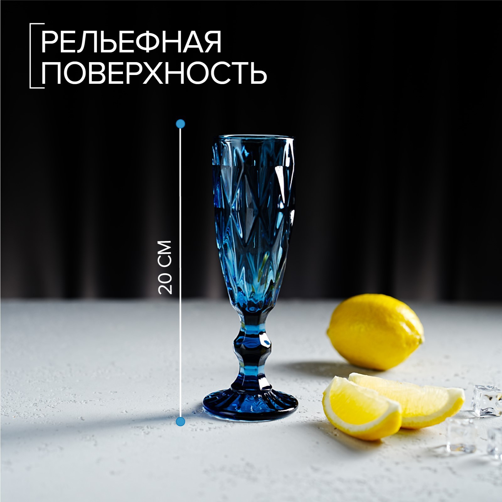 Бокал стеклянный для шампанского Magistro «круиз», 160 мл, 7x20 см, цвет синий