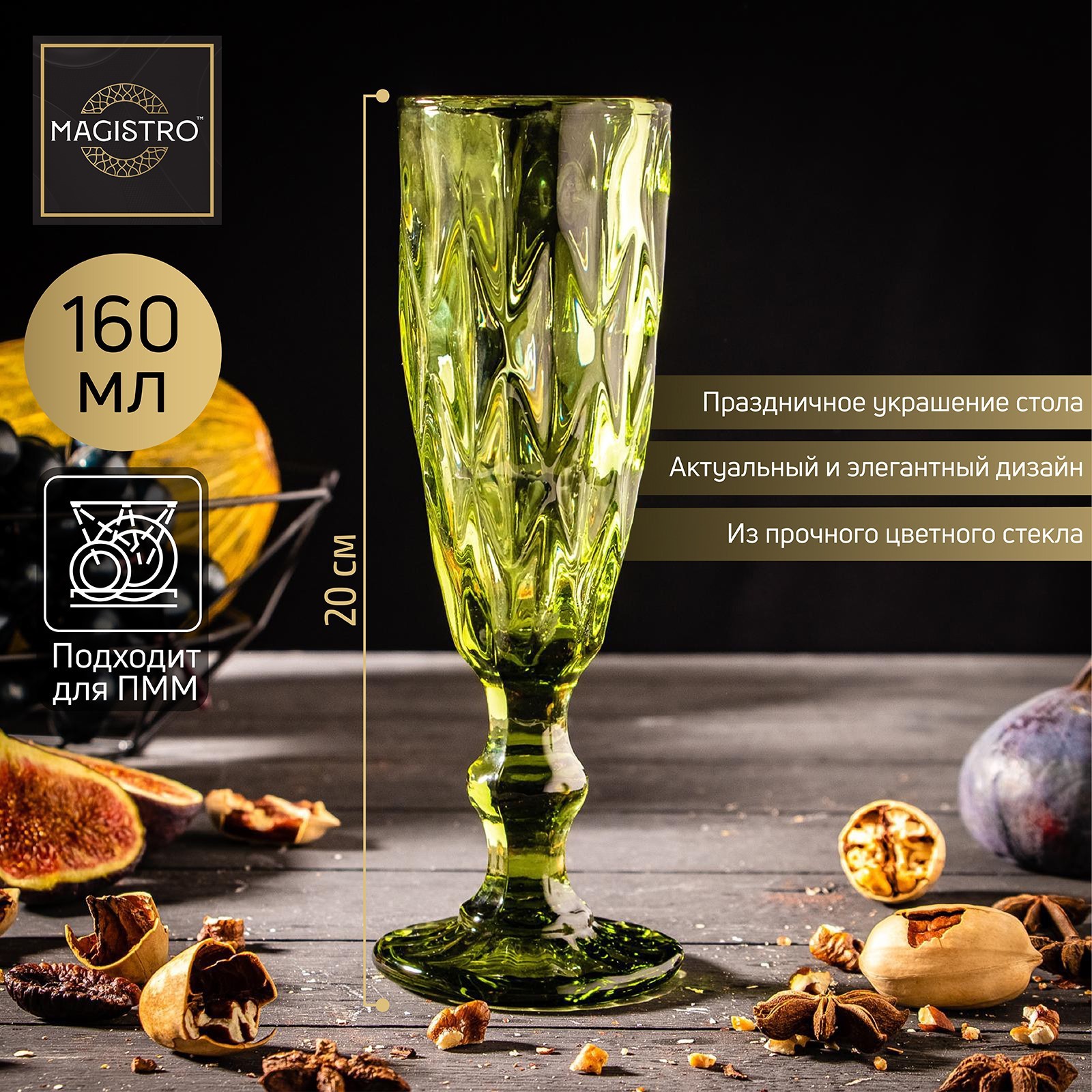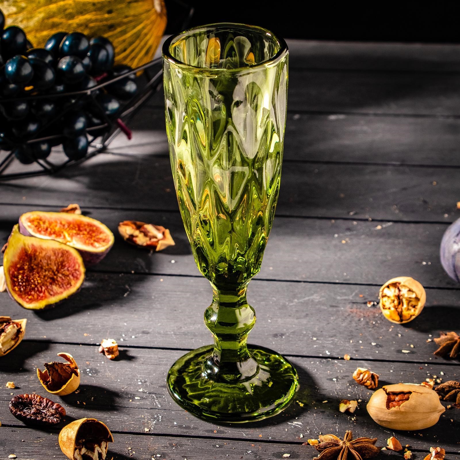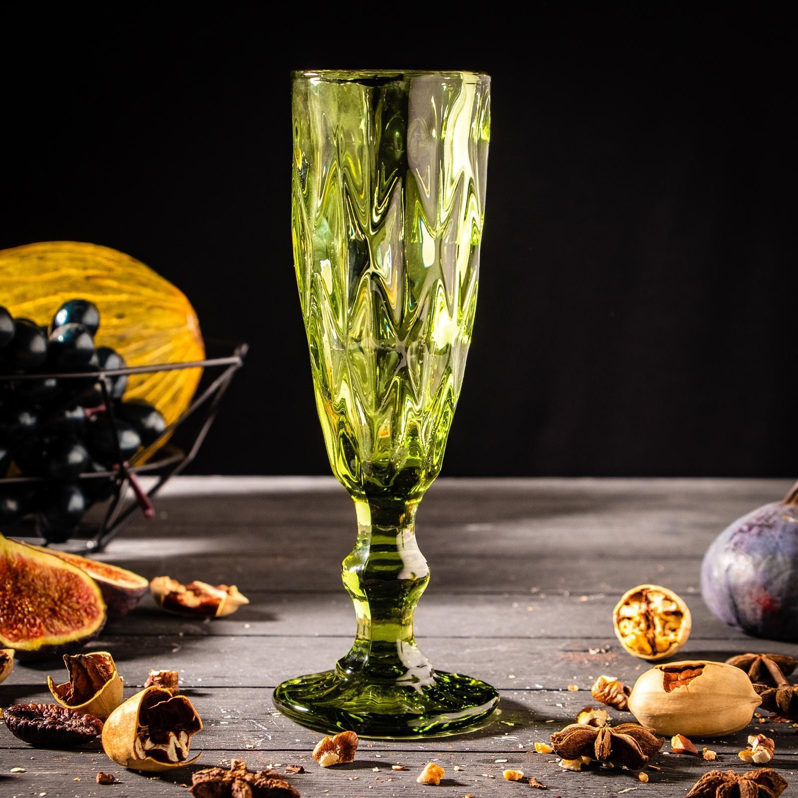 Бокал стеклянный для шампанского Magistro «круиз», 160 мл, 7x20 см, цвет зелёный