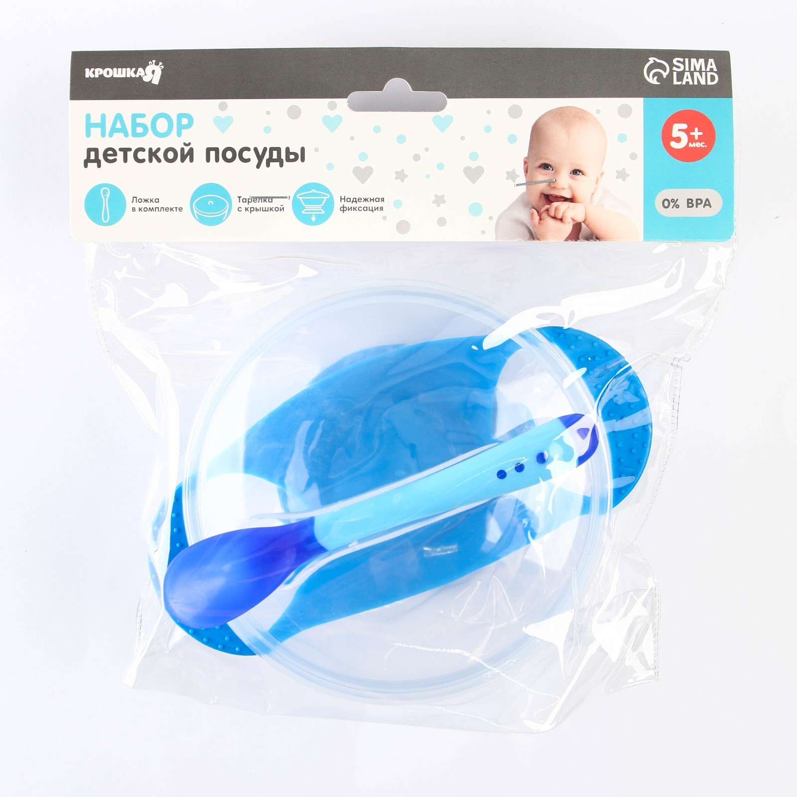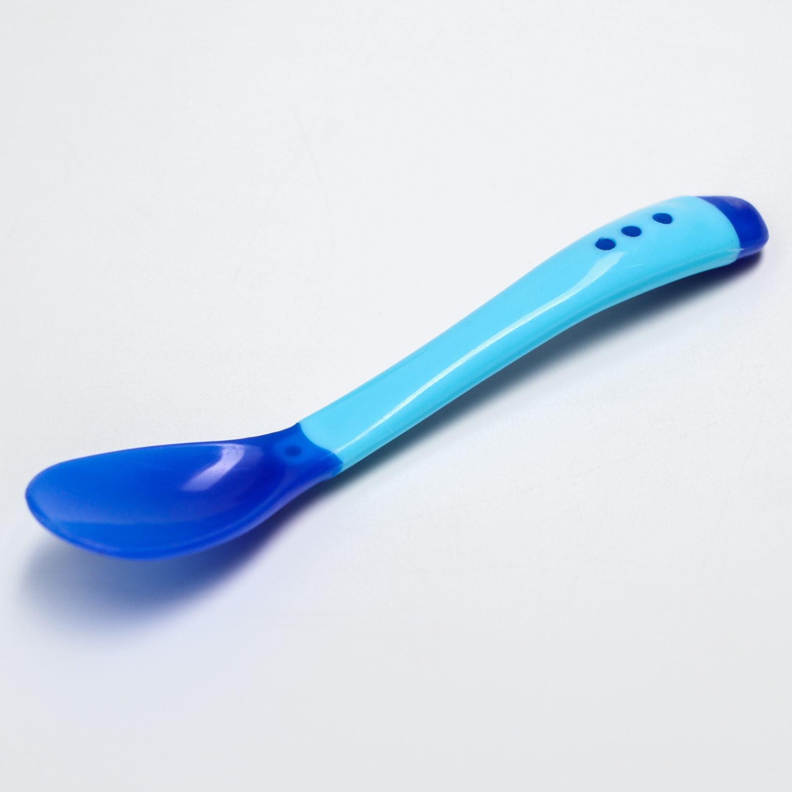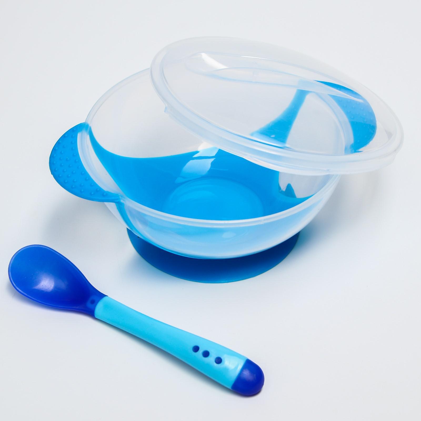 Набор для кормления, 3 предмета: тарелка на присоске 350 мл, крышка, термоложка, цвет синий