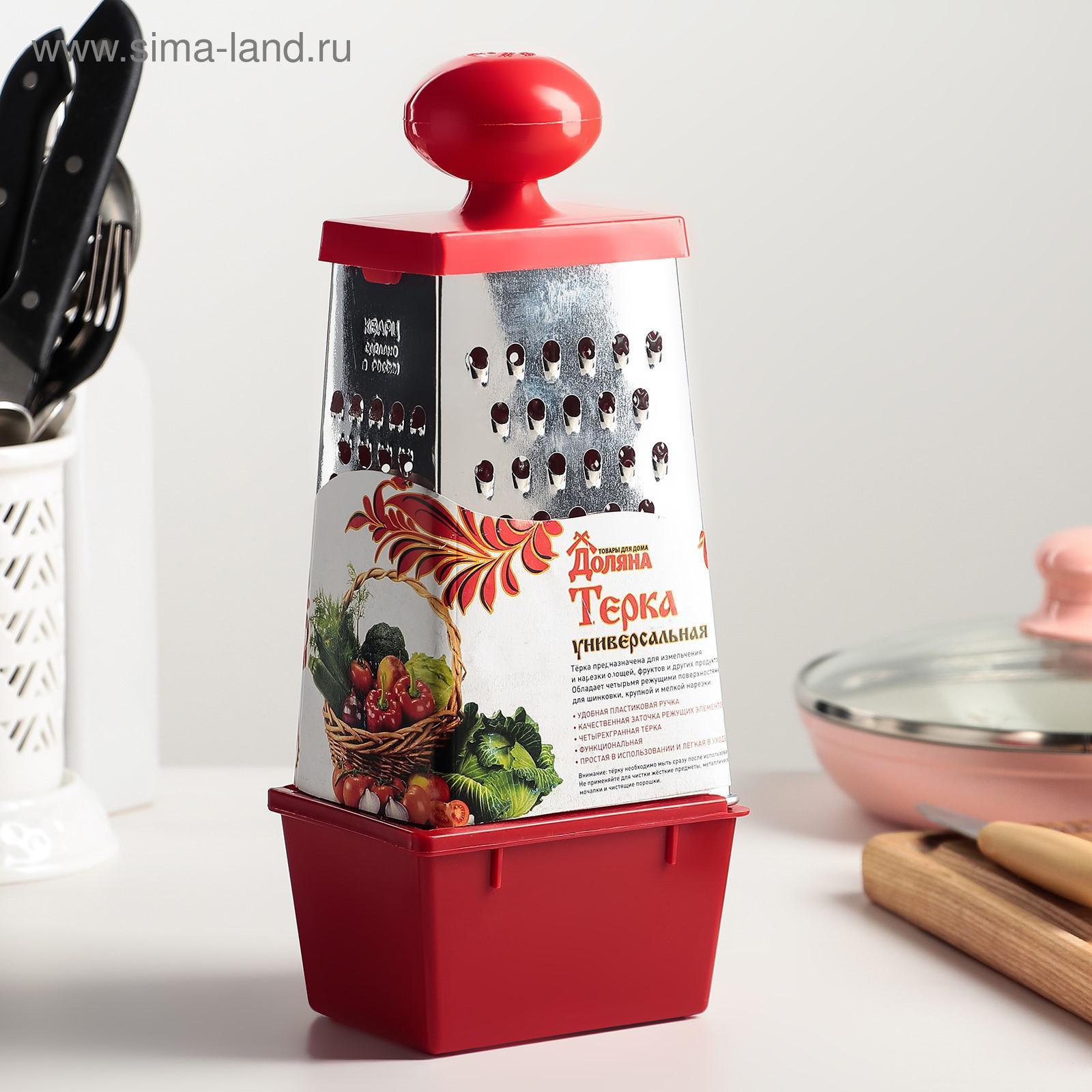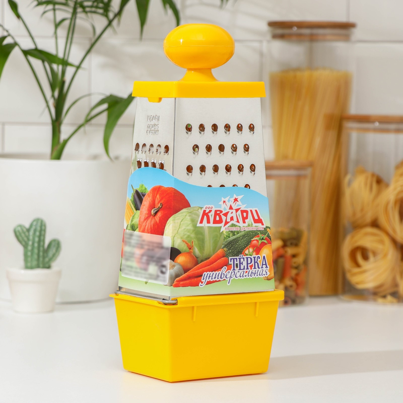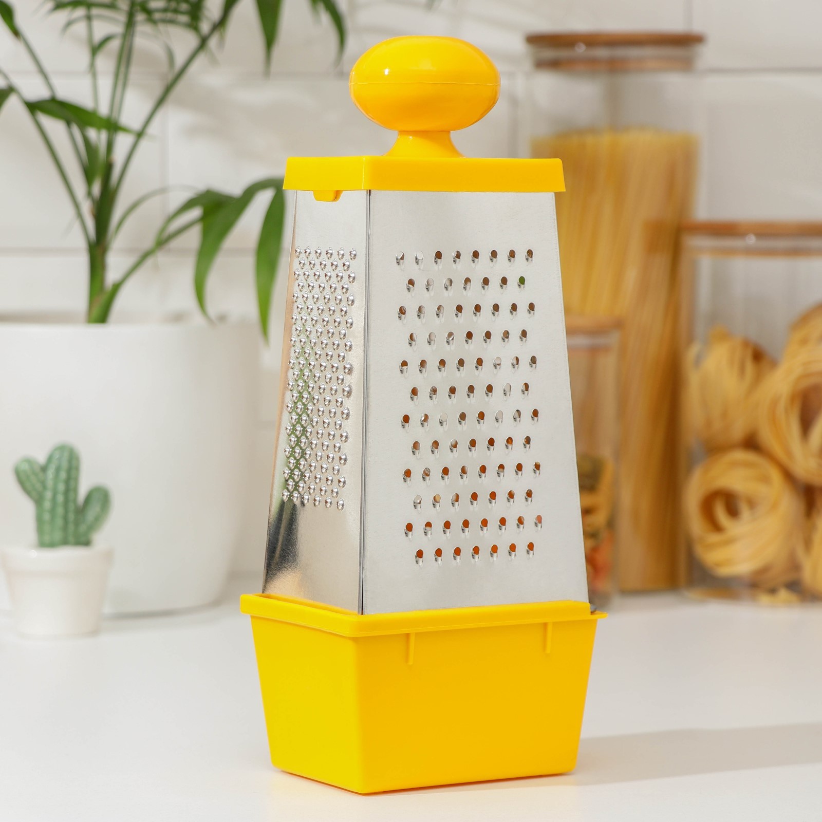 Тёрка доляна «комфорт», 4 грани, с контейнером 450 мл, ручка круглая, 28x12x9 см, цвет микс