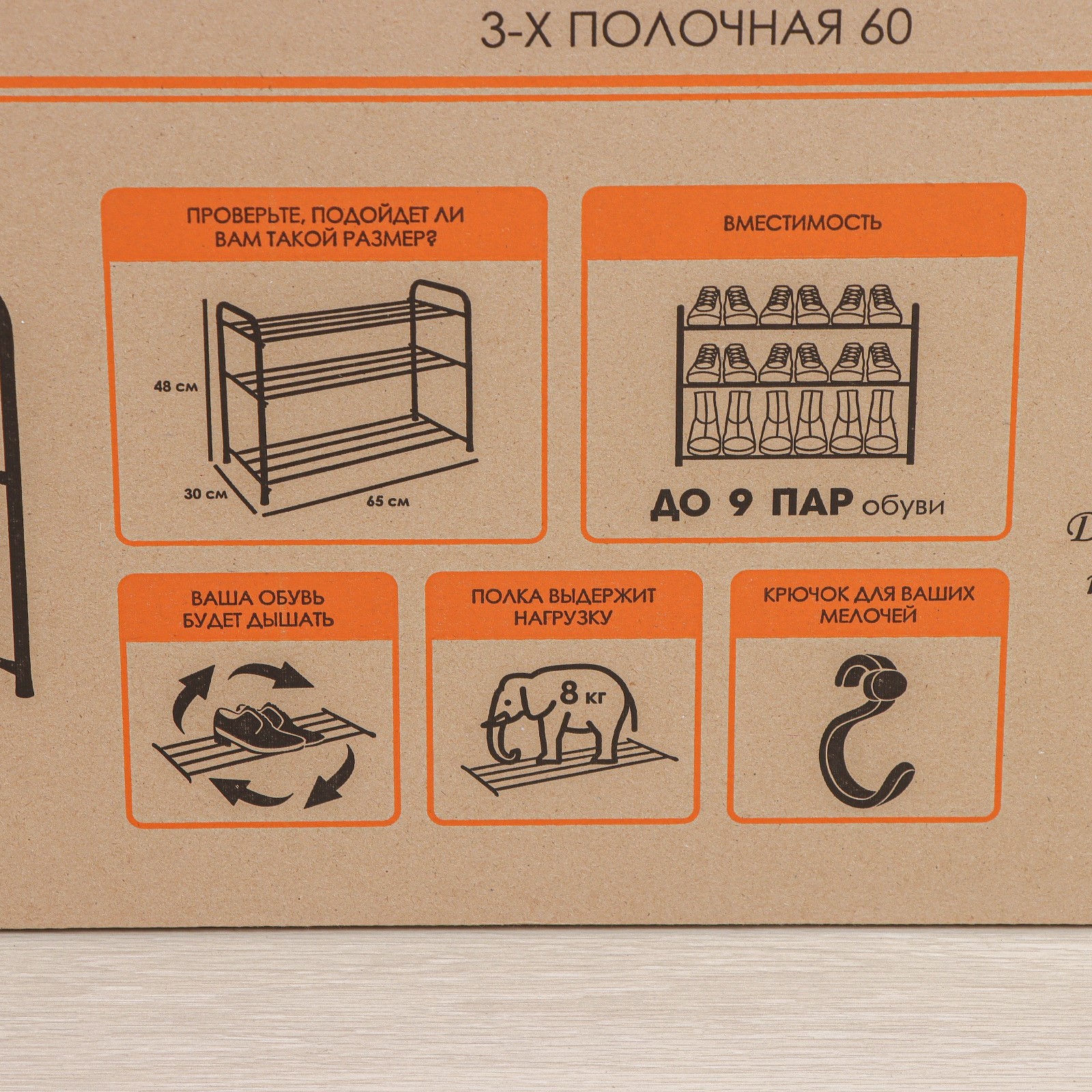 Подставка для обуви, 3 яруса, 65x30x48 см, цвет чёрный