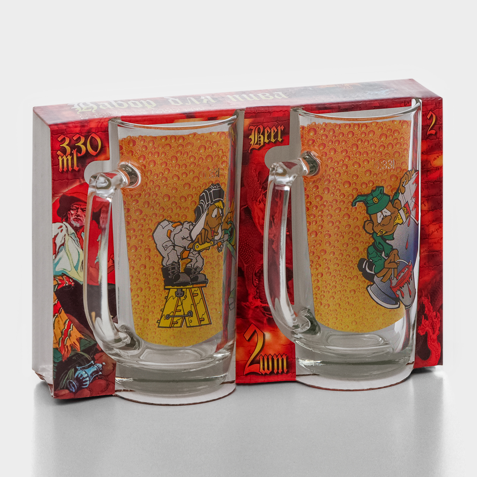 Набор пивных кружек «приколисты», 330 мл, в подарочной упаковке, 2 шт, рисунок микс