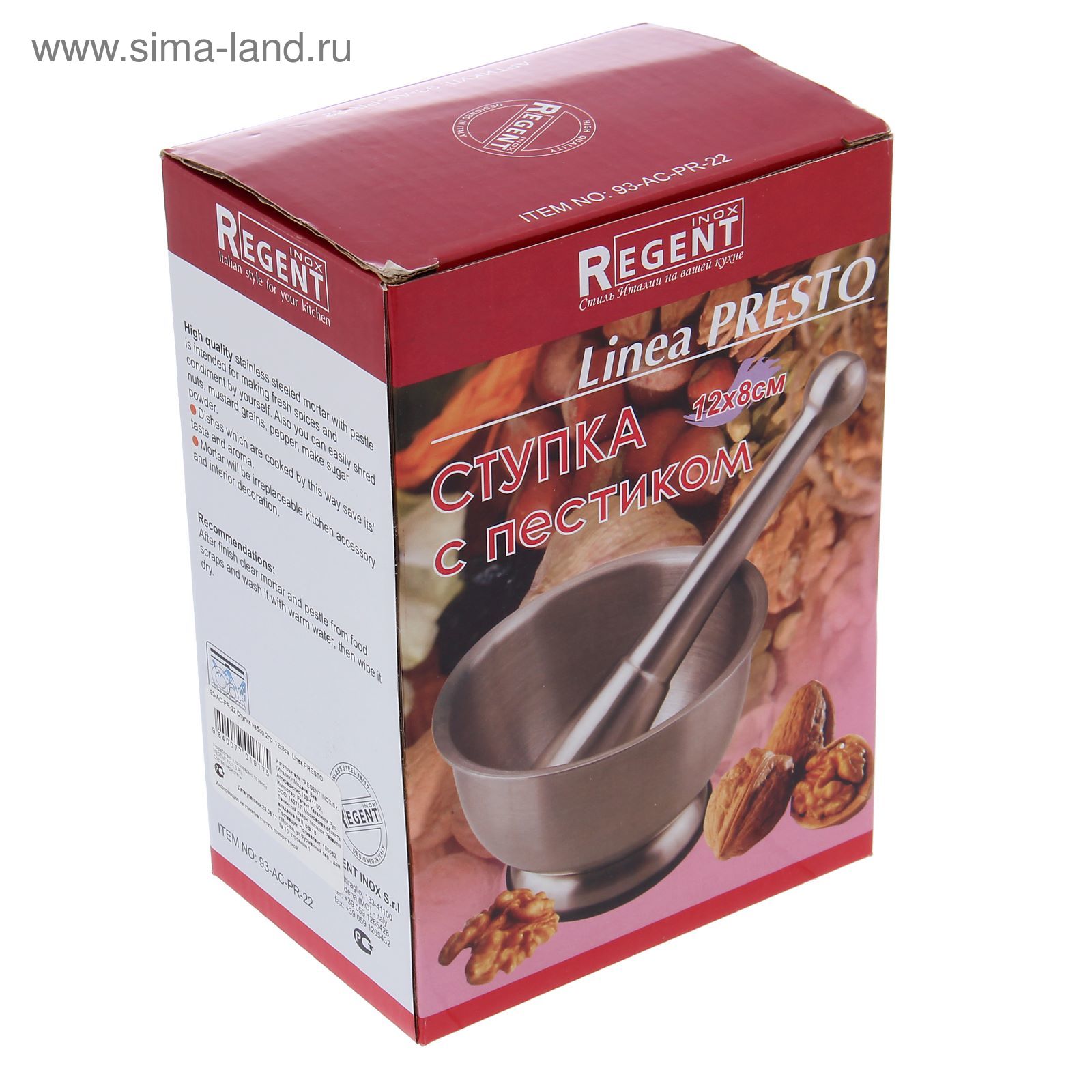 Ступка Regent Inox Presto, размер 12х8 см, 2 предмета