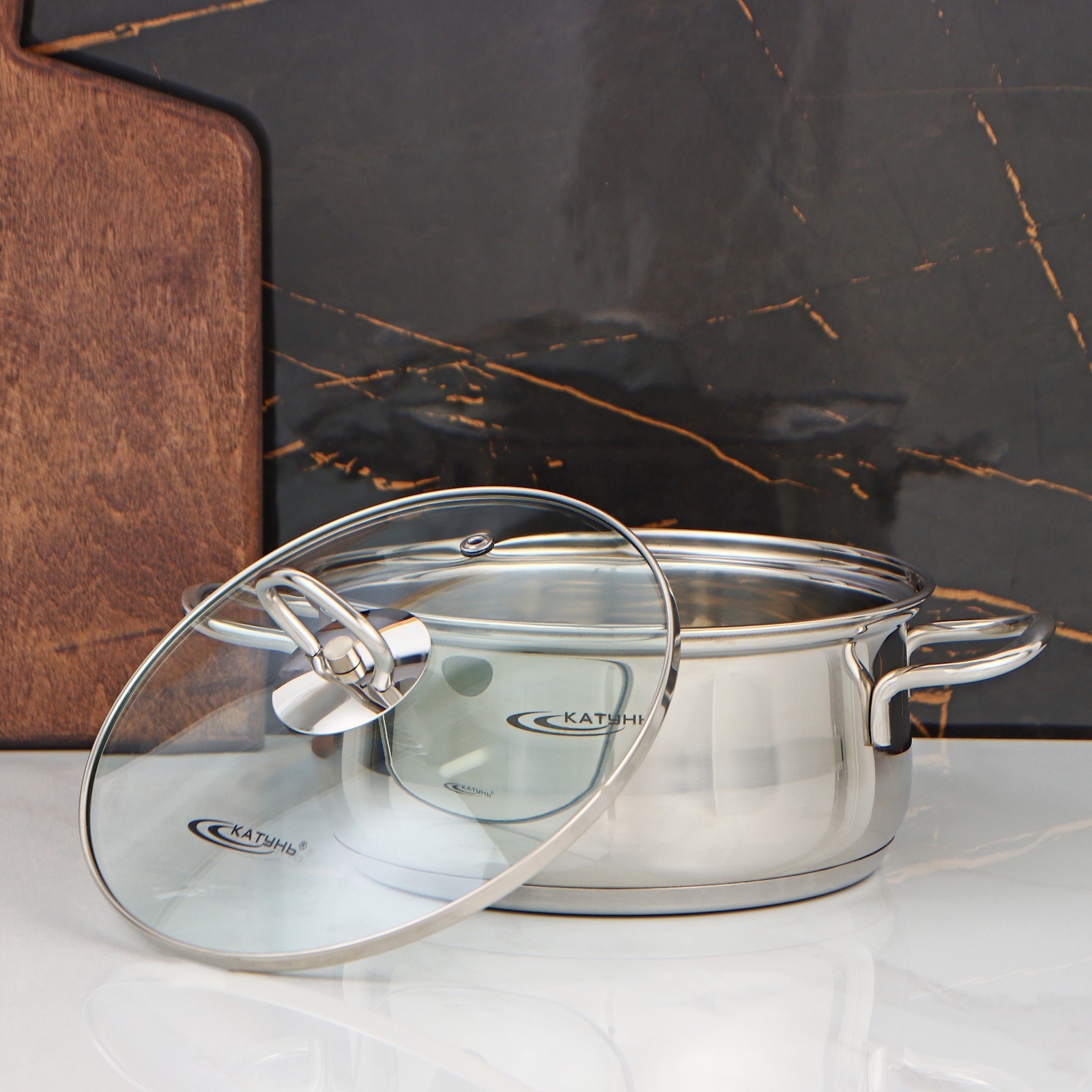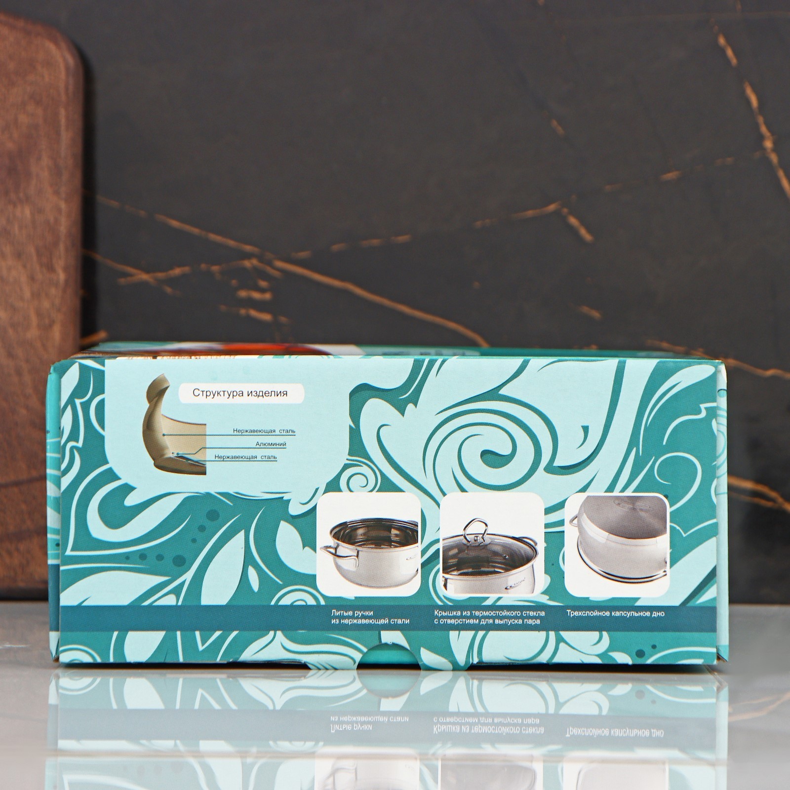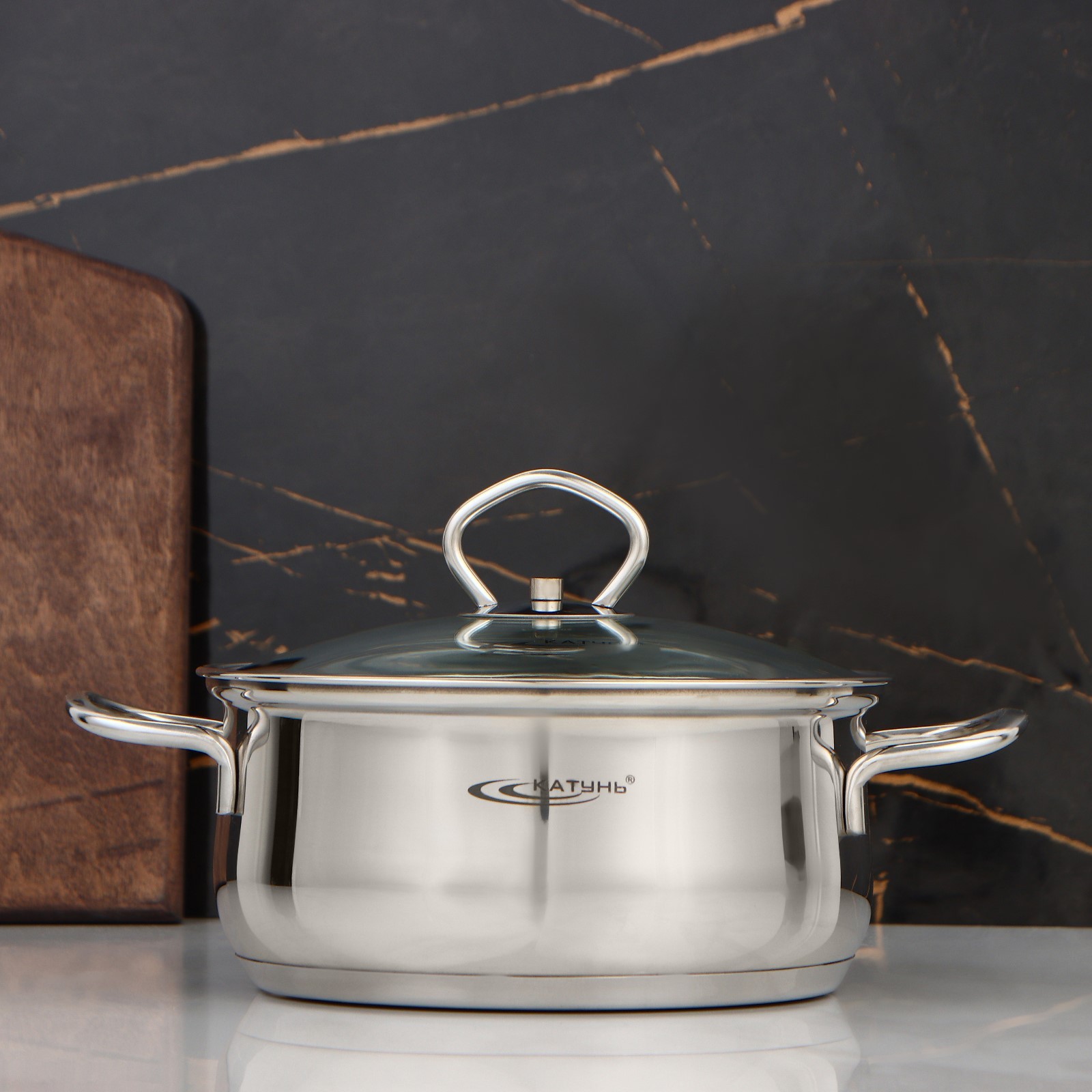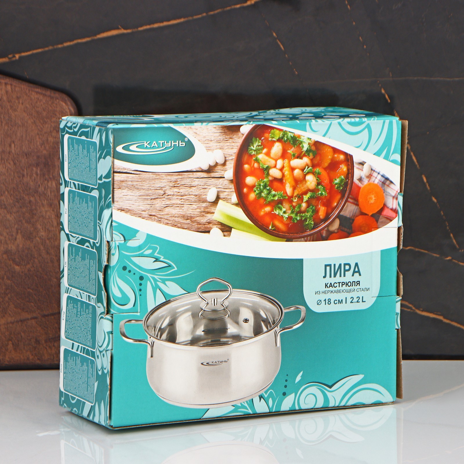Кастрюля «лира» 2,2 л, D=18 см, капсульное дно, стеклянная крышка, индукция