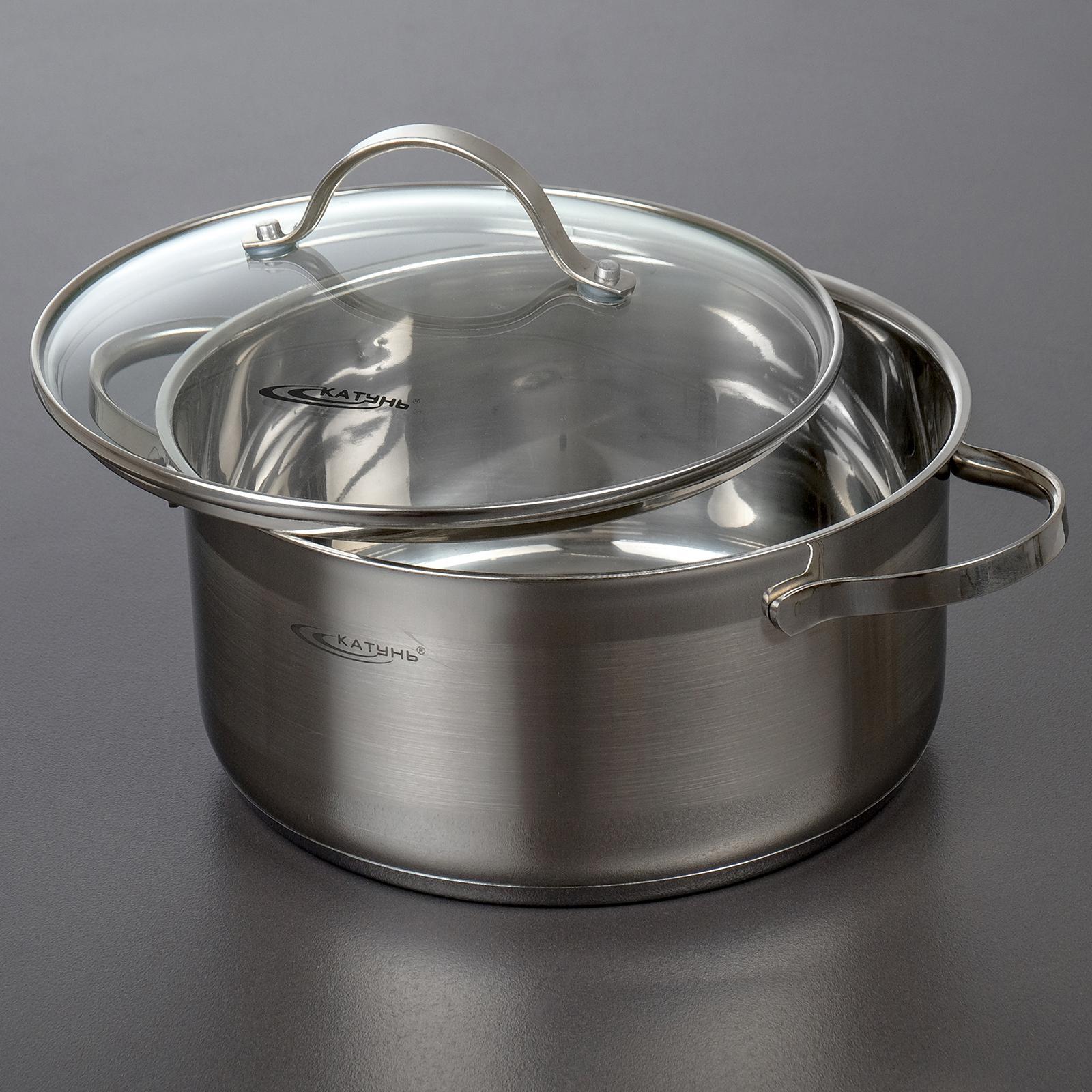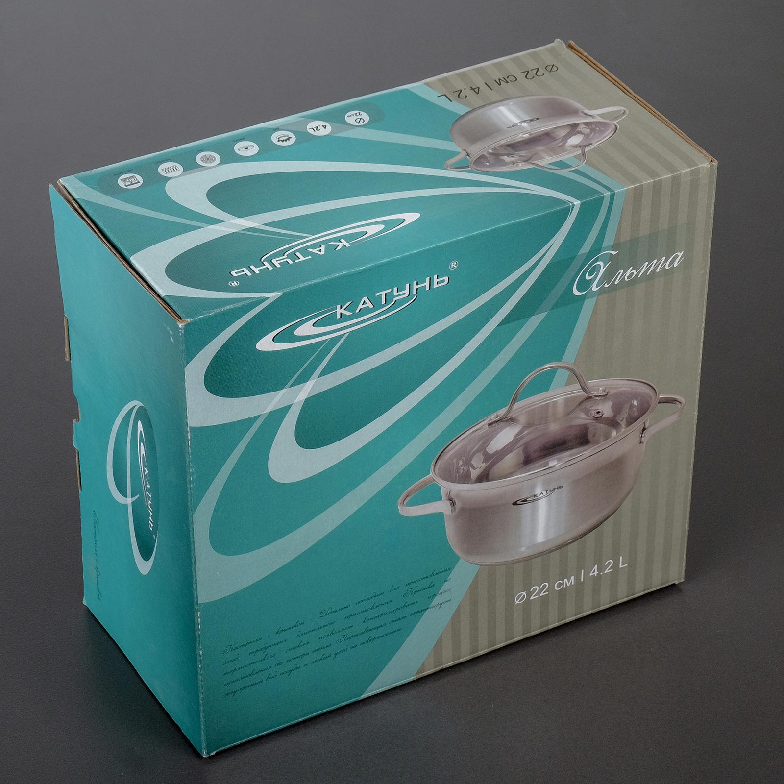 Кастрюля «альта», 4,2 л, D=22 см, капсульное дно, стеклянная крышка, индукция