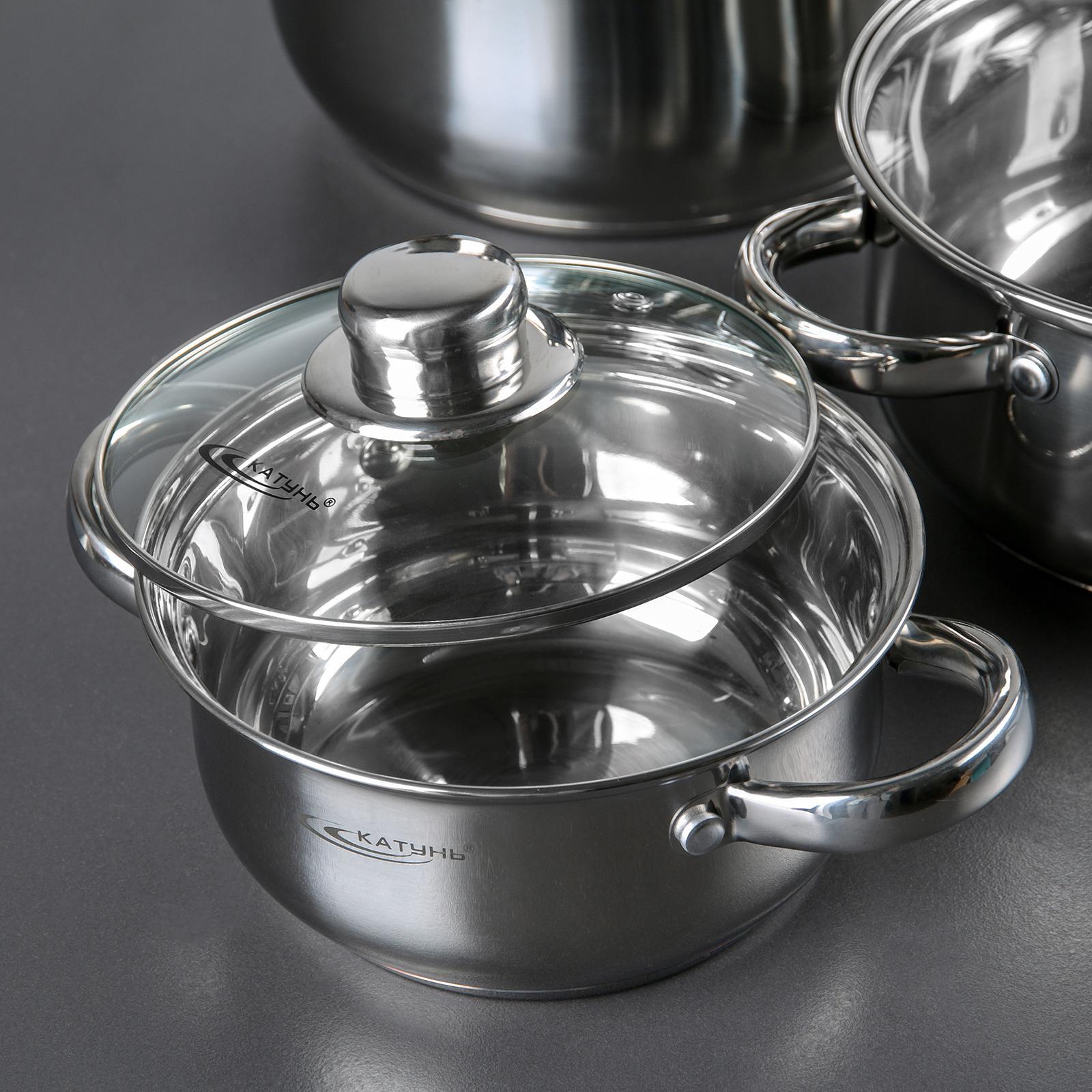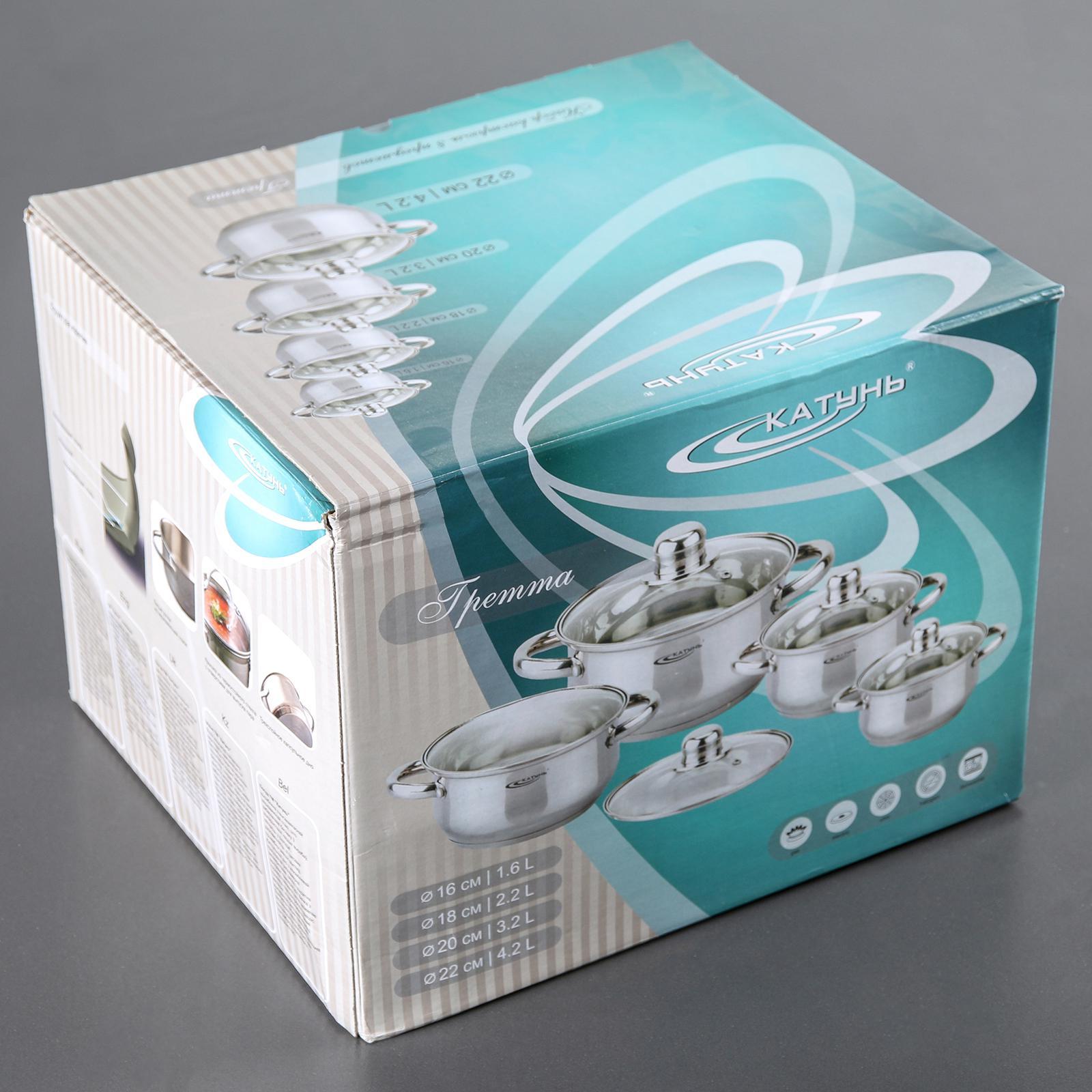 Набор кастрюль «гретта», 4 предмета: 1,6л, 2,2л, 3,2л, 4,2л, стеклянные крышки, индукция