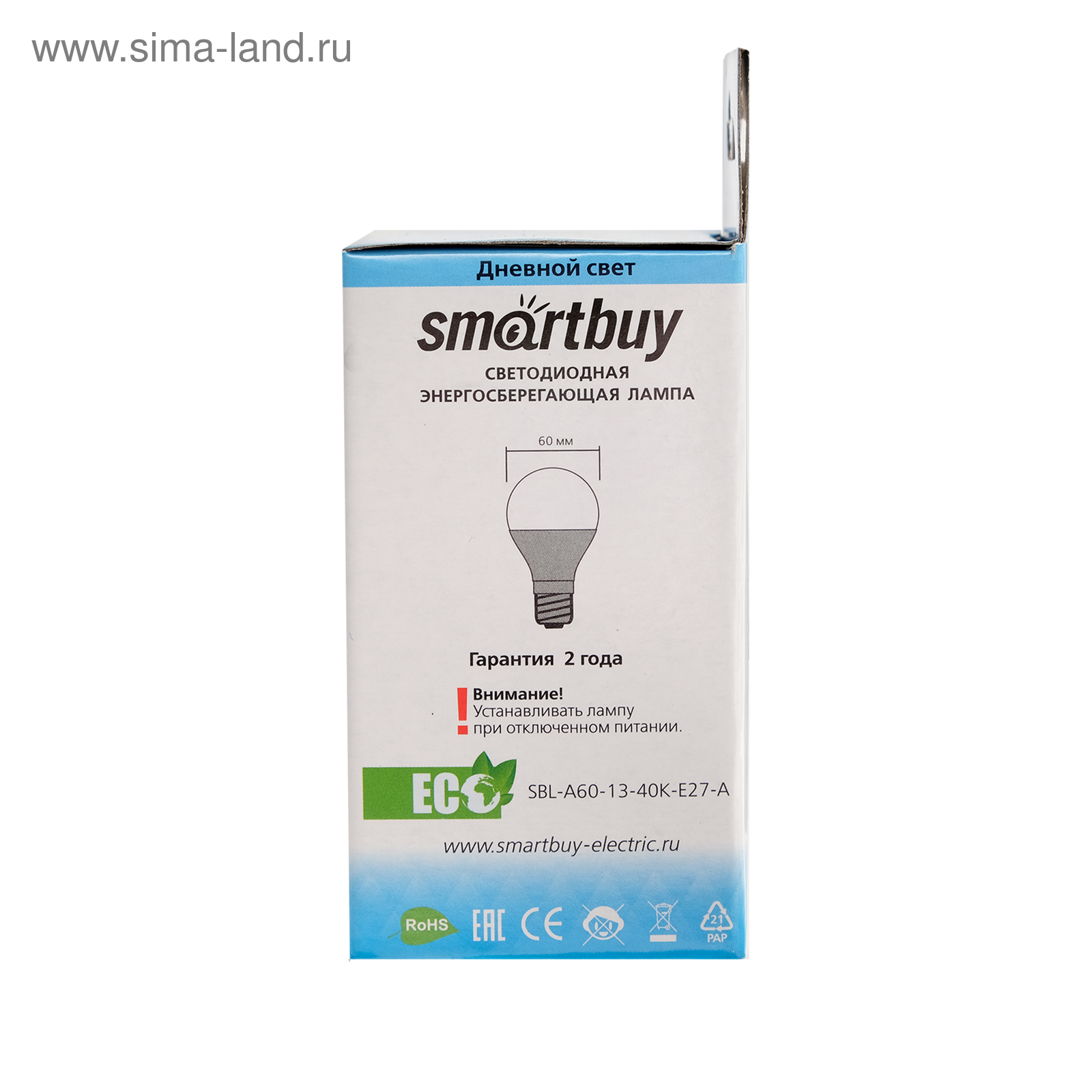 Лампа Cветодиодная Smartbuy, E27, A60, 13 вт, 4000 к, дневной белый свет
