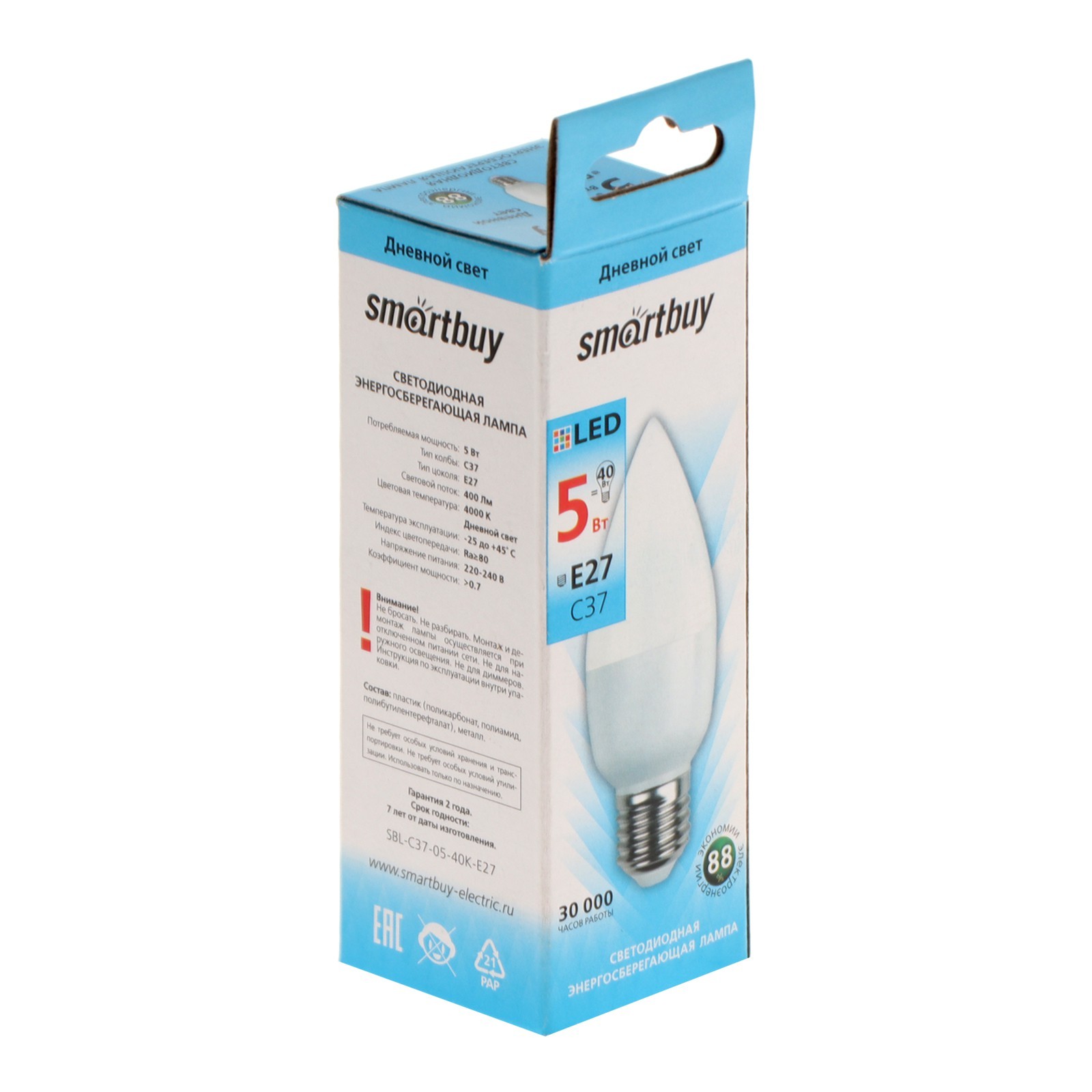 Лампа Cветодиодная Smartbuy, E27, C37, 5 вт, 4000 к, дневной свет