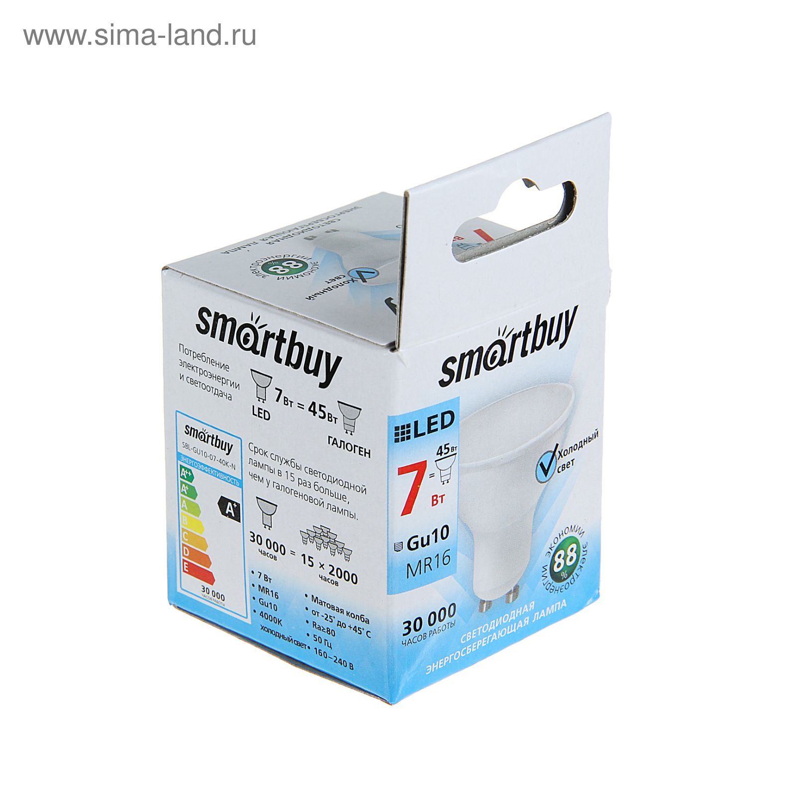 Лампа Cветодиодная Smartbuy, Mr16, 7 вт, Gu10, 4000 к, дневной белый