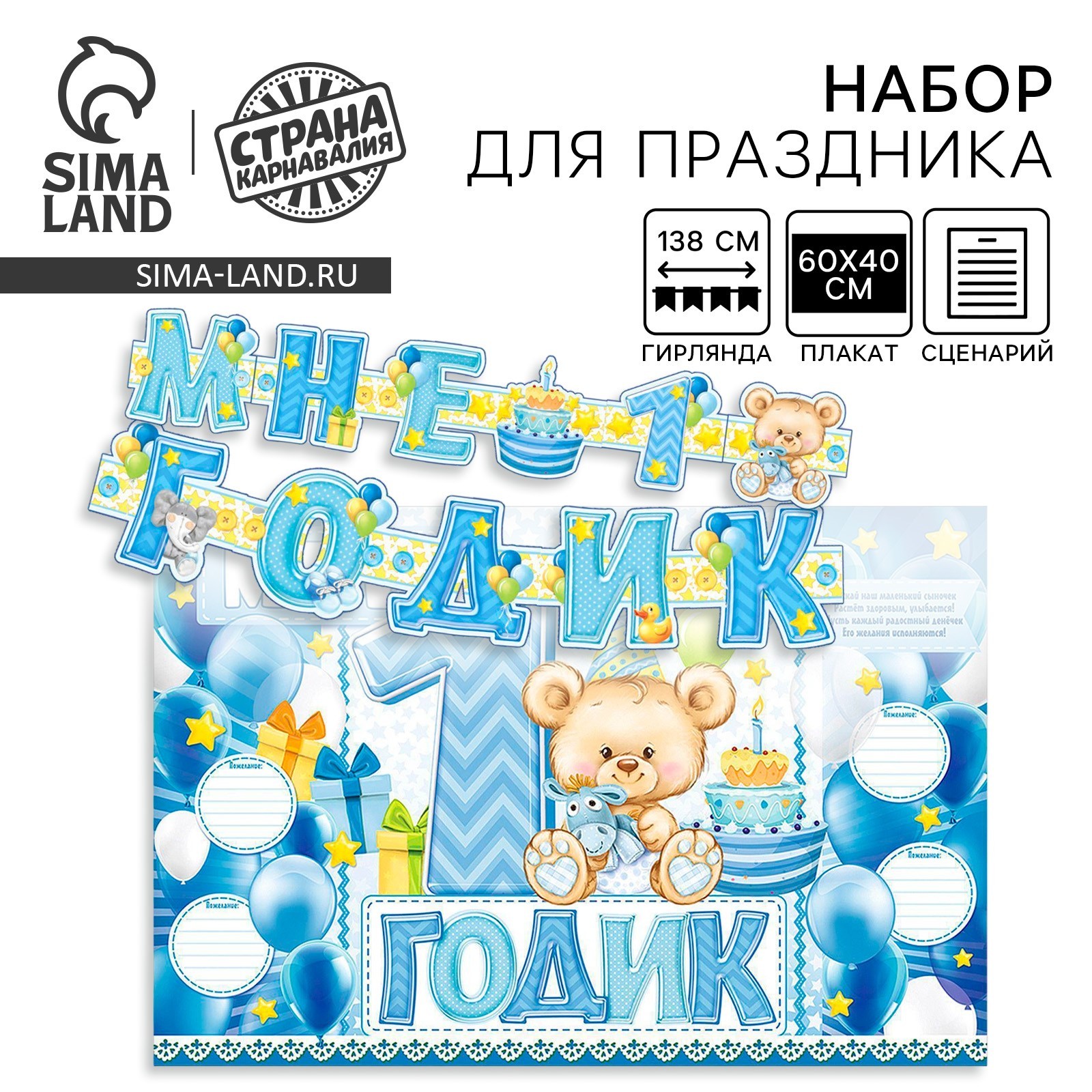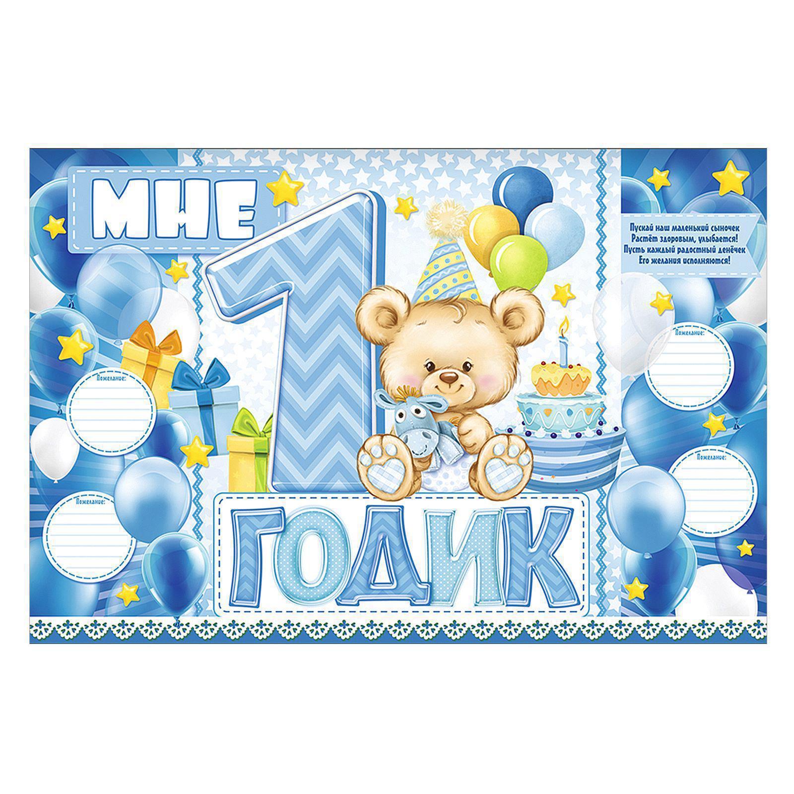 Гирлянда, плакат и сценарий для проведения праздника «мне 1 годик», 250 г/м