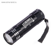 Текстильный ремешок, за который фонарик можно прикрепить к поясу. Компактный размер. Металлический корпус. Количество диодов — 9. Элементы питания — 3 батареи типа AAA. Фонарик упакован в чехол с оригинальным рисунком.