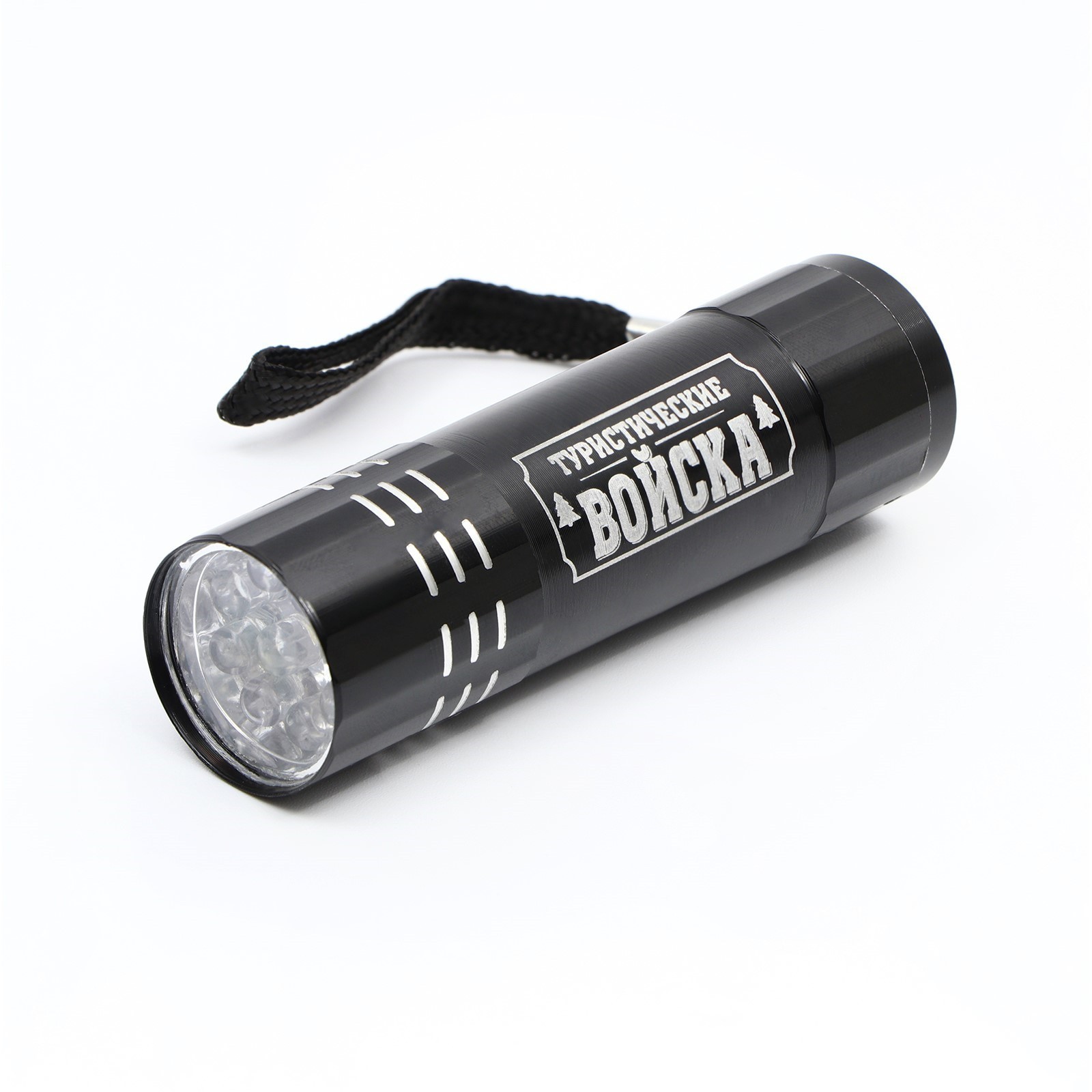 Фонарь ручной в чехле «туристические войска». Изделие — верный спутник на природе и на даче, во время уличных работ или дома в случае отключения света. Особенности Текстильный ремешок, за который фонарик можно прикрепить к поясу. Компактный размер. Металлический корпус. Количество диодов — 9. Элементы питания — 3 батареи типа AAA. Фонарик упакован в чехол с оригинальным рисунком. Цвет: Зелёный Дальность освещения, м: 50 Световой поток, лм: 200 Материал корпуса: Нержавеющая сталь Типоразмер батареек: AAA (LR03) Влагозащита: Нет Тип питания: От батарейки  развернуть описание ▼
