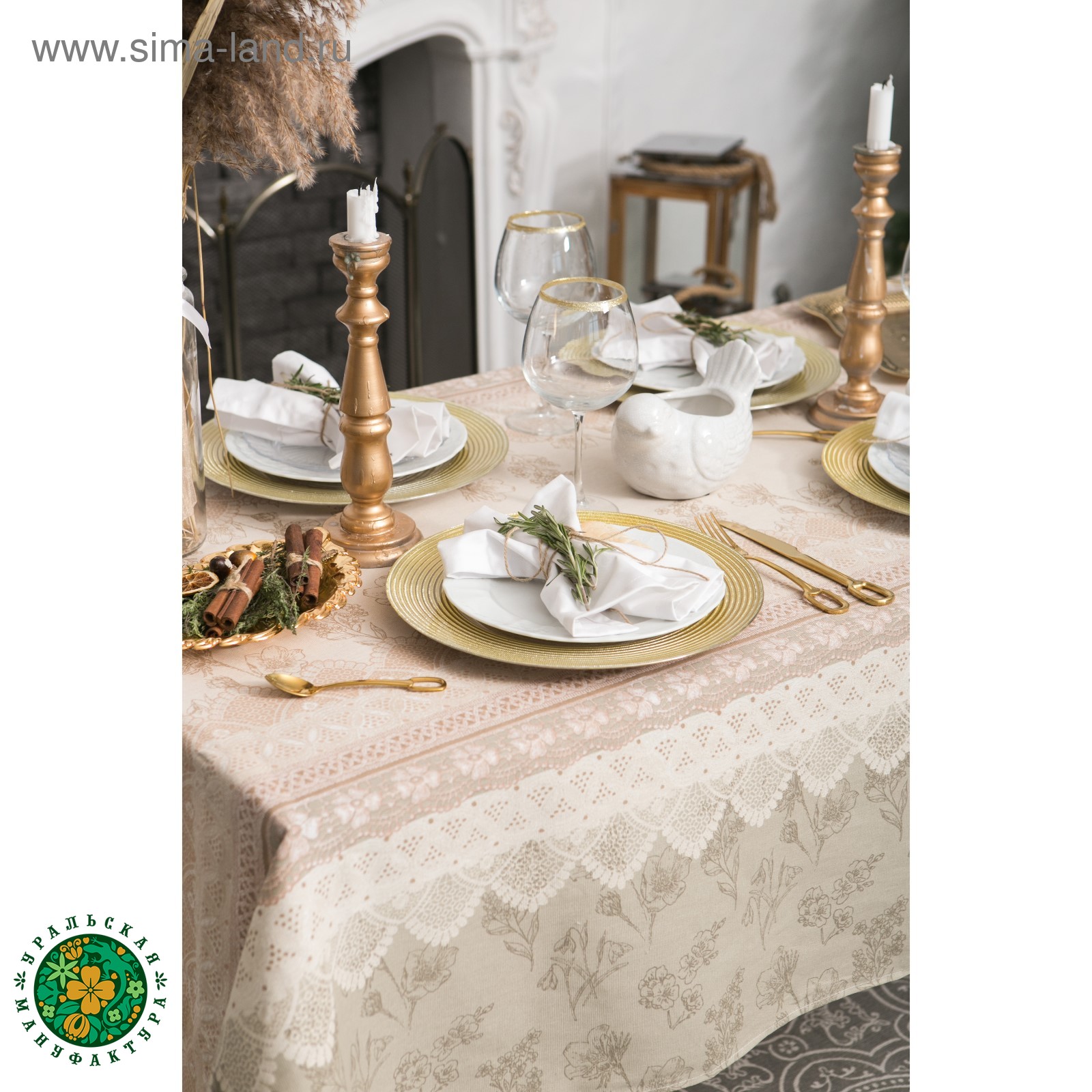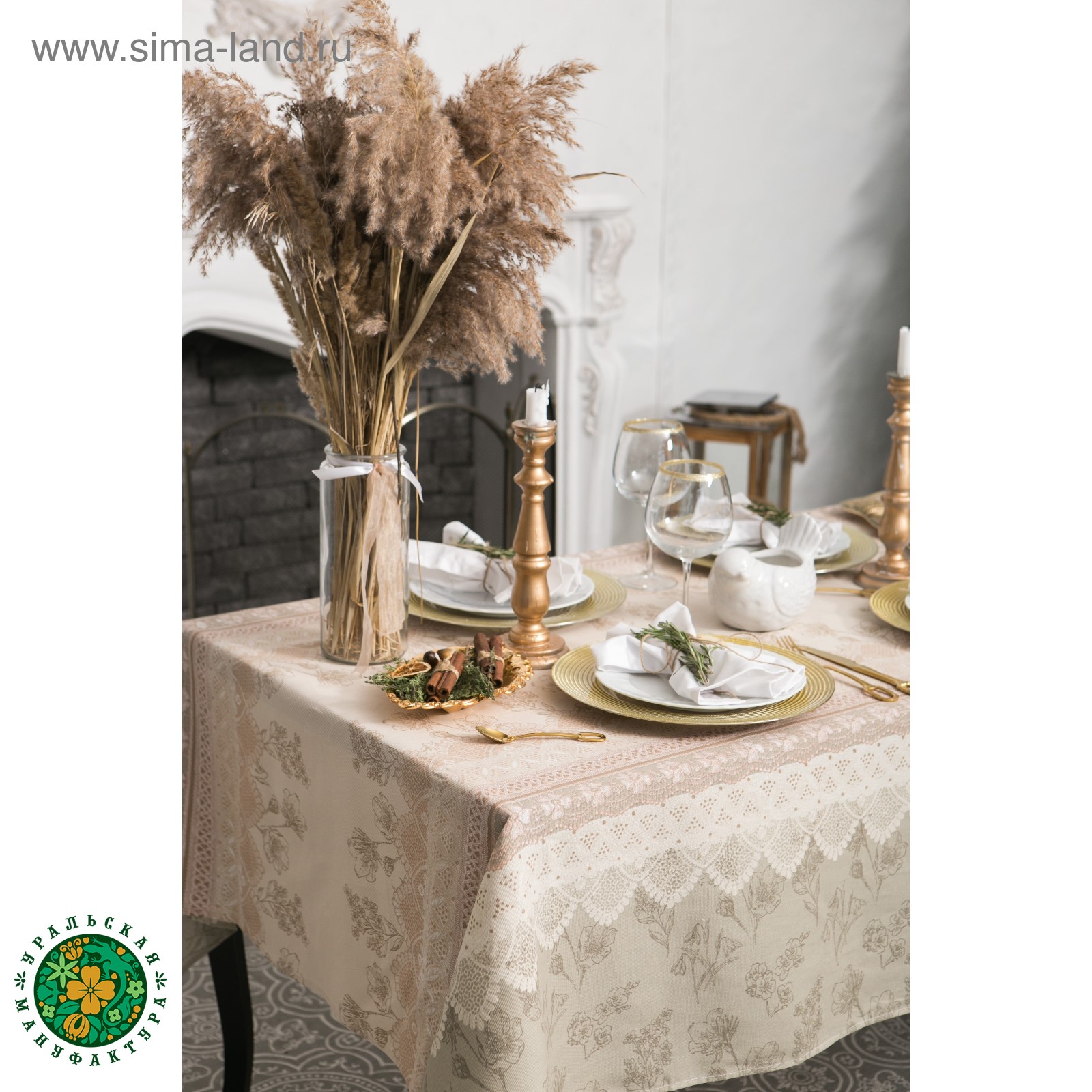 Скатерть "доляна" кружево 110х146 см, 100% хлопок, рогожка, 164 г/м2