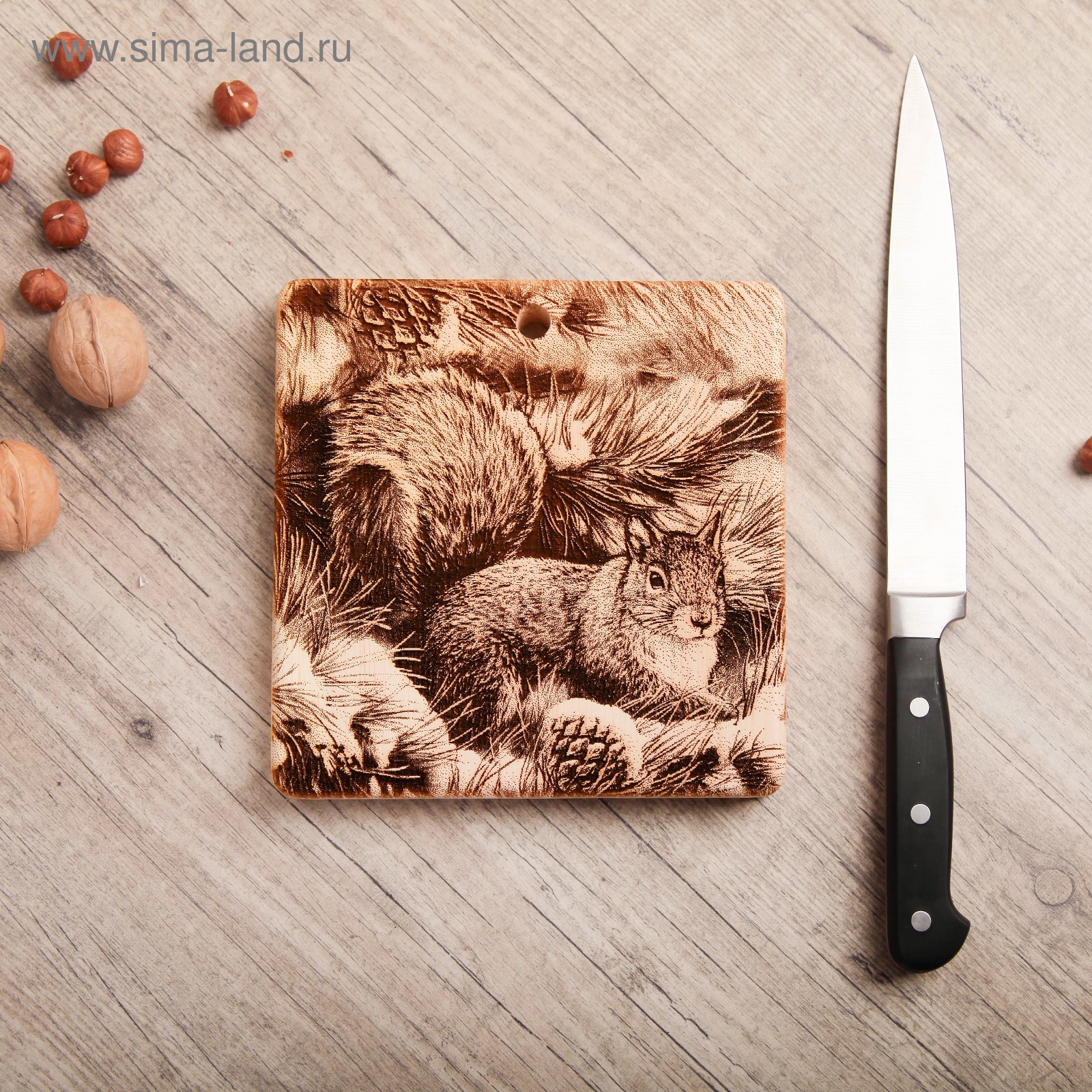 Доска из массива кедра «белочка на ветке», квадратная, 18 X 18 см