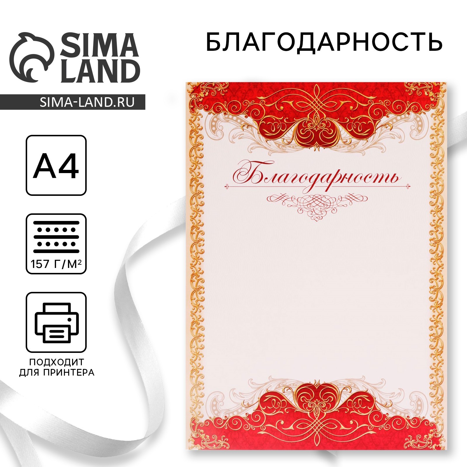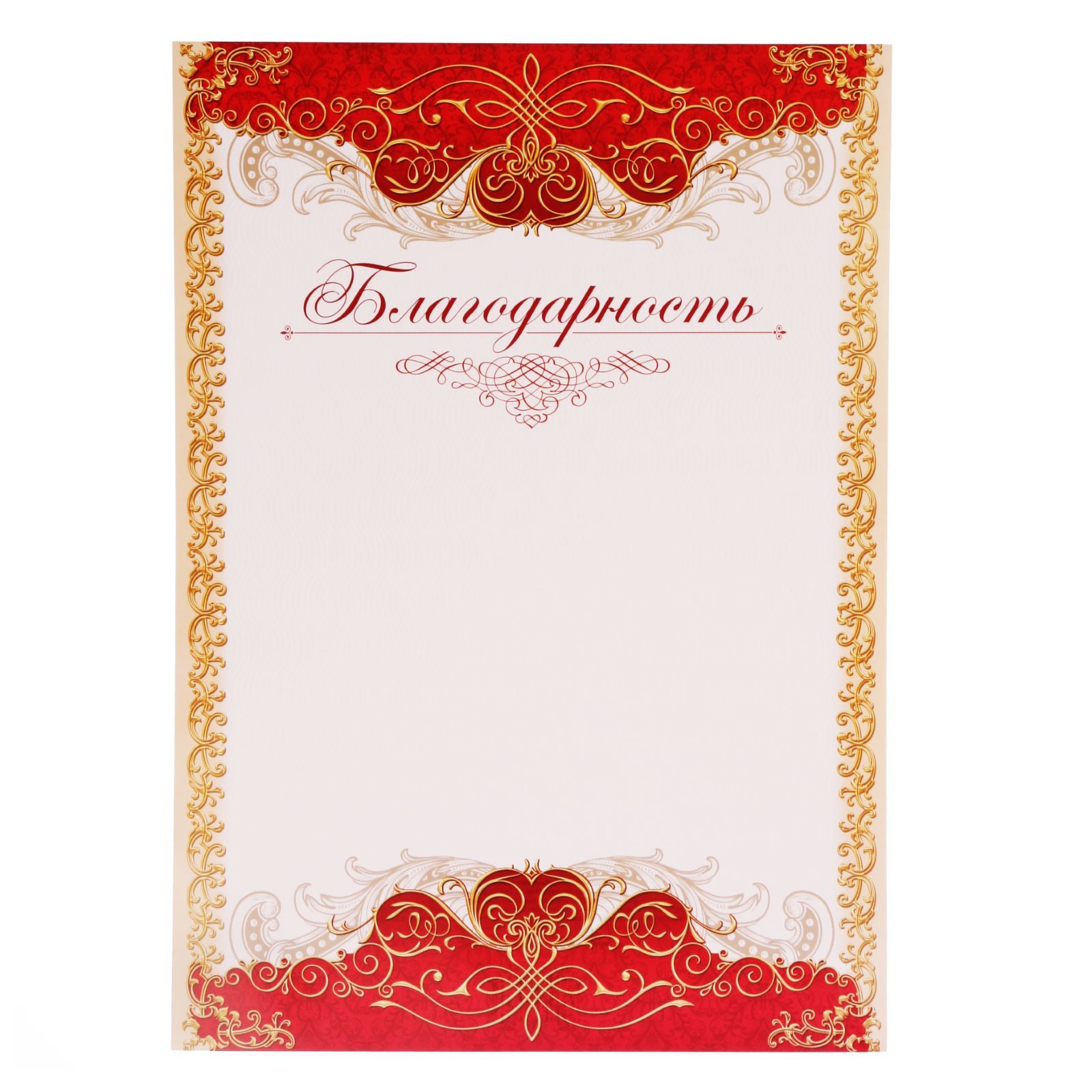 Благодарность а4 классическая, красная, 157 г/м . Устраиваете ли вы соревнования, эстафеты или просто проводите детский праздник, непременно подготовьте наградную грамоту за участие. Диплом имеет авторский дизайн и яркий внешний вид. Вы сможете указать на нём имя адресата вручную или вставить его в печатное устройство и сделать надпись с помощью компьютера. Центр бланка пустой, поэтому он подойдёт для любого мероприятия. Грамота изготовлена из мелованного картона формата А4. Она станет прекрасной памятной благодарностью и займёт почётное место на стене! Цвет:Разноцветный|Для кого:Унисекс|Формат:А4|Плотность, г/м :157|Отделка:Цветная печать|Тематика праздника:Профессиональные праздники|Тематика праздника:Универсальная тематика|Адресат:Без адресата|Материал:Мелованная бумага|Наличие символики РФ:Нет|Особенность:Стандартные|Подходит для принтера:Да|Страна:Россия  развернуть описание ▼