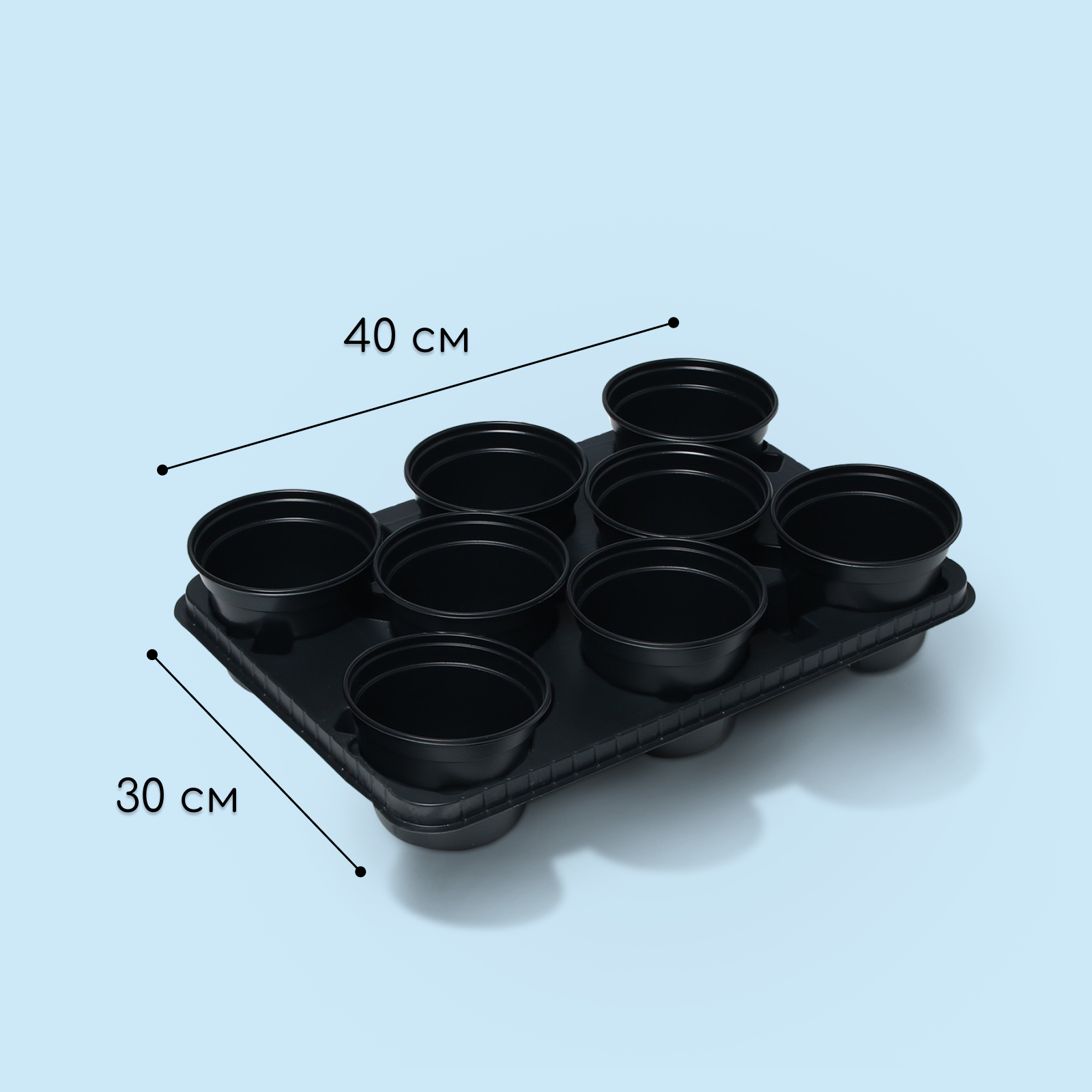 Набор для рассады: стаканы по 500 мл (8 шт.), поддон 40 20 см, чёрный, Greengo
