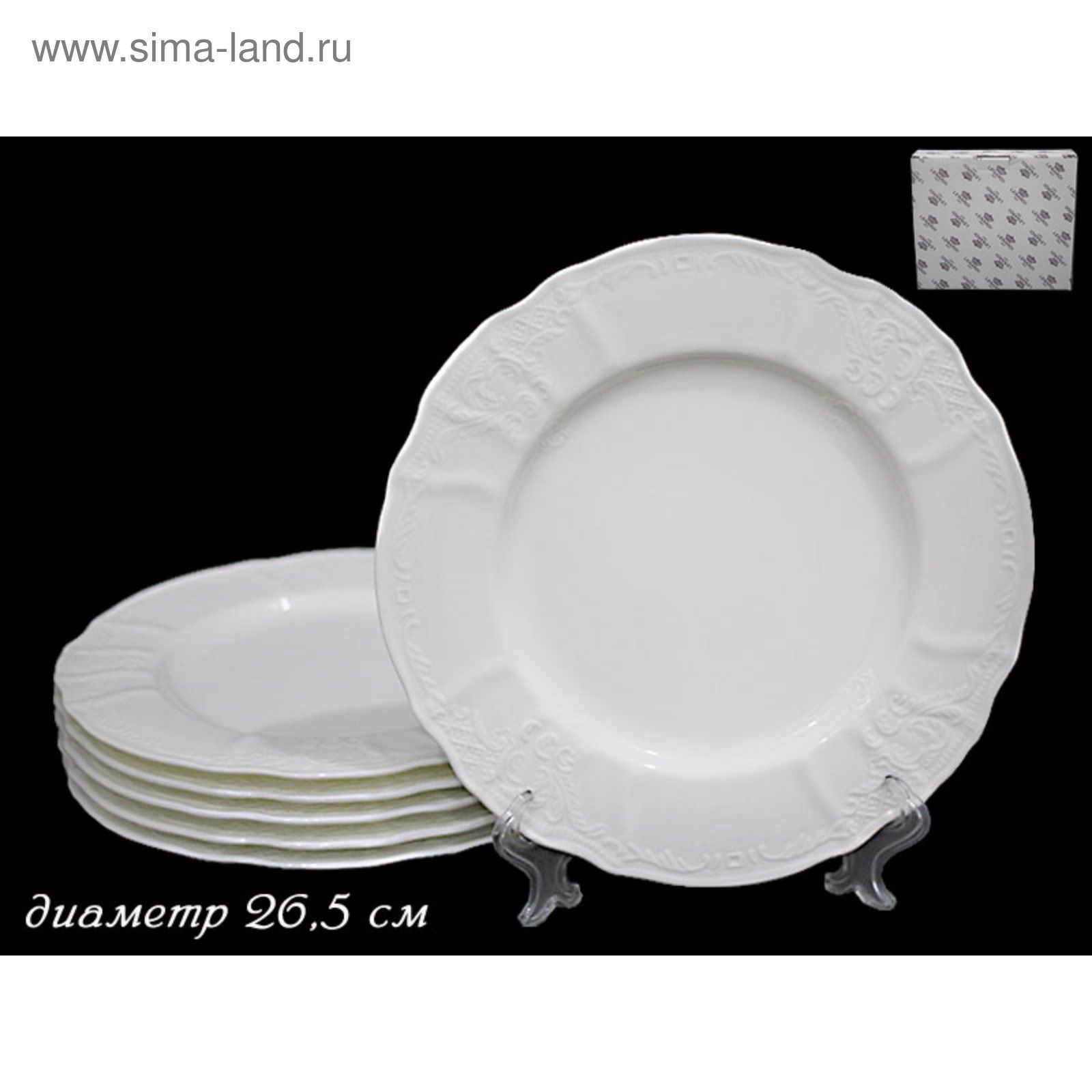 Набор тарелок lenardi maria, d=26.5 см, 6 шт. Изделие может иметь следующие несущественные дефекты: незначительный скол краски;прерывание и наплыв рисунка;наличие полосы на рисунке;потёртости и наплыв золотой краски на внутренней стороне;небольшие потёртости и царапины на глазури;засорения под глазурью;плотные вздутия глазури на внутренней поверхности;натёк глазури;наличие мушек (чёрных точек);неровность внутреннего отверстия;отклеивание страз;потёртость упаковки в уголках. Данные недостатки не влияют на свойства изделия при использовании. Цвет: Белый Форма: Круглая Диаметр, см: 26.5 В наборе, шт.: 6 Количество персон: 6 Оформление: Однотонное Тематика: Однотонная Крышка: Нет Материал: Фарфор Вид тарелки: Плоская Можно мыть в посудомоечной машине: Да Можно использовать в СВЧ-печи: Да Текстура: С рельефом Особенности: Выдавленный дизайн Матовая поверхность: Да Для горячего: Да Серия: Maria Серия: Lenardi Maria Запрет реализации по сегментам: 00000000485 Форма: Круг, шар, цилиндр  развернуть описание ▼