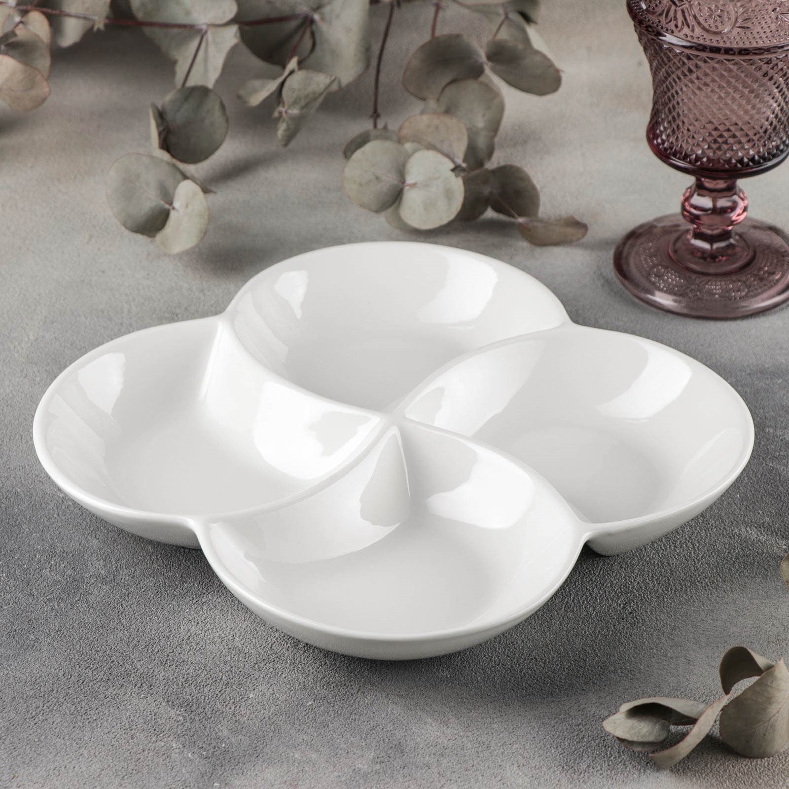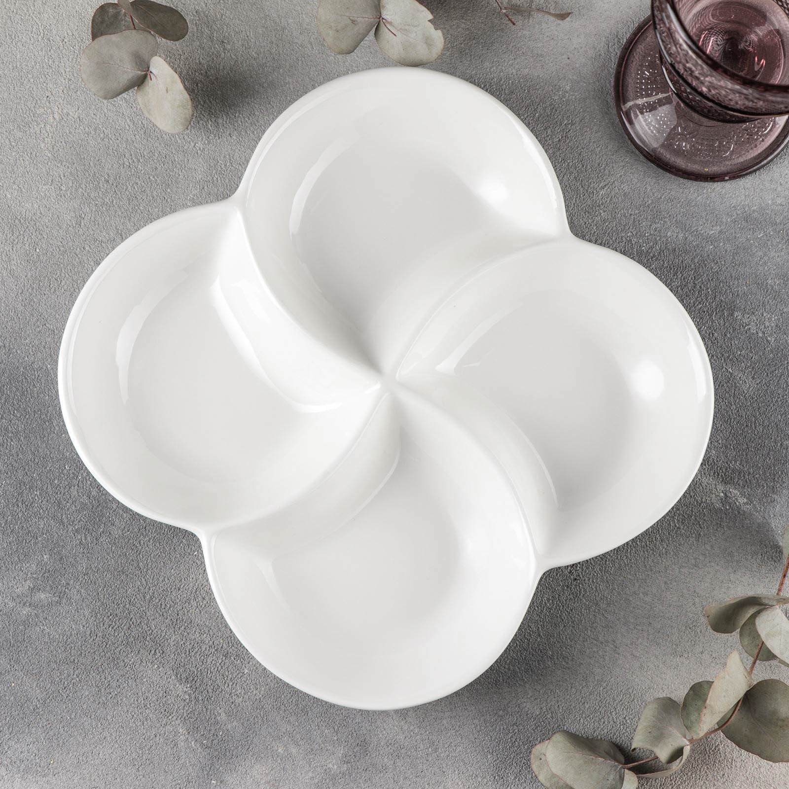 Менажница фарфоровая 4 ячейки Wilmax, 22x22 см, цвет белый