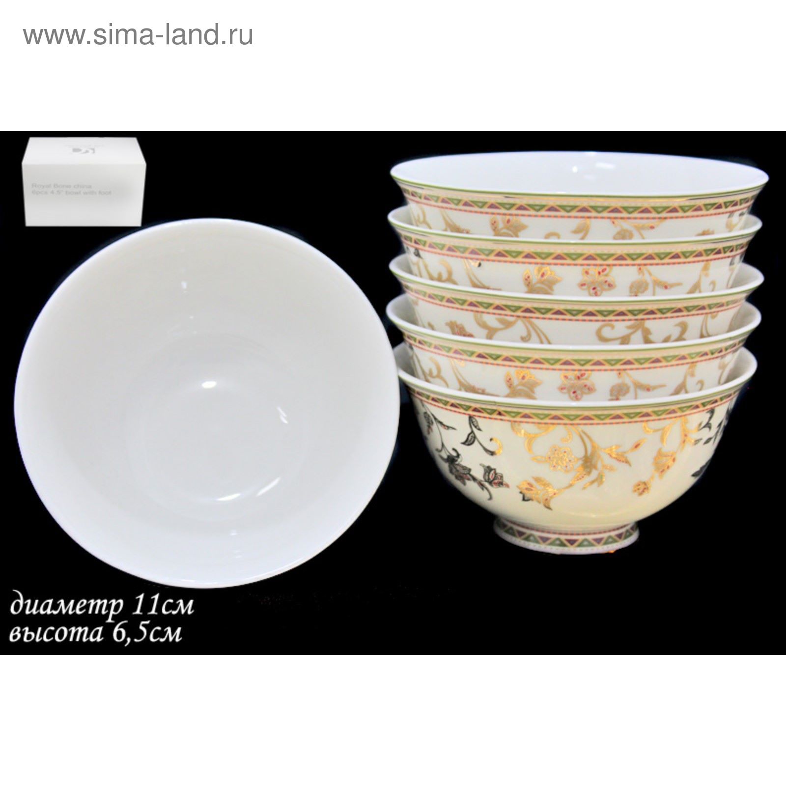 Набор салатников Lenardi «золотой цветок», D=11 см, 6 шт