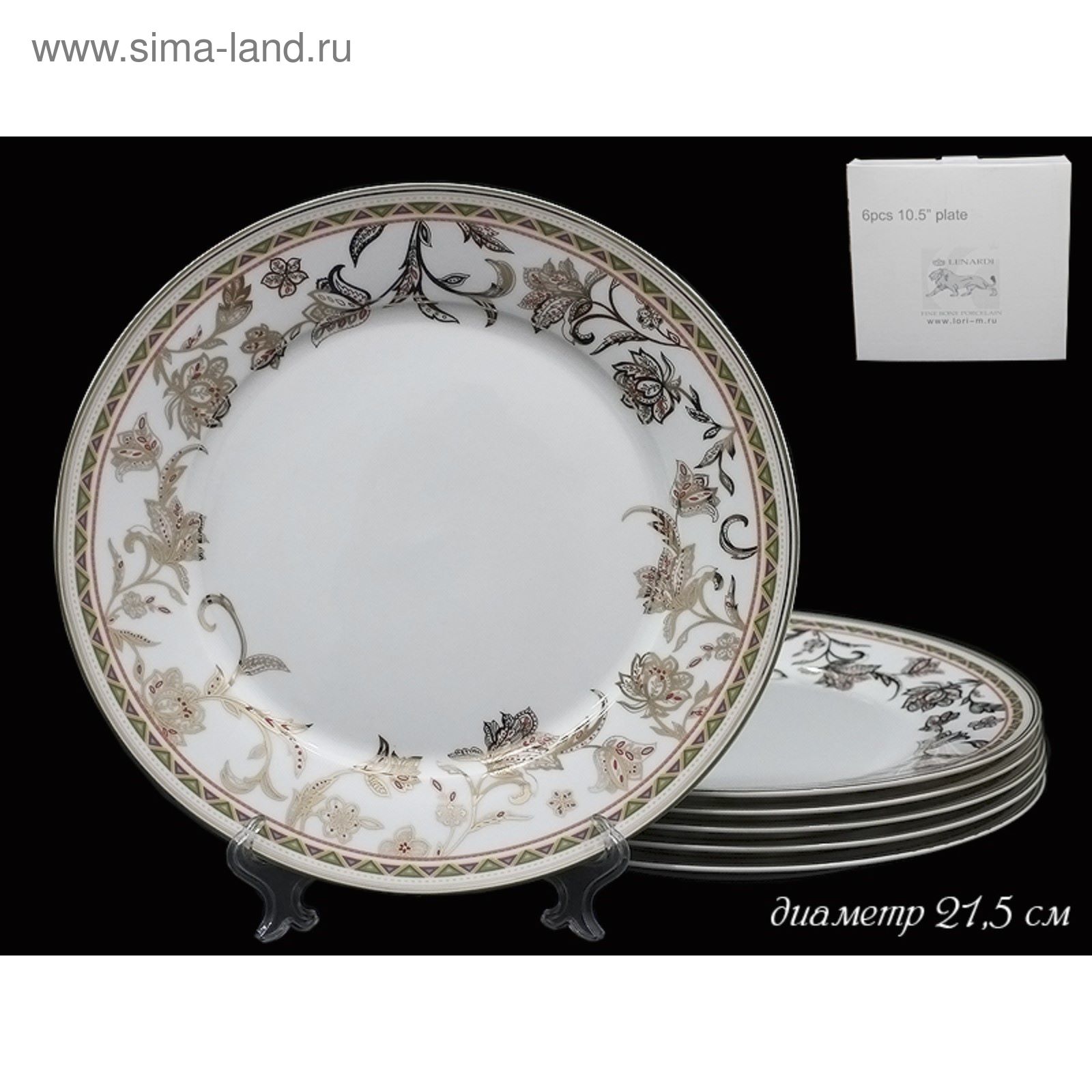 Набор тарелок Lenardi «золотой цветок», D=21.5 см, 6 шт