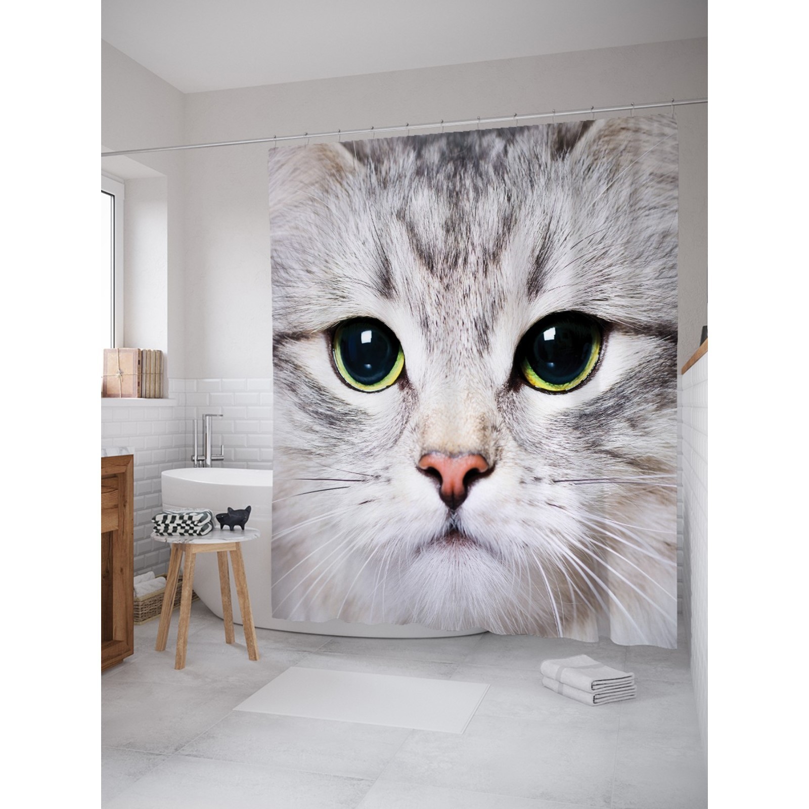 Фотоштора для ванной «суровый котик», сатен, размер 180х200 см
