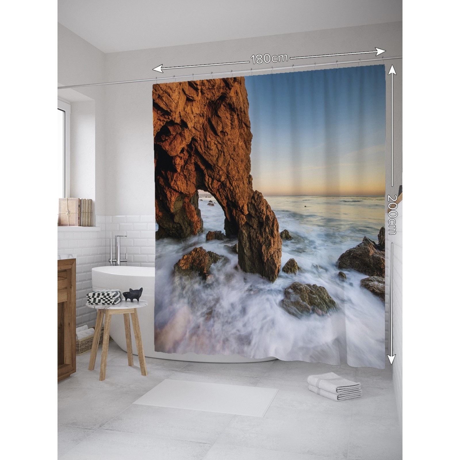 Фотоштора для ванной «туманные камни», сатен, размер 180х200 см