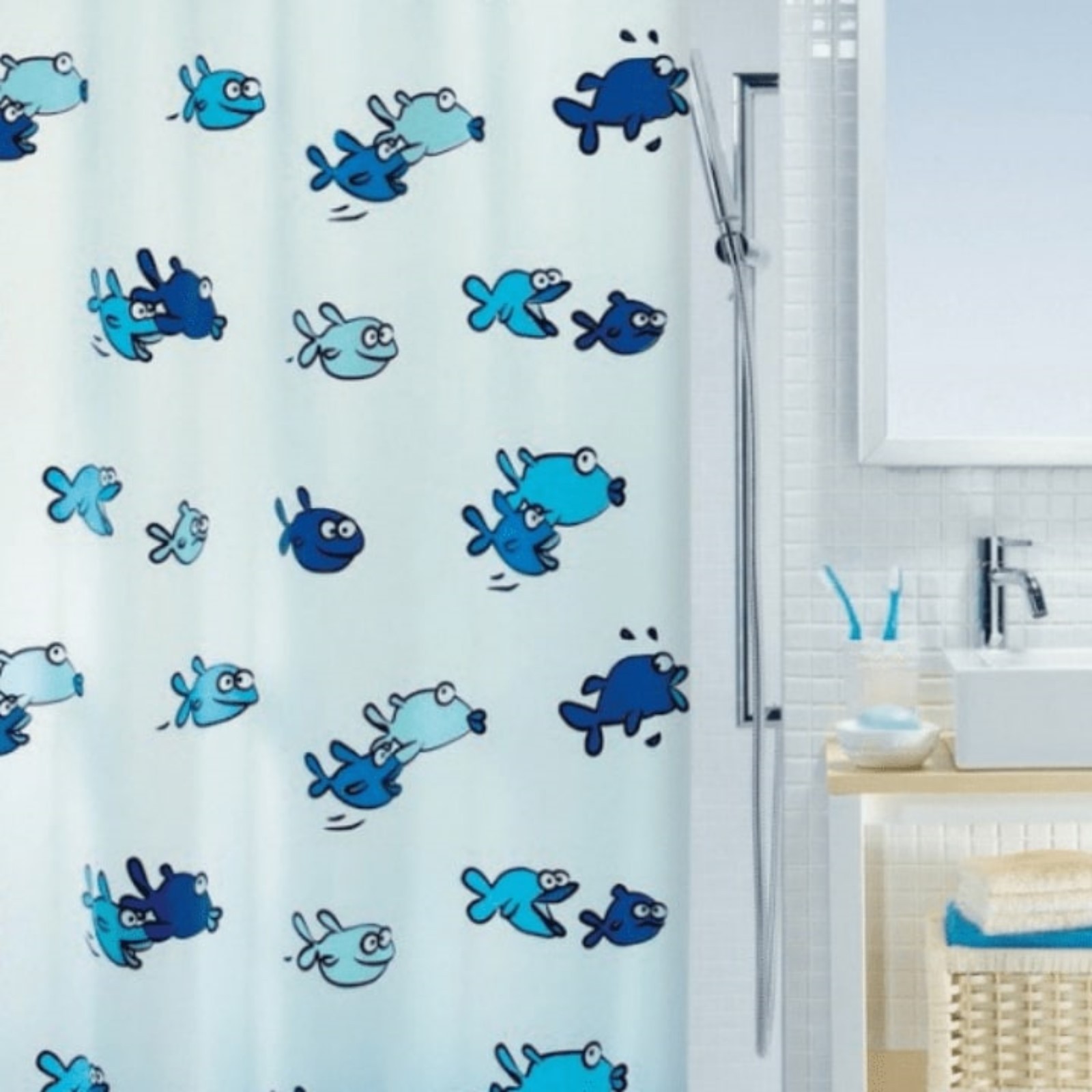 Штора для ванной комнаты Peva Hugo бело-синий цвет, 180 X 200 см