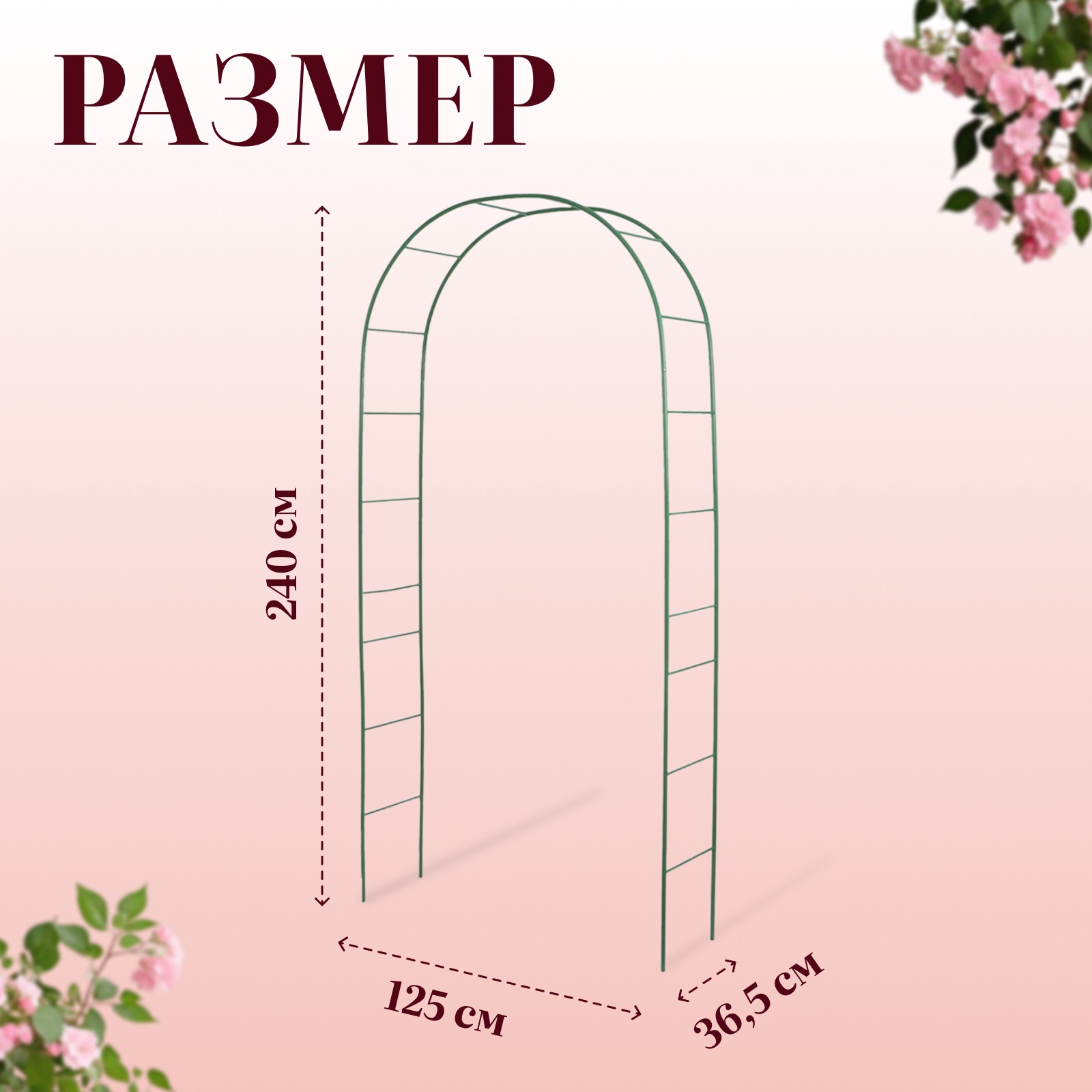 Арка садовая, 240 125 36.5 см, для вьющихся растений, металлическая, зелёная, Greengo