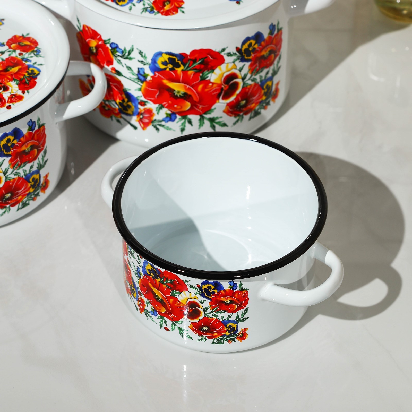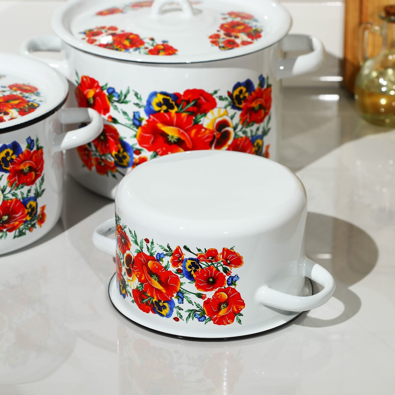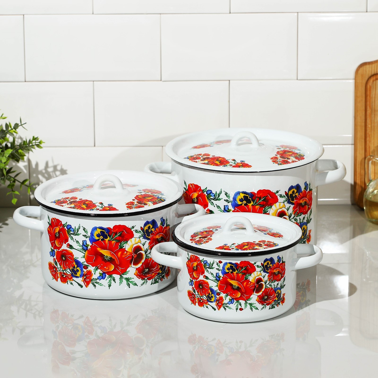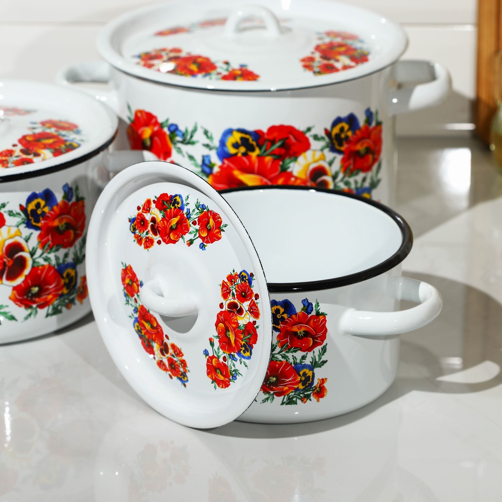 Набор кастрюль «маки. мечта», 3 предмета: 1,5 л, 2,9 л, 4,5 л, эмалированные крышки