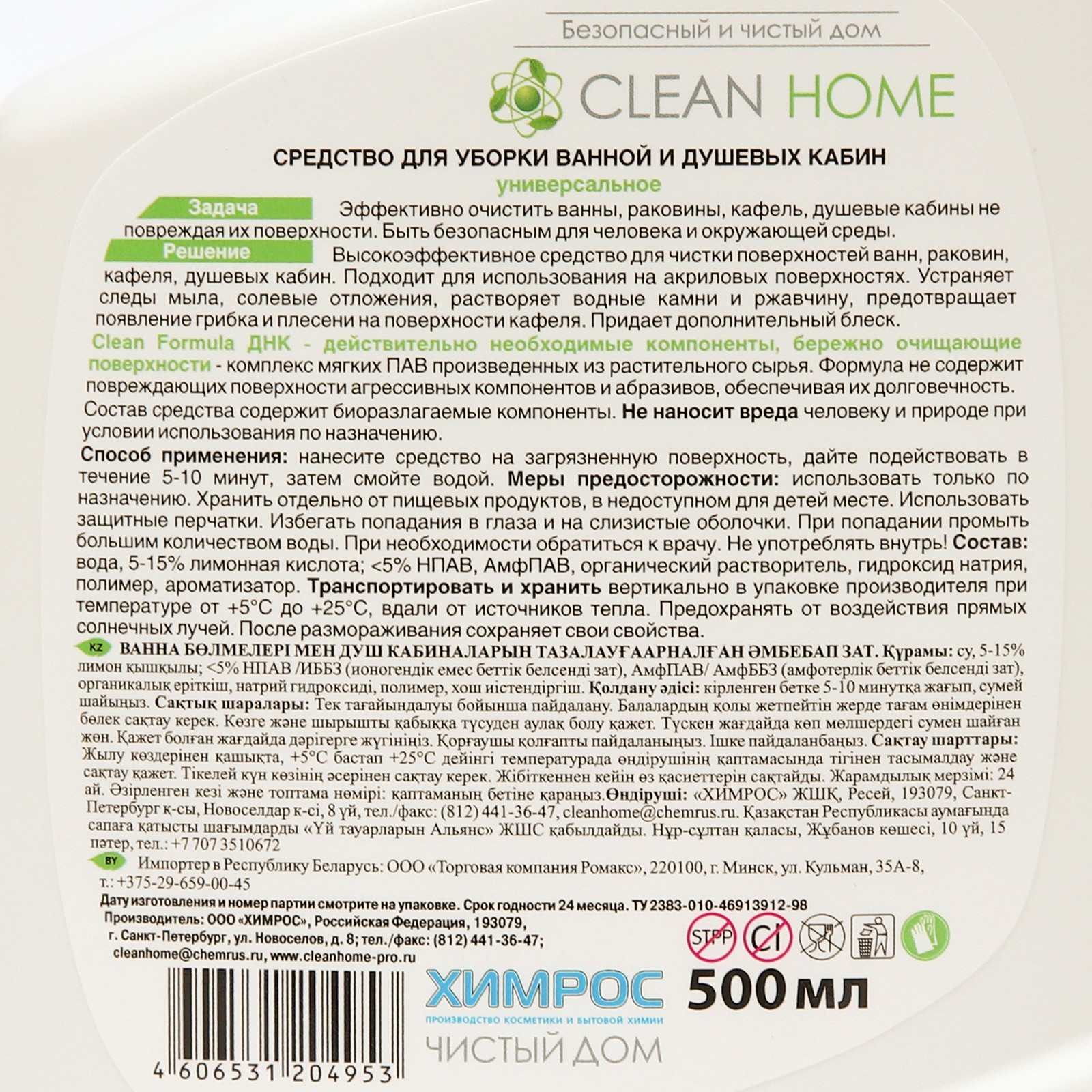 Средство для уборки ванной и душевых кабин Clean Home, 500 мл