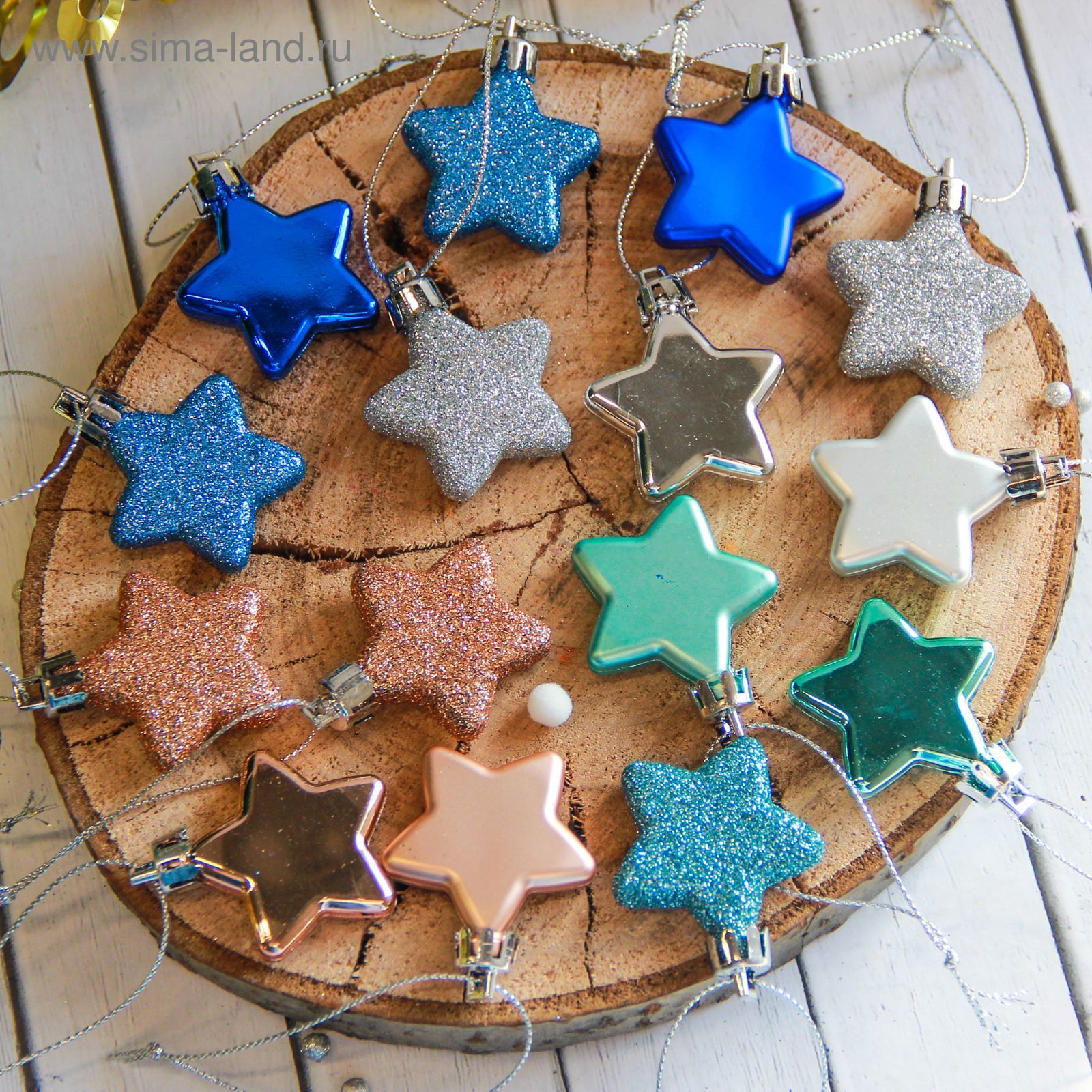 Ёлочные игрушки 15 шт. «зимнее волшебство. звёздочки ассорти» пластик, 3.5 см