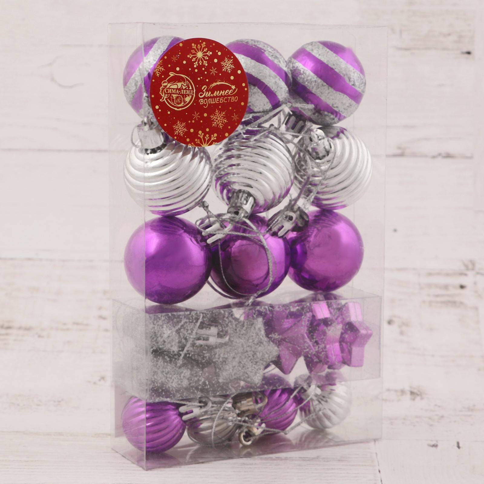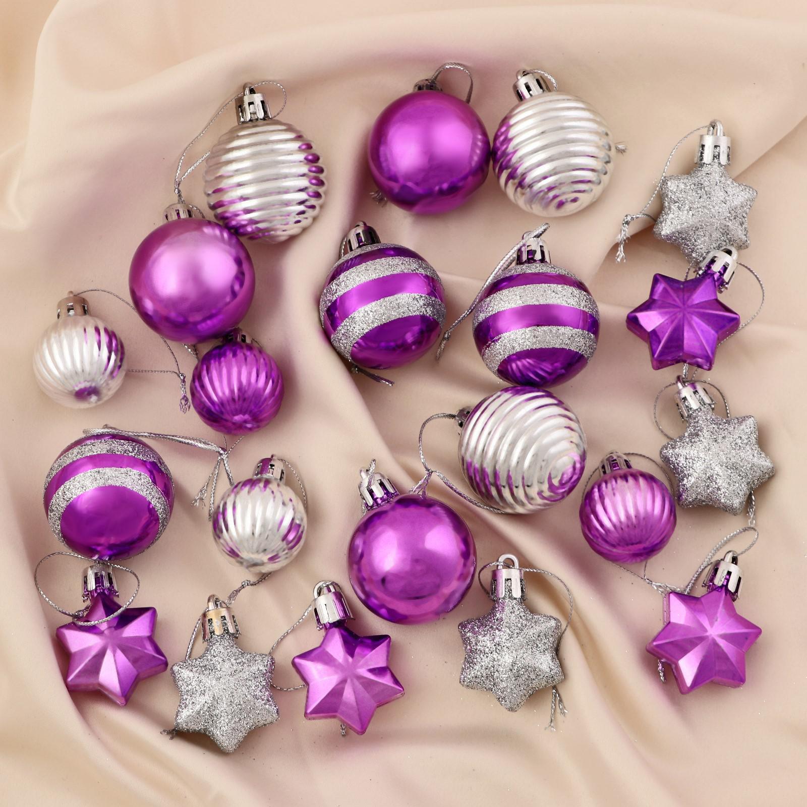 Ёлочные игрушки «серпантин», шары новогодние, набор 21 шт., серебристо-фиолетовый