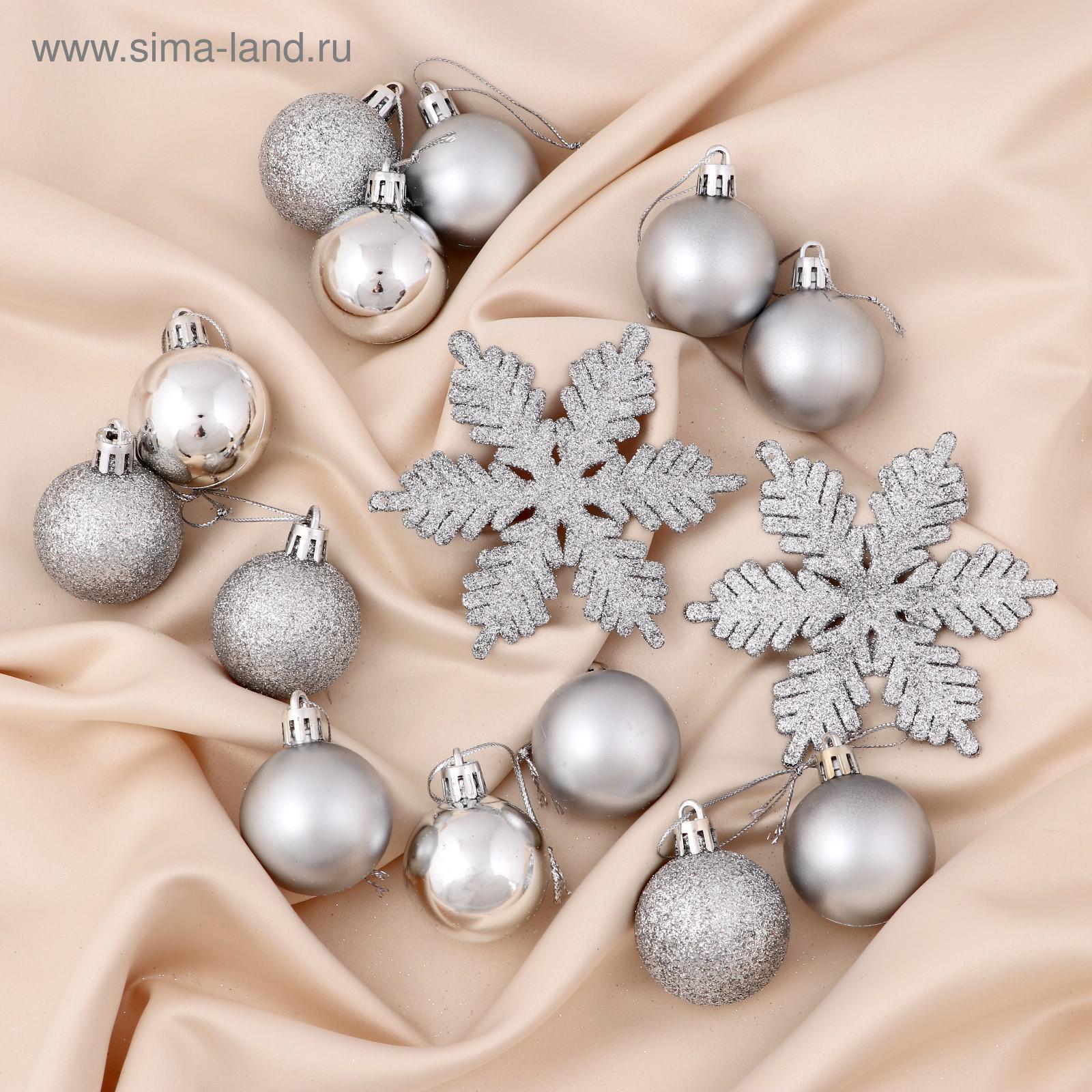 Ёлочные игрушки «снежинка», новогодние, набор 24 шт., серебро