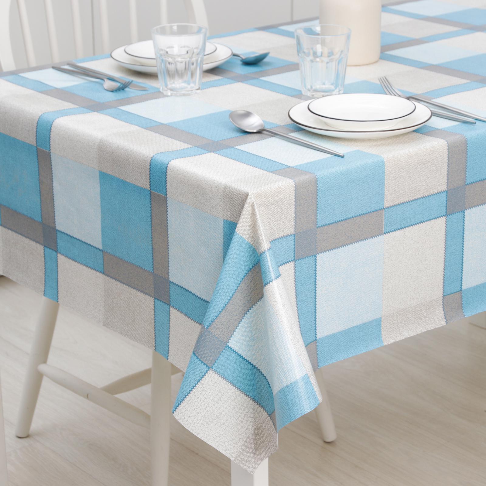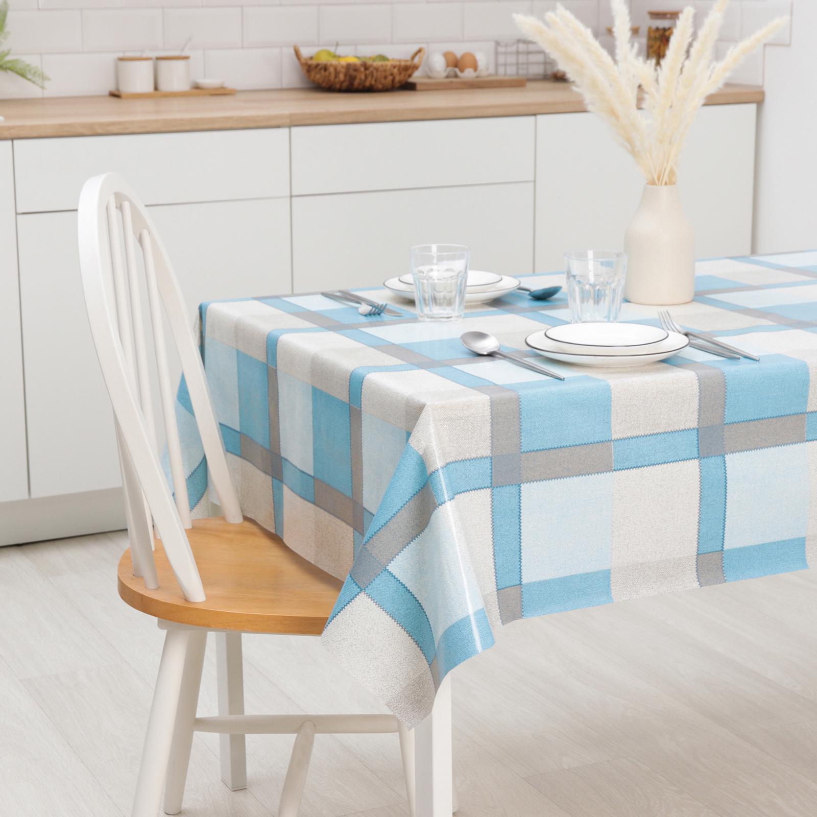 Клеёнка столовая на нетканой основе «клетка голубая», 1,30x25 м