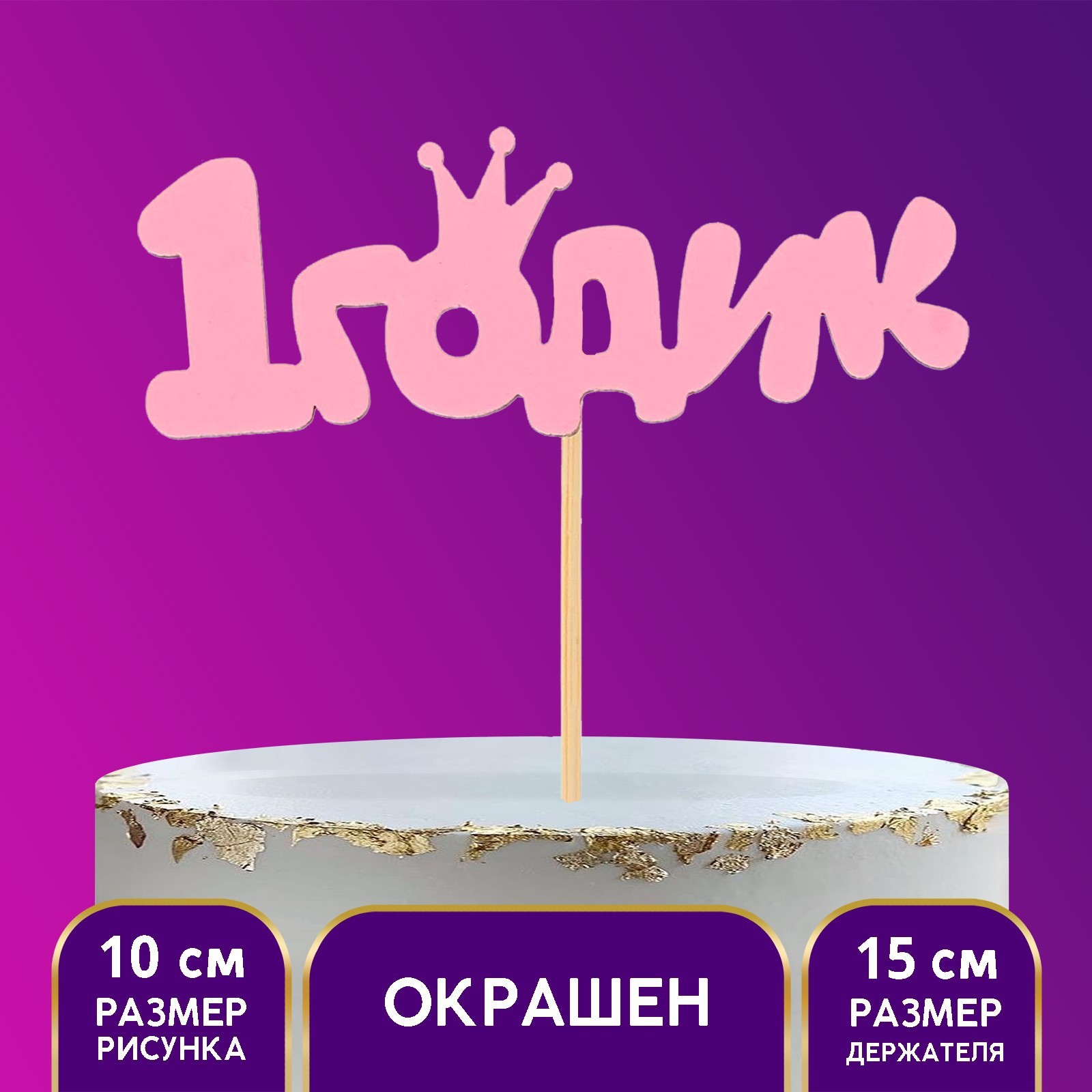 Топпер для торта деревянный «1 годик малышка»