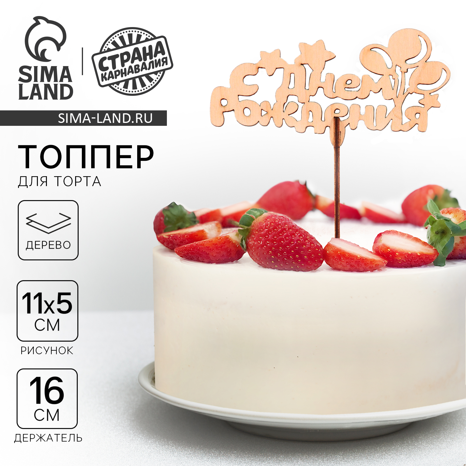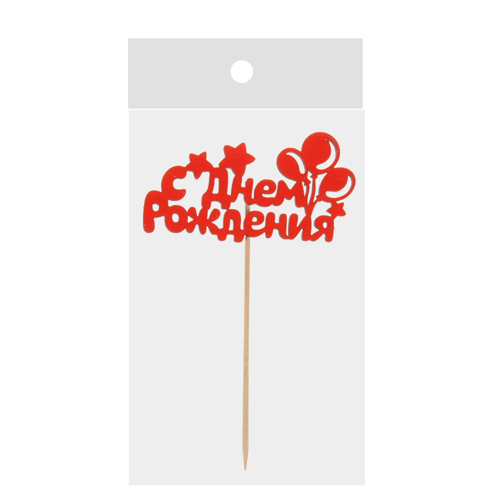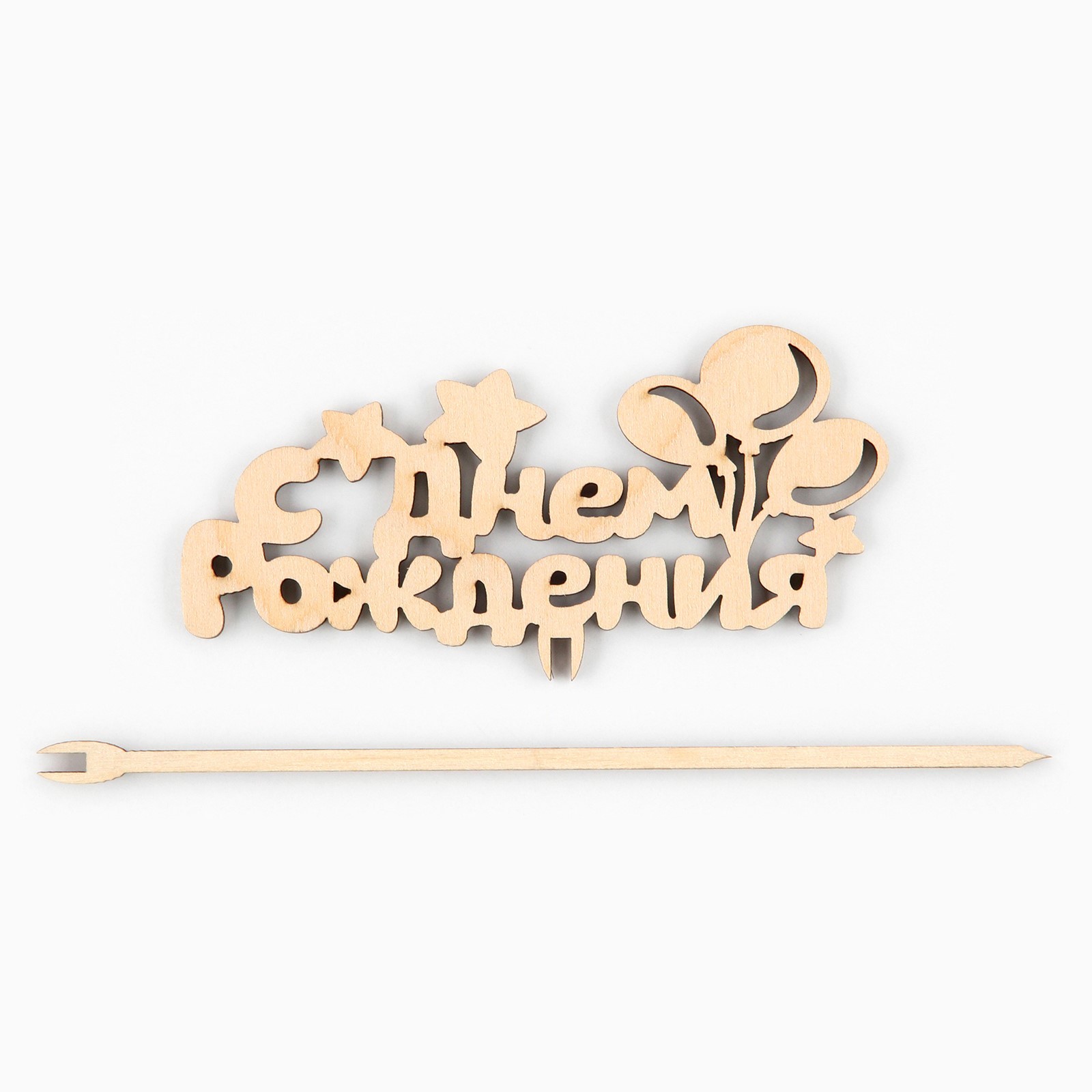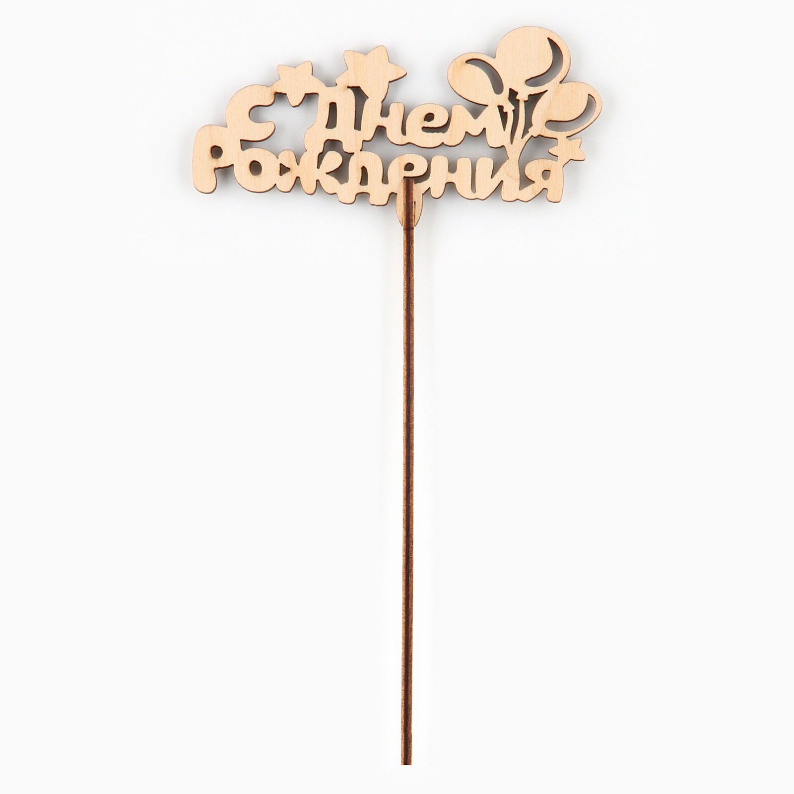 Топпер для торта деревянный «с днём рождения», шарики