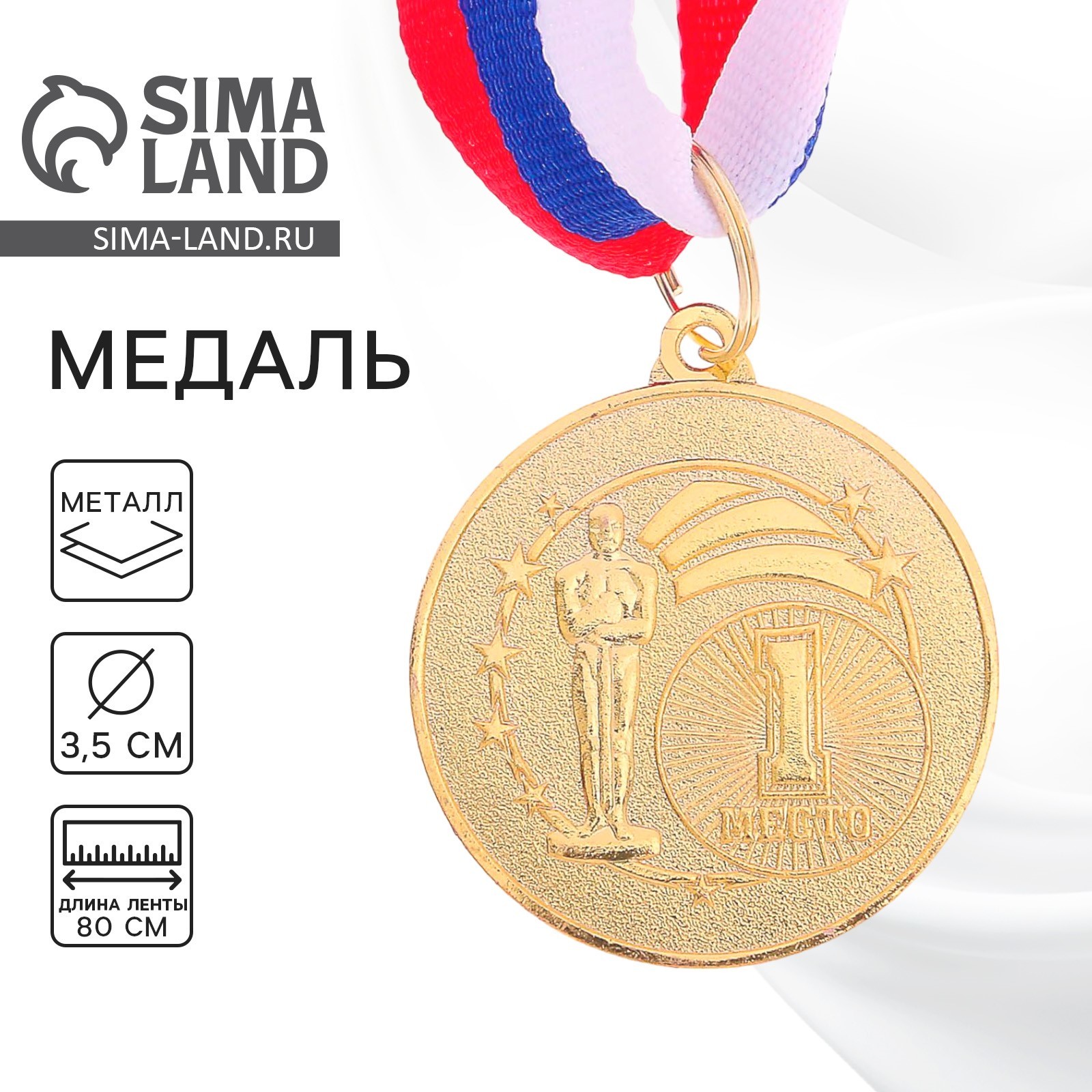 Медаль призовая 128 диам 3,5 см. 1 место. цвет зол. с лентой. Медаль — знак отличия, которым награждают самых достойных. Она вручается лишь тем, кто проявил настойчивость и волю к победе. Каждое достижение — это важное событие, которое должно остаться в памяти на долгие годы. Любое спортивное состязание, профессиональное или среди любителей, любое корпоративное мероприятие — отличный повод для того, чтобы отметить лучших из лучших. Цвет: Золотистый Вид упаковки: Пакет Материал: Металл Вид спорта: Универсальный Наличие символики РФ: Нет Наличие ленты: Да Призовое место: 1 место  развернуть описание ▼