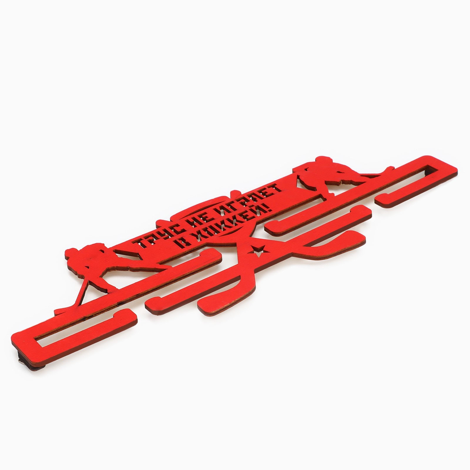 Медальница «хоккей», 29 х 9,5 см. Для того чтобы ваши награды не пылились на полке, повесьте их на фигурную медальницу. Она изготовлена из дерева, имеет тематический дизайн. Этот аксессуар будет достойно смотреться вкупе с наградами. Также медальница станет отличным подарком для спортсменов. Цвет: Красный Длина, см: 29 Вид дерева: Фанера Материал: Дерево Вид спорта: Хоккей Особенность медальницы: Одноцветные  развернуть описание ▼