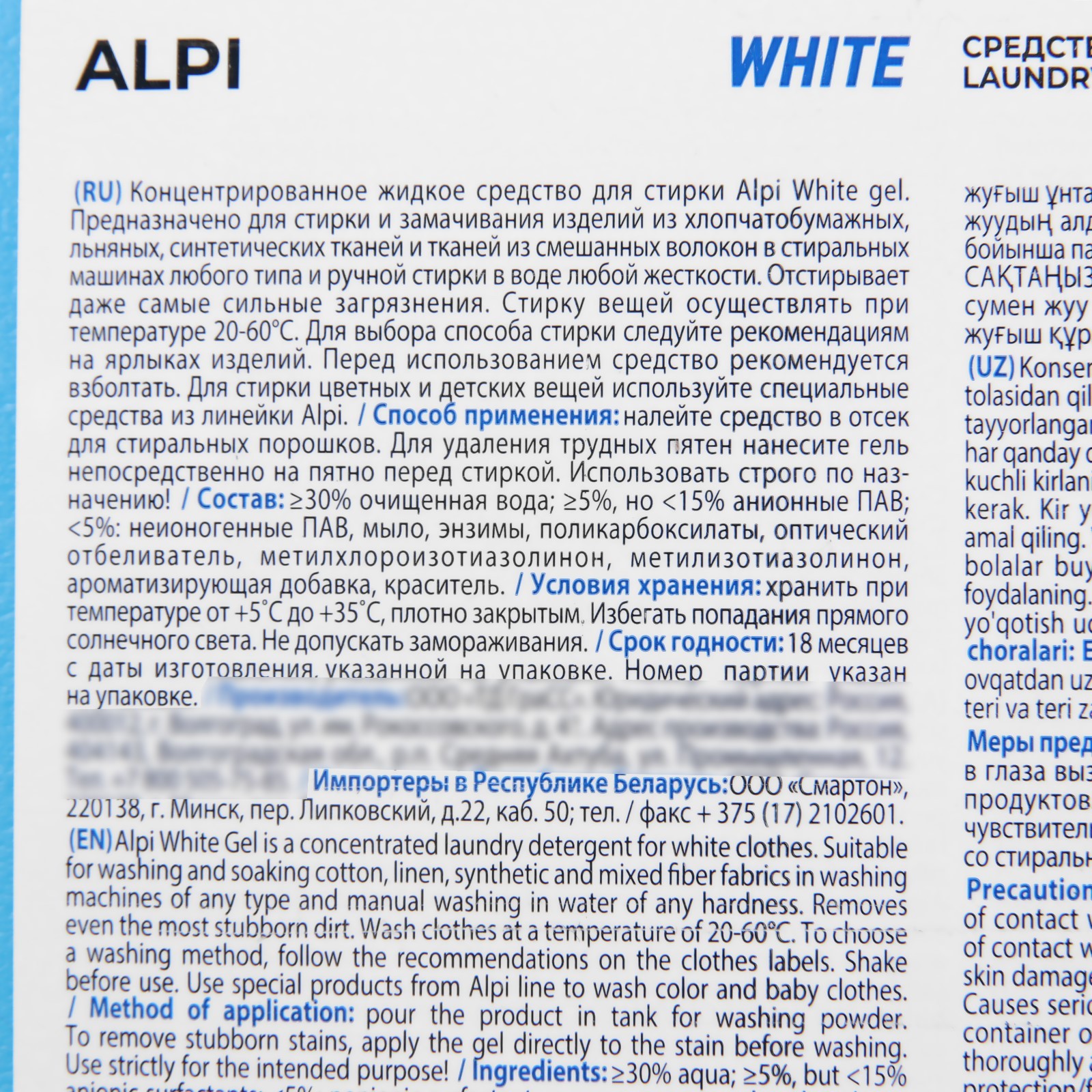 Гель-концентрат для стирки белых вещей Alpi, 5 кг