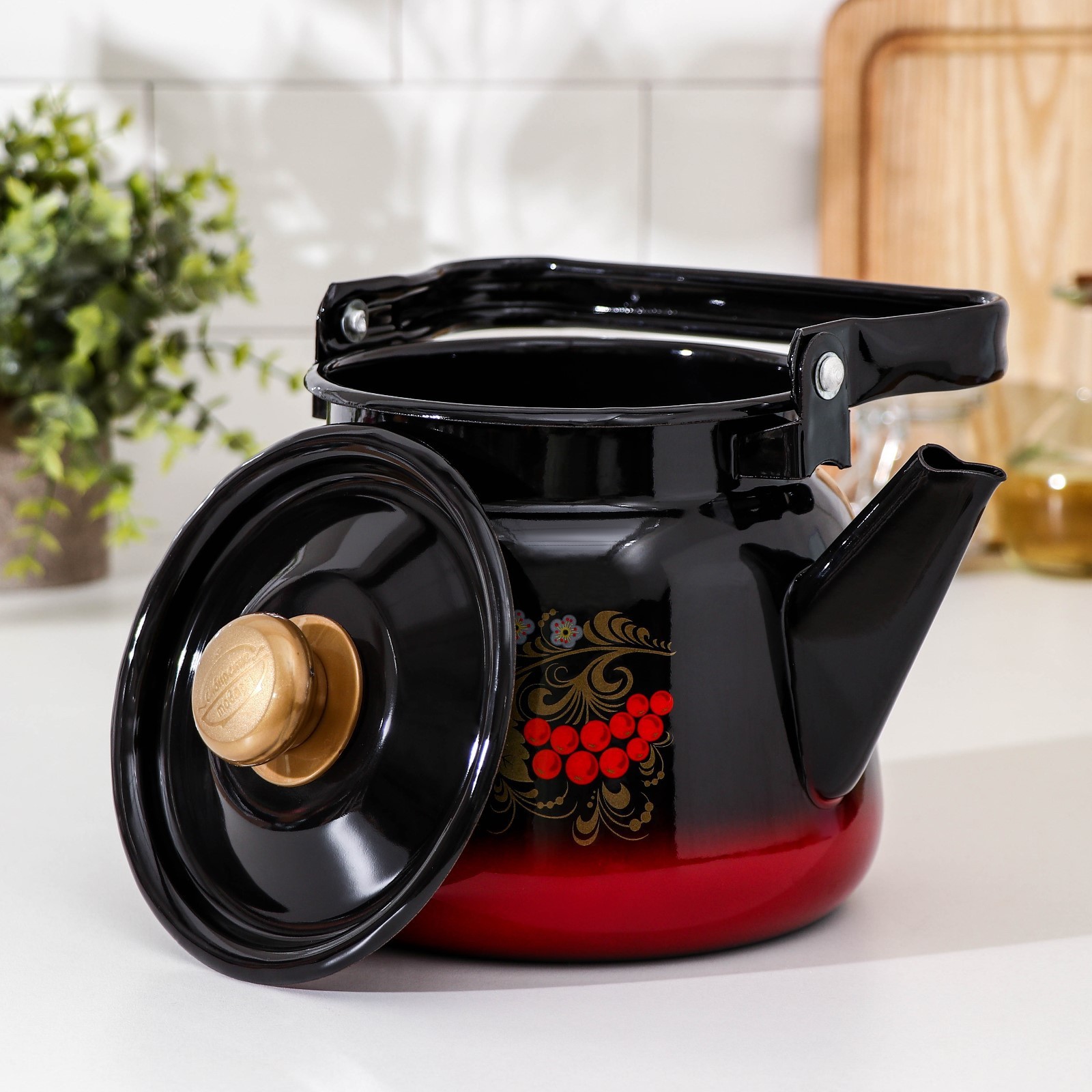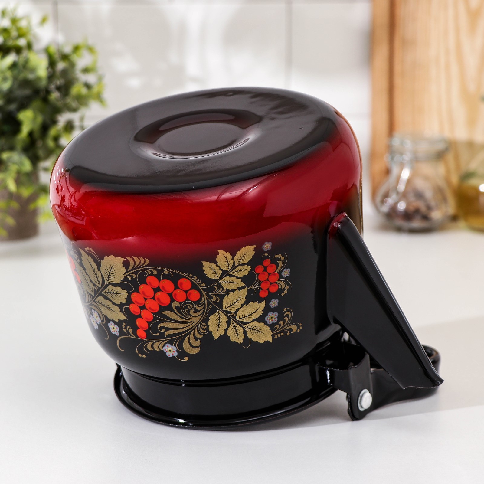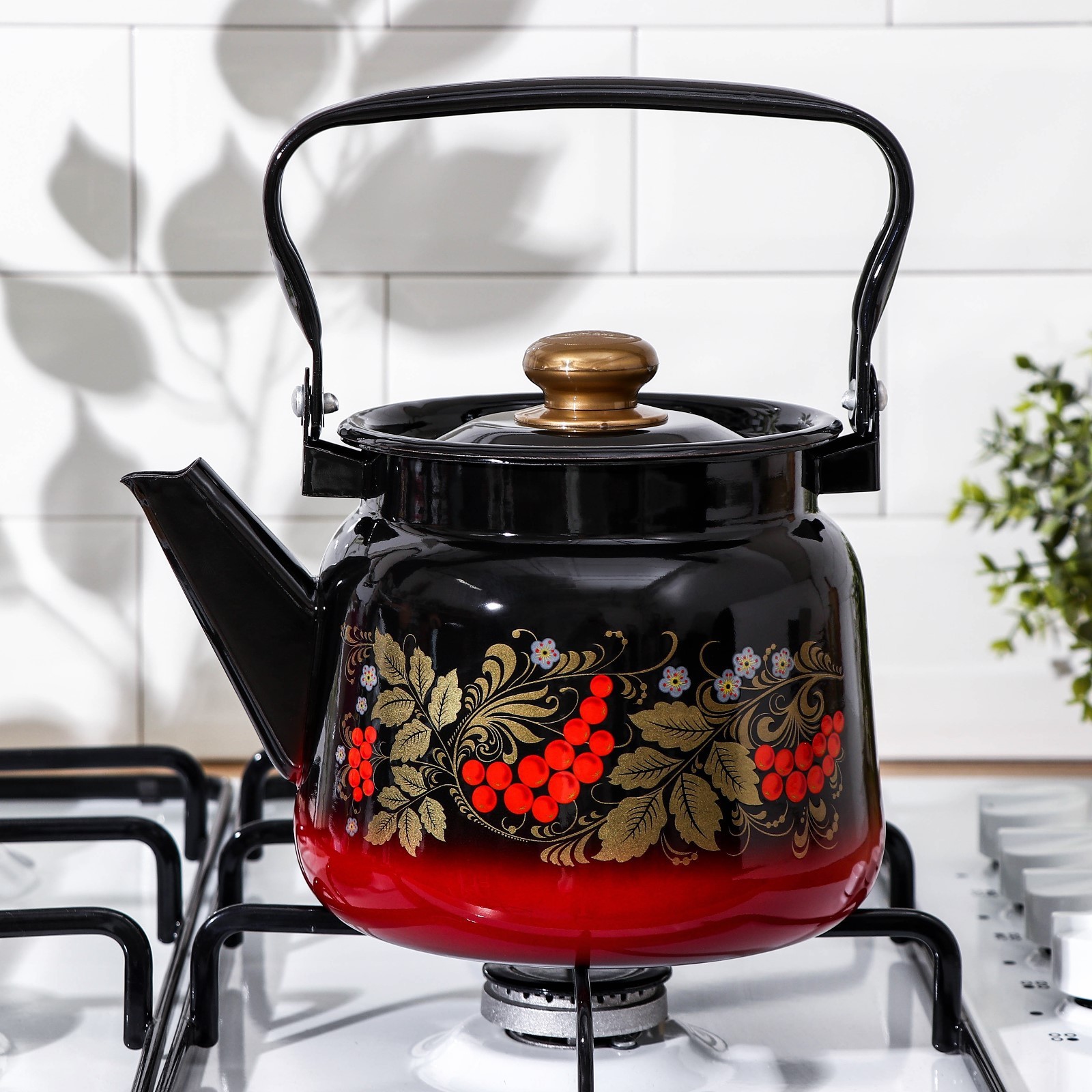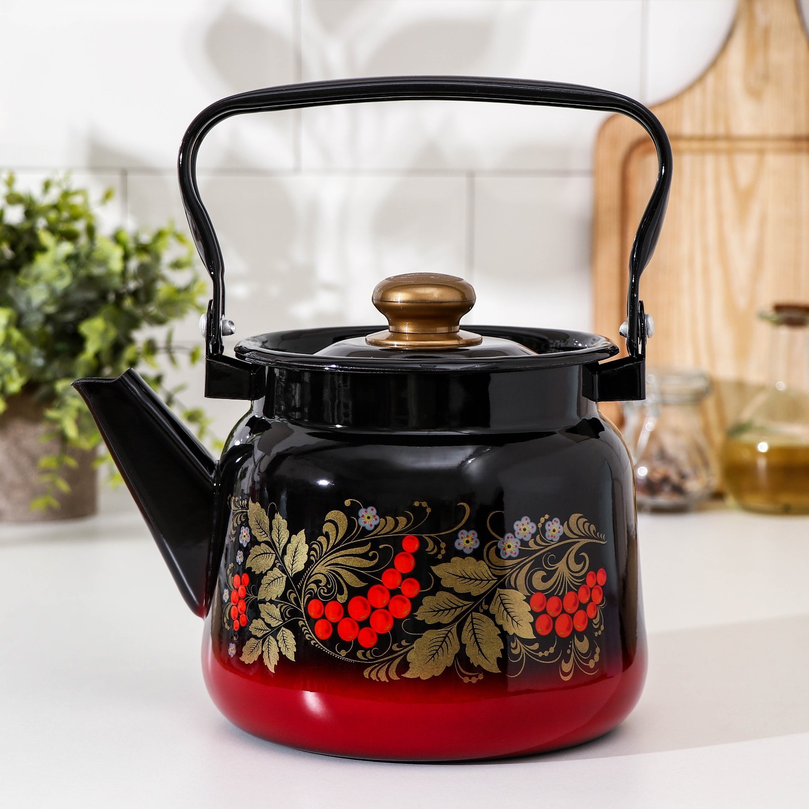 Чайник эмалированный «рябина», 2,3 л, цвет красно-чёрный, деколь микс