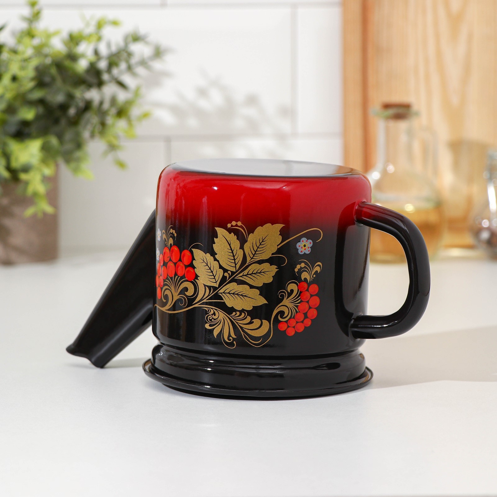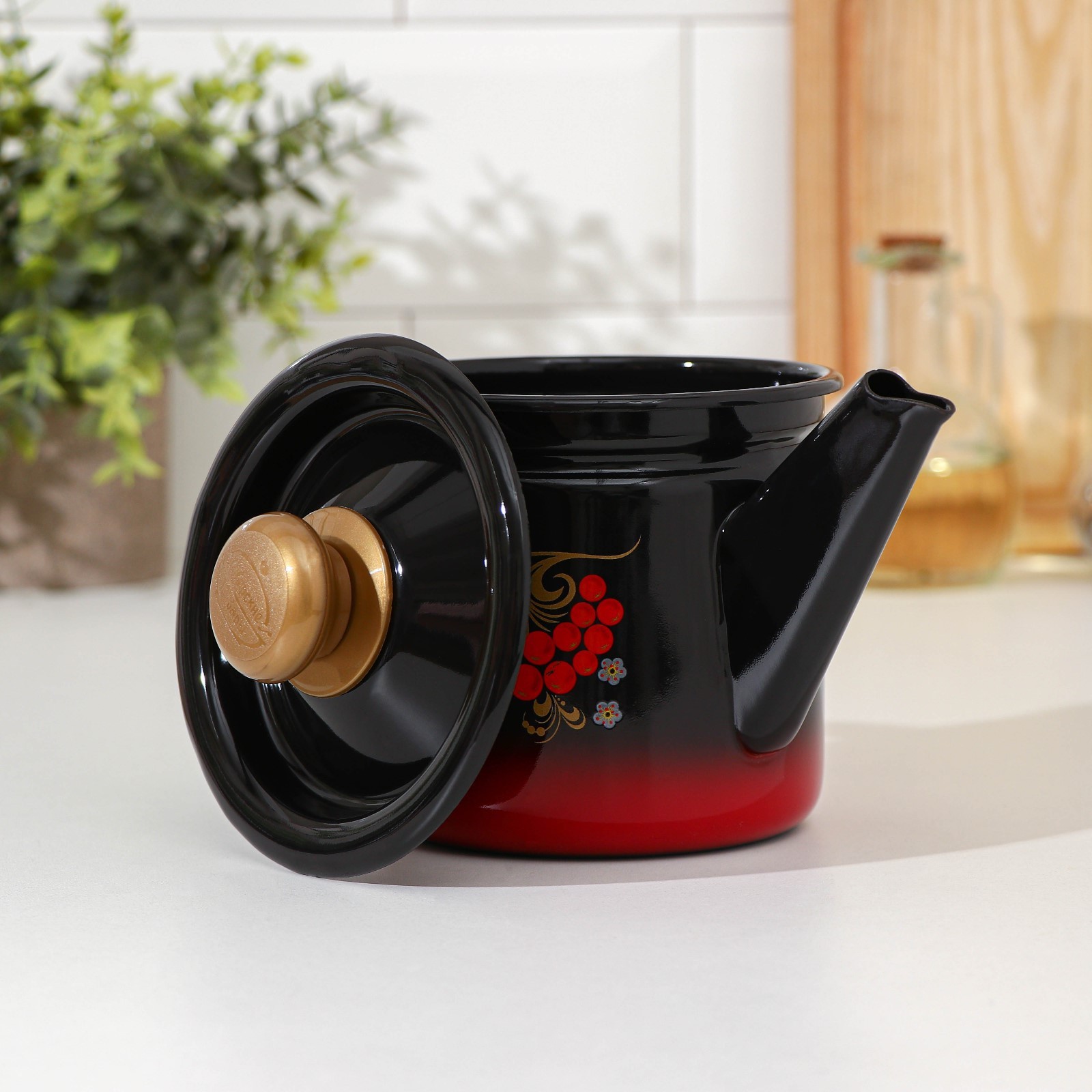 Чайник заварочный, 1 л, фиксированная ручка, индукция, цвет красно-чёрный, рисунок микс