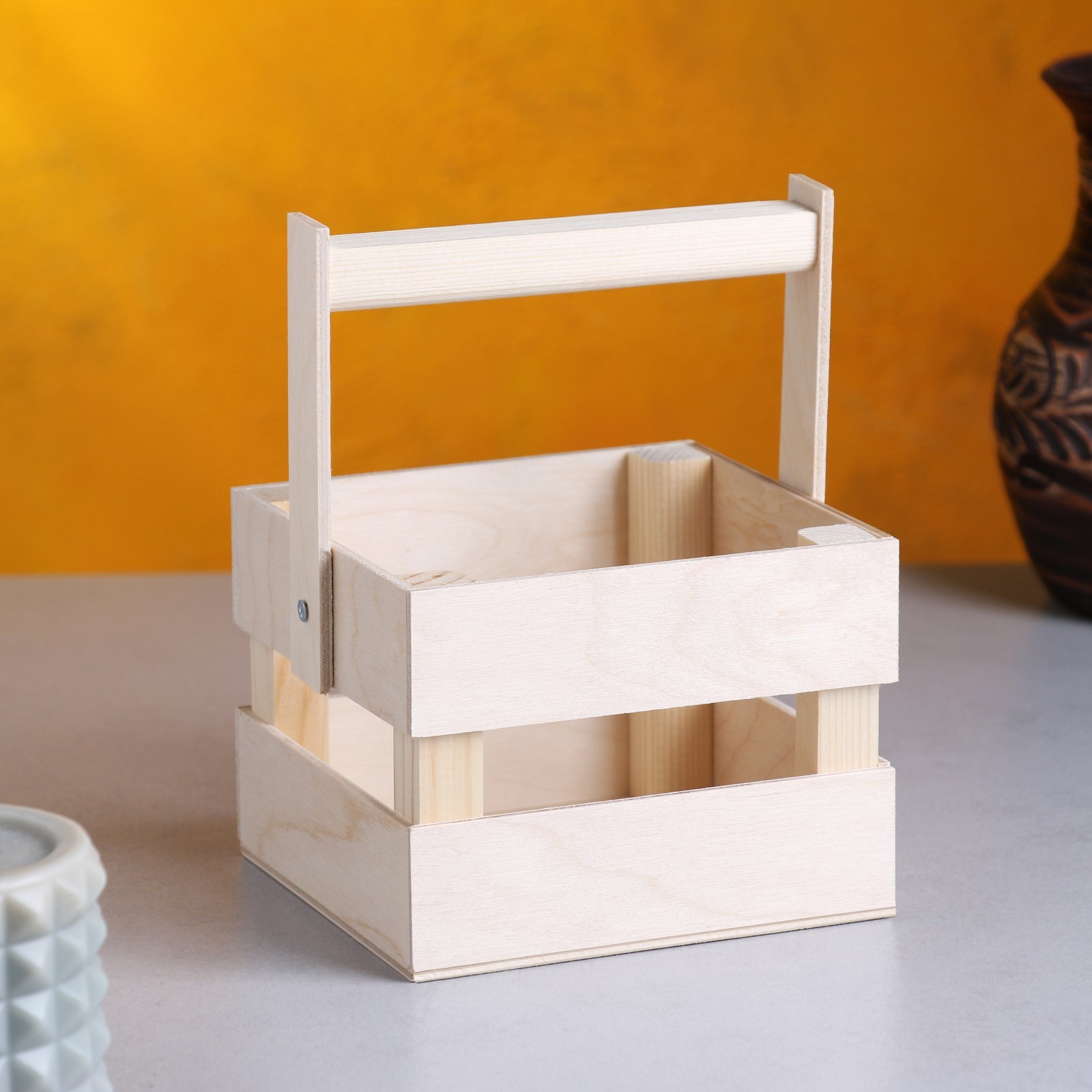 Кашпо деревянное 12 11 9 см однушка лайт, двухреечное, натуральный дарим красиво